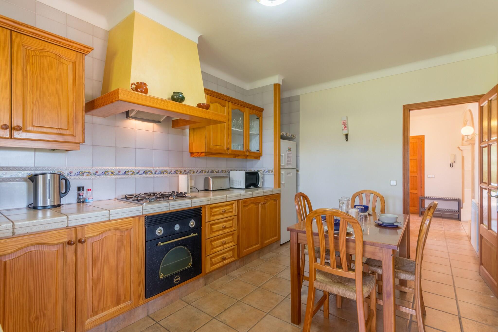 Eingebettet in die wunderschöne ländliche Gegend von Felanitx bietet diese voll ausgestattete Villa, S'hort d'Or, einen komfortablen Rückzugsort für bis zu sechs Gäste mit Blick auf die Berge und den Garten sowie einfachem Zugang zur Südostküste Mallorcas. Nur 1 km von Cala Sa Nau und Cala Mitjana entfernt und in der Nähe von Cala Ferrera, Cala Serena und dem Golfplatz Cala d'Or, ist sie ideal für Strandliebhaber und Golfbegeisterte gleichermaßen. Die Villa ist 172 m² groß und verfügt über drei klimatisierte Schlafzimmer, zwei Badezimmer und eine großzügige 350 m² große Terrasse mit Gartenmöbeln, Grill und privatem Pool – perfekt zum Entspannen in der Sonne oder für ein Abendessen unter dem Sternenhimmel. Das eingezäunte Grundstück und der naturbelassene Garten machen sie zu einer idealen Wahl für Familien. Im Inneren erwartet Sie ein gemütlicher Wohnbereich mit Kamin, Sat-TV (Spanisch, Englisch, Deutsch), WLAN und eine voll ausgestattete Elektroküche mit Mikrowelle, Backofen, Geschirrspüler, Kaffeemaschine, Toaster, Wasserkocher und Saftpresse. Zur weiteren Ausstattung gehören eine Waschmaschine, ein Bügeleisen, ein Safe, ein Haartrockner, ein Balkon, Zentralheizung und ein Parkplatz im Freien. Nur 3 km von Cala d’Or entfernt und in der Nähe von Restaurants, Supermärkten und Naturattraktionen wie dem Naturpark Cala Mondragó bietet diese Villa einen familienfreundlichen Rückzugsort mit Ruhe und Komfort. Tagesausflüge nach Portocolom, zum Wasserpark Agualand oder zum Themenpark Katmandu sind bequem zu erreichen. Die Vermietungslizenznummer lautet VT/454