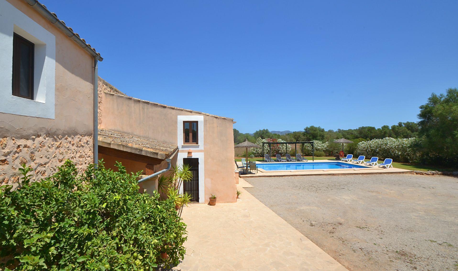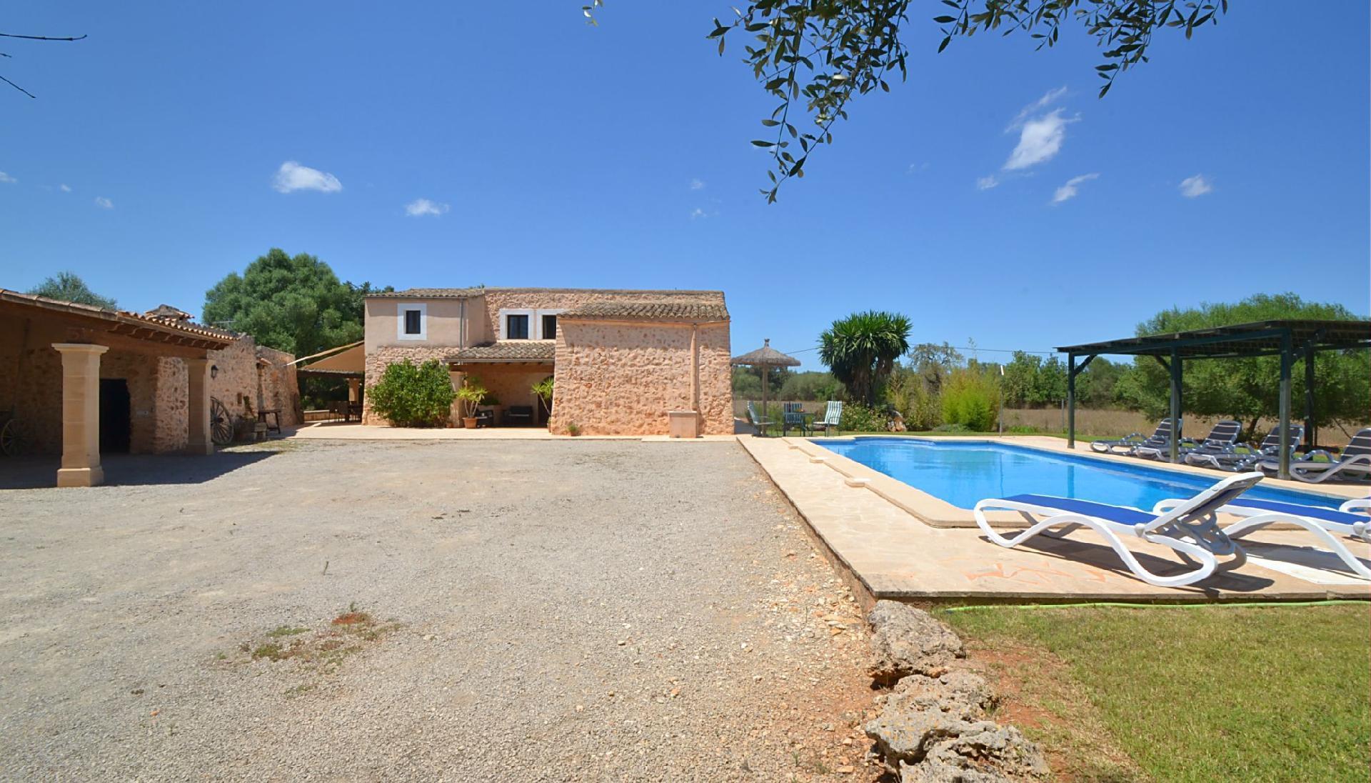 Diese sehr liebevoll gepflegte authentisch rustikale Naturstein Finca liegt in idyllisch ruhiger und ländlicher Lage zwischen den Orten Felanitx und Manacor im Osten der Insel und nicht unweit der vielen paradisischen Strände der Calas de Mallorca.