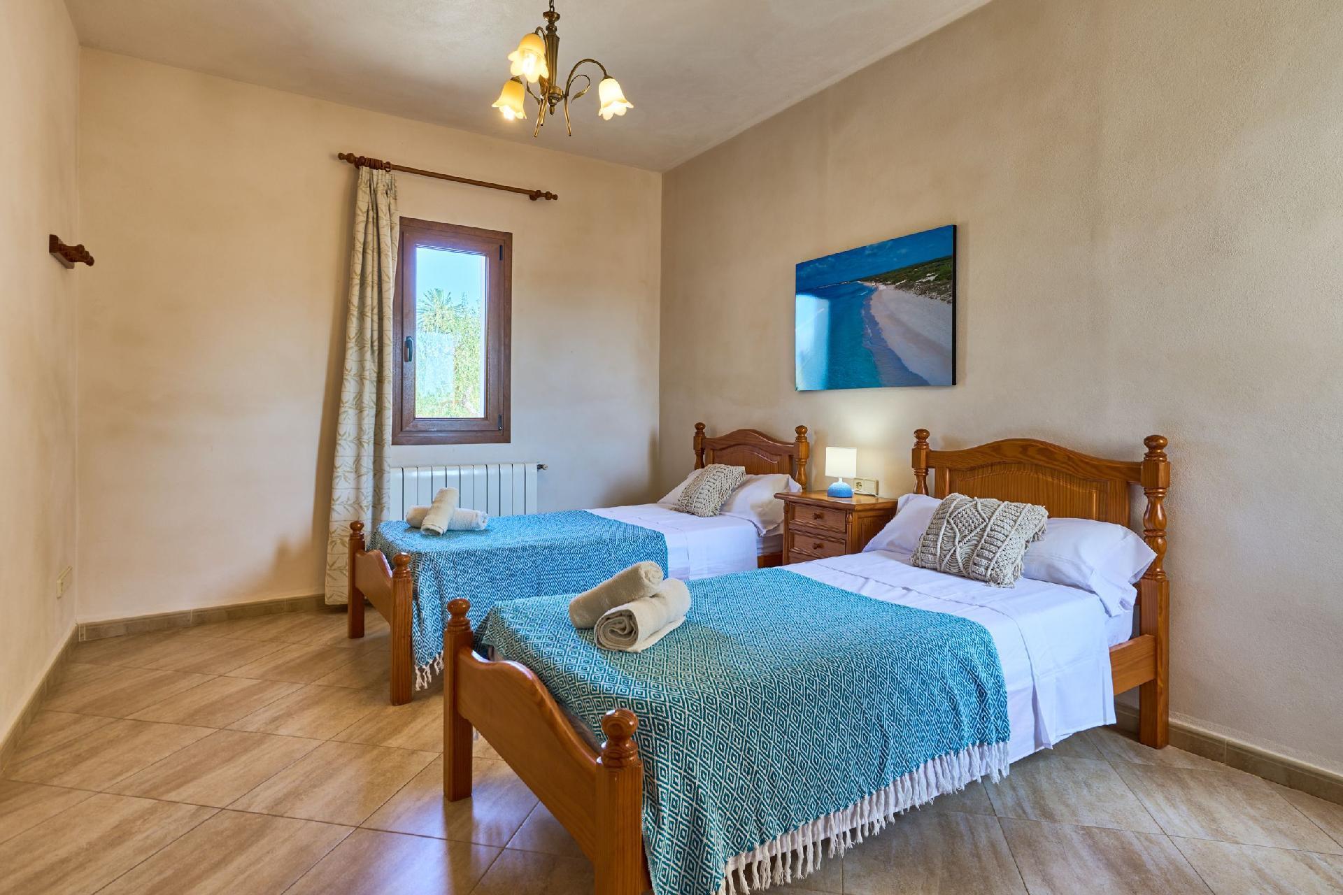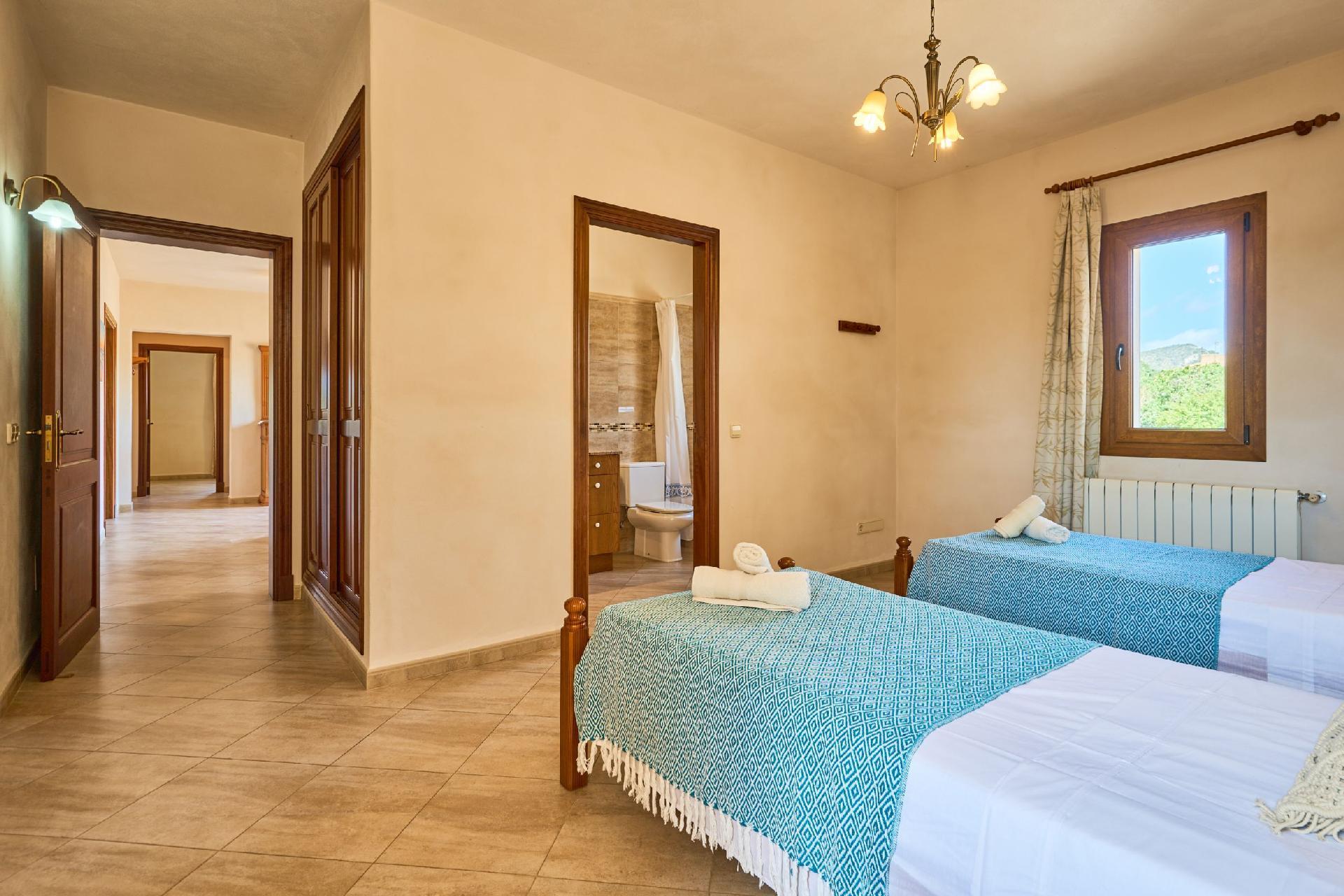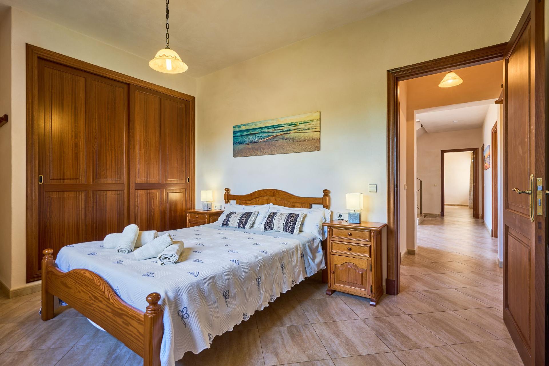 Vom Eingangsbereich betreten wir den hellen offenen Wohn-/Essbereich mit Zugang zur überdachten Terrasse und dem Poolbereich. Die Küche ist grosszügung und gut ausgestattet. Es gibt einen grossen Esstisch und Zugang zur überdachten Terrasse. Im Erdgeschoss finden wir zwei Schlafzimmer. Eines davon verfügt über zwei Einzellbetten und Badezimmer ensuite, das andere bietet ein Doppelbett und verfügt über einen danebenliegendes Duschbad. Im Obergeschoss liegen zwei weitere Schlafzimmer, beide mit Zugang zur Terrasse und Blick auf den Pool und die Umgebung. Eines ist mit zwei Einzelbetten ausgestattet und verfügt über ein Duschbad ensuite, das andere bietet ein Doppelbett und Badezimmer ensuite.