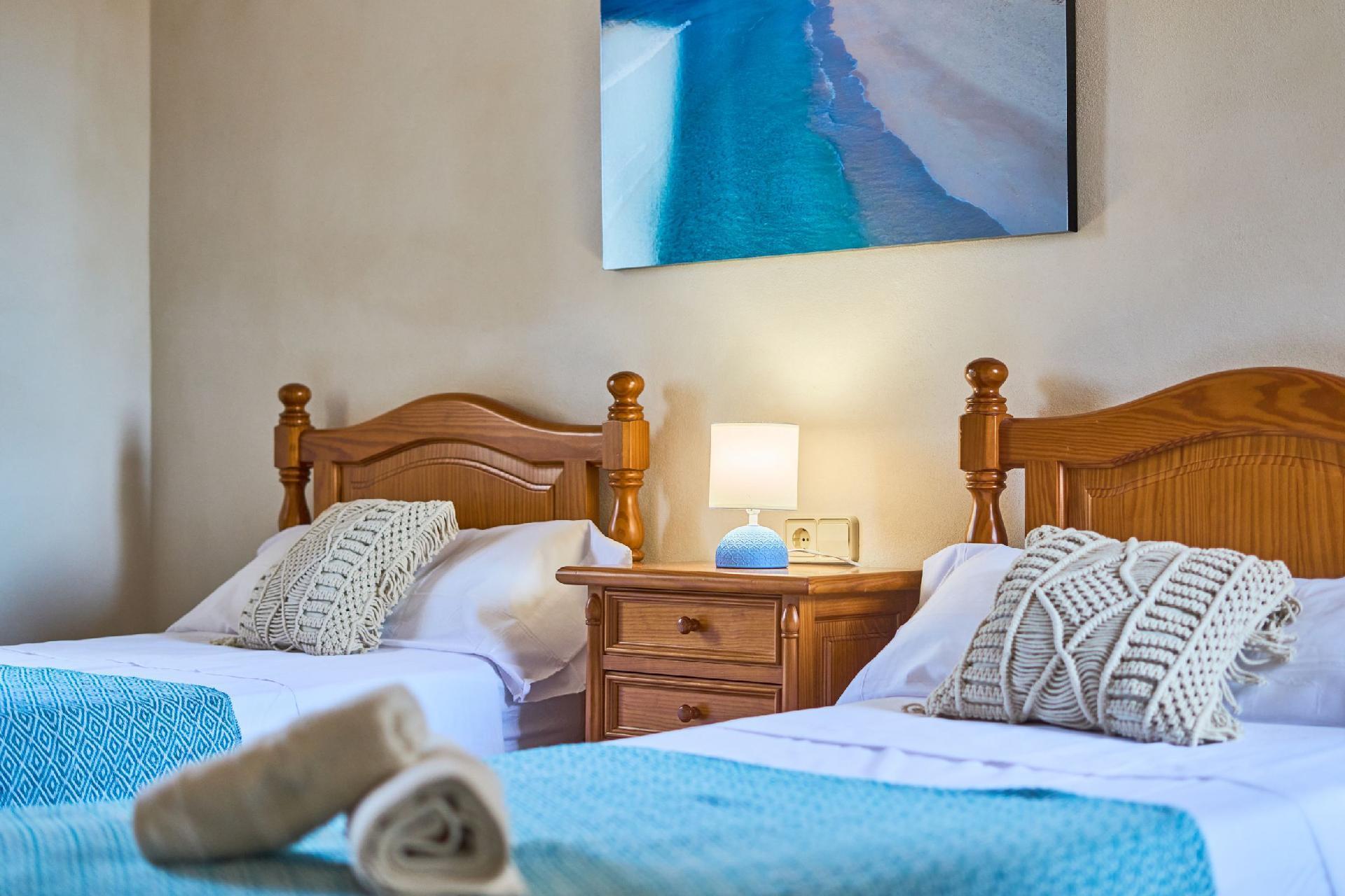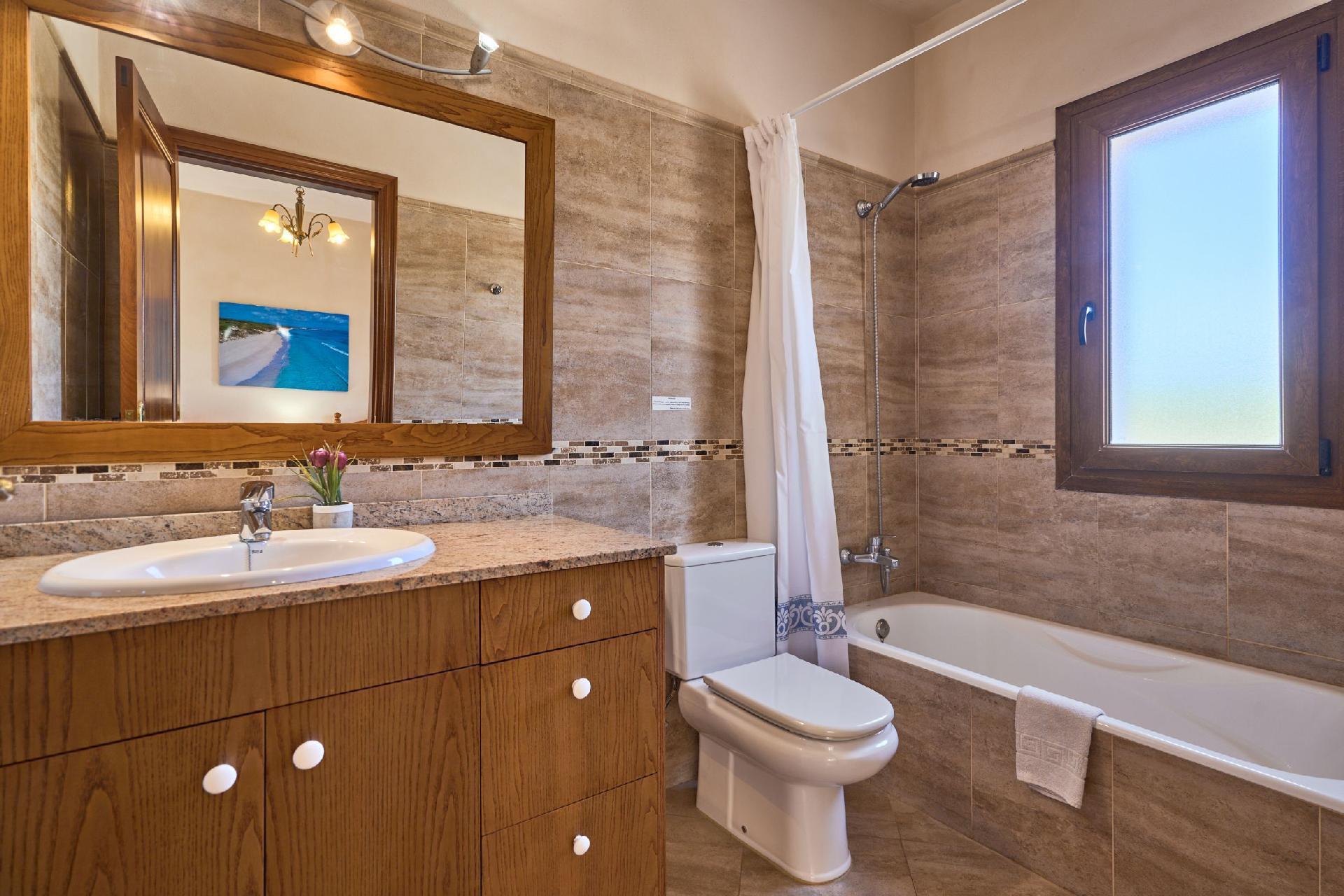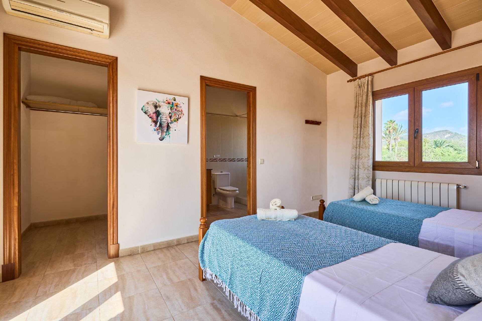 Vom Eingangsbereich betreten wir den hellen offenen Wohn-/Essbereich mit Zugang zur überdachten Terrasse und dem Poolbereich. Die Küche ist grosszügung und gut ausgestattet. Es gibt einen grossen Esstisch und Zugang zur überdachten Terrasse. Im Erdgeschoss finden wir zwei Schlafzimmer. Eines davon verfügt über zwei Einzellbetten und Badezimmer ensuite, das andere bietet ein Doppelbett und verfügt über einen danebenliegendes Duschbad. Im Obergeschoss liegen zwei weitere Schlafzimmer, beide mit Zugang zur Terrasse und Blick auf den Pool und die Umgebung. Eines ist mit zwei Einzelbetten ausgestattet und verfügt über ein Duschbad ensuite, das andere bietet ein Doppelbett und Badezimmer ensuite.