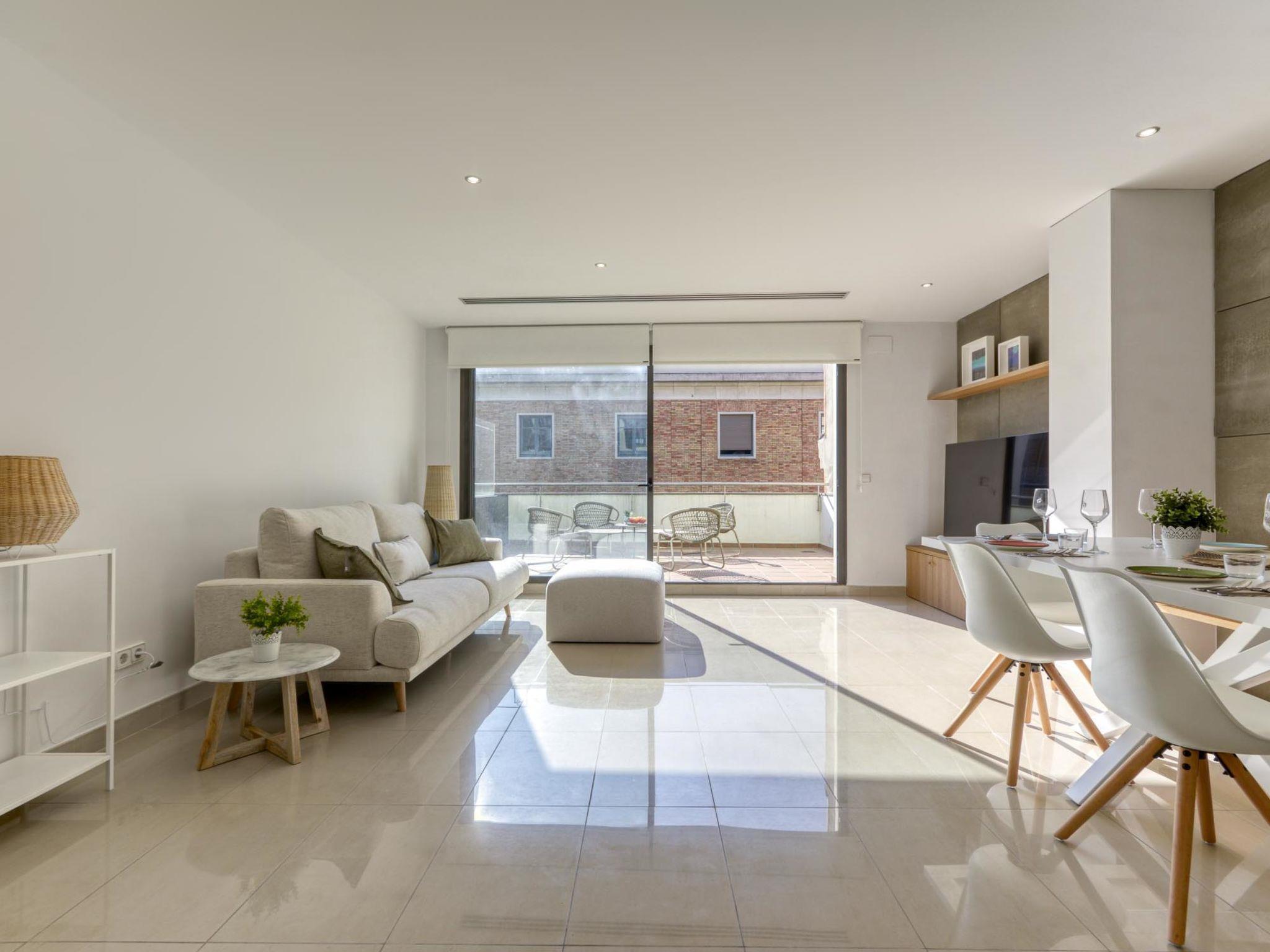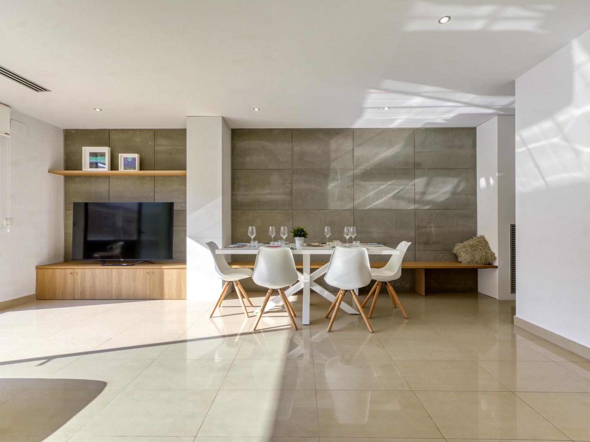 5-Zimmer-Attikawohnung 160 m2 auf 2 Stockwerken im 3. Stock. Geräumig und hell, modern und gemütlich eingerichtet: Wohn-/Esszimmer mit Esstisch, Digital-TV, Klimaanlage und Warmluftheizung. Ausgang zur Terrasse, Richtung Osten und Richtung Süden. Grosse Küche (Backofen, Geschirrspüler, 3 Glaskeramikplatten, Toaster, Wasserkocher, Mikrowelle, Tiefkühler, elektrische Kaffeemaschine). Dusche/WC. Obergeschoss: 1 grosses Zimmer mit 1 franz. Bett (160 cm, Länge 200 cm), Bad/Bidet/WC, Klimaanlage und Warmluftheizung. Ausgang zum Balkon. 1 Zimmer mit 2 Betten (90 cm, Länge 200 cm), Klimaanlage und Warmluftheizung. 1 grosses Zimmer mit 1 franz. Bett (160 cm, Länge 20 cm), Klimaanlage und Warmluftheizung. Ausgang zum Balkon. 1 kleines Zimmer mit 1 Bett (90 cm, Länge 190 cm), Klimaanlage und Warmluftheizung. Ausgang zur Terrasse, Richtung Westen und Richtung Norden. Bad/WC. Grosse Terrasse 20 m2. Terrassenmöbel. Sicht auf die Stadt. Zur Verfügung: Waschmaschine, Bügeleisen, Kinderhochstuhl, Babybett, Haartrockner. Internet (WLAN, gratis). Bitte beachten: Nichtraucher-Unterkunft. HUTG-076840 // Reg. Nr.: ESFCTU00001700800118595500000000000000000HUTG-0768402
