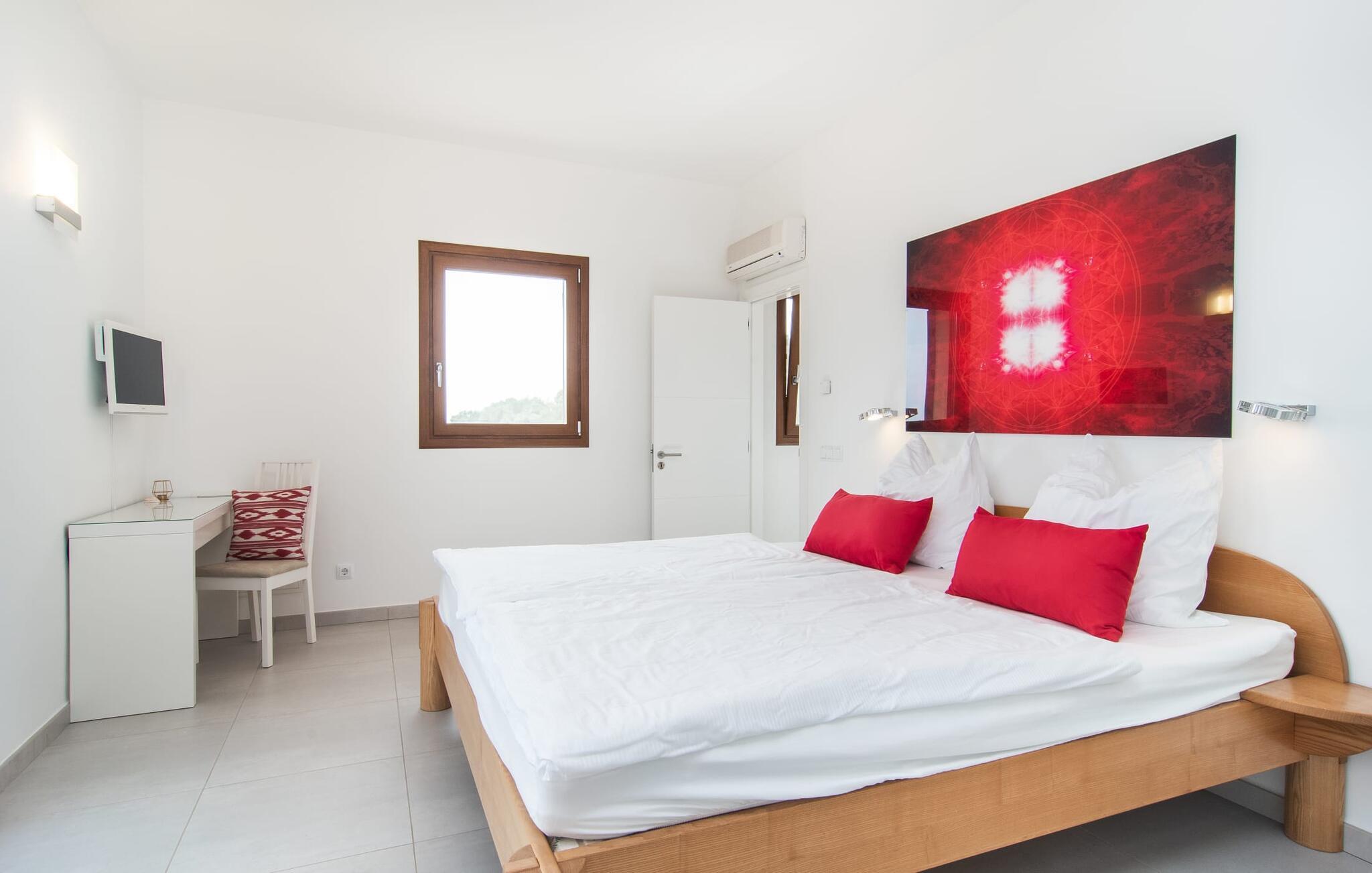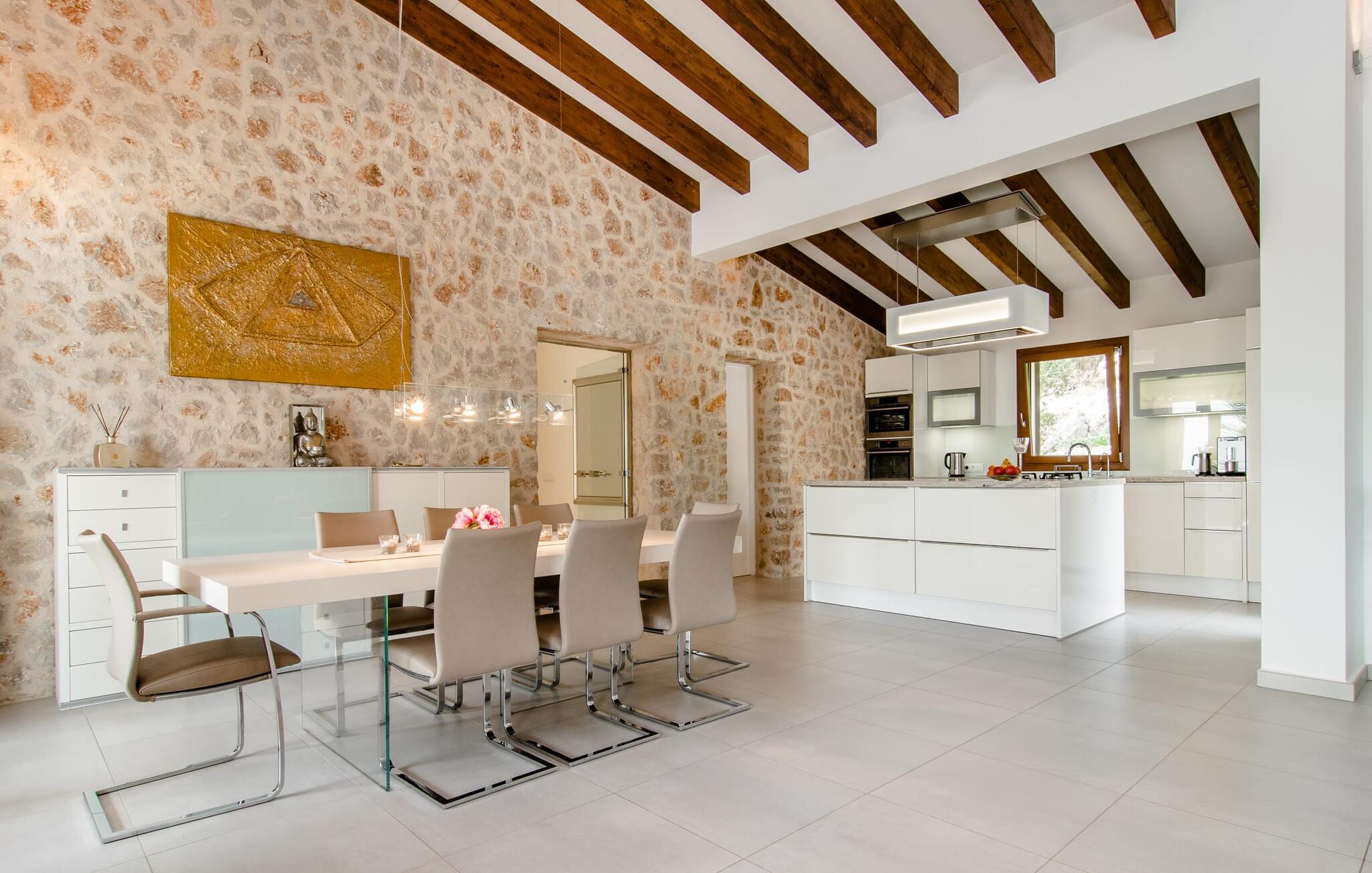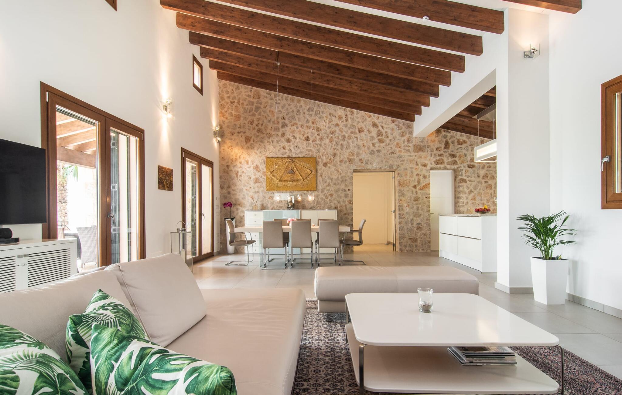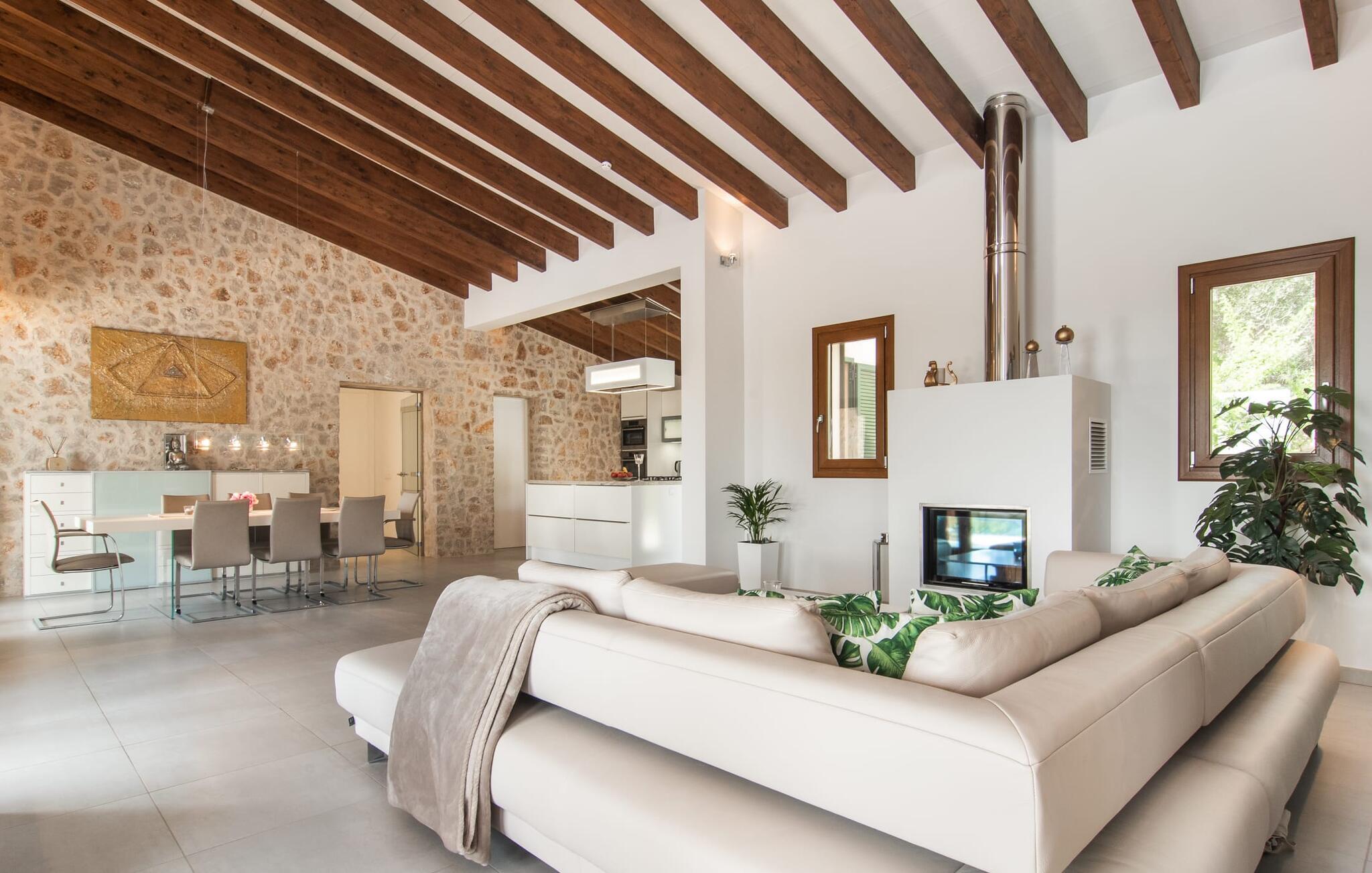 Im Inneren erfüllt das Ferienhaus höchste Ansprüche an Eleganz und Komfort. Der helle, luftige Innenraum wird durch zahlreiche raumhohe Fenster aufgewertet und schafft eine warme und einladende Atmosphäre. Mit Fußbodenheizung und einem schönen Kamin ist der offene Wohn- und Essbereich perfekt für kühlere Monate. Vier klimatisierte Schlafzimmer auf zwei Ebenen sorgen für Privatsphäre, während die luxuriösen Badezimmer mit begehbarer Dusche oder Hydromassage-Badewanne für einen Hauch von Luxus sorgen. Entdecken Sie die einzigartig schöne Finca „Flor de la Vida“ und schaffen Sie unvergessliche Erinnerungen.