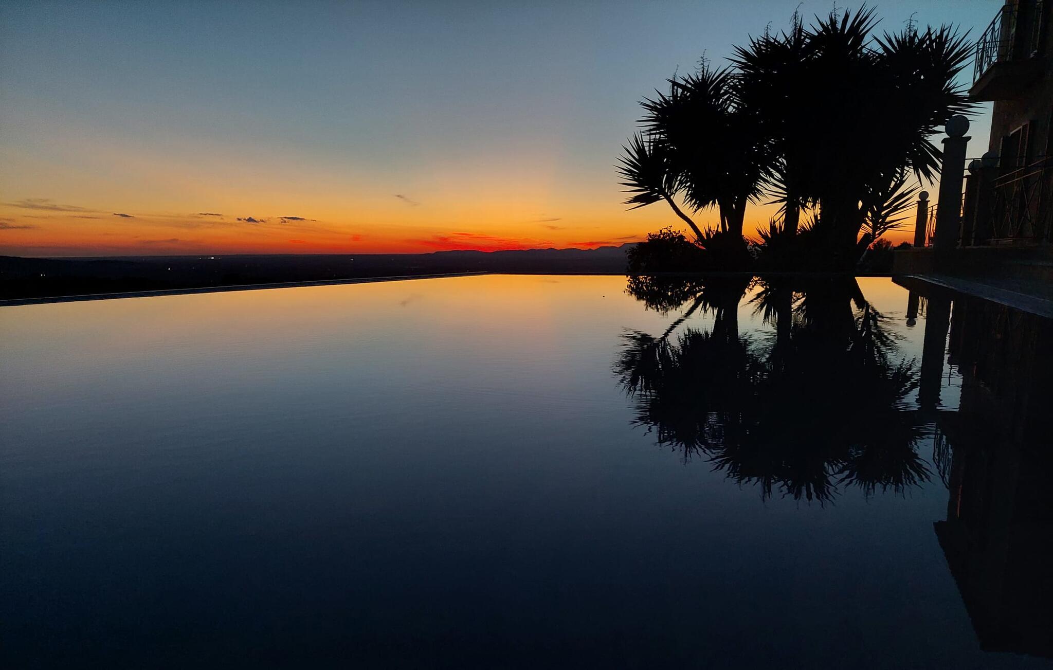 Genießen Sie diese Aussicht vom Infinity-Pool aus oder entspannen Sie auf Liegestühlen inmitten mediterraner Flora. Die mit einem Grill ausgestattete Außenküche verfügt über einen charmanten Essbereich, ergänzt durch einen Kräutergarten für frische kulinarische Ergänzungen. Eine überdachte Terrasse bietet einen weiteren Essbereich und eine Lounge-Ecke, ideal zum Frühstück oder zum Entspannen nach einem erlebnisreichen Tag.