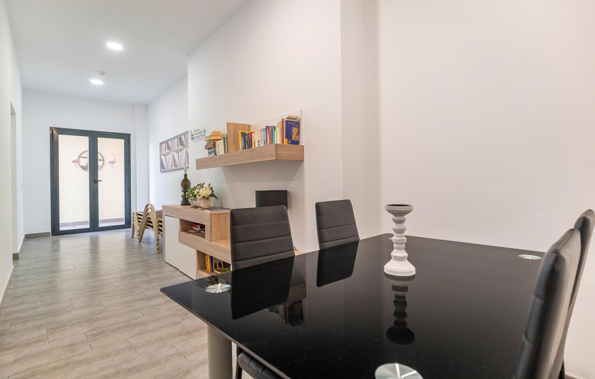 Willkommen in der Wohnung, die Sie in bester Lage für einen Urlaub mit Outdoor-Aktivitäten und spannenden Ausflügen empfängt. Praktisch und modern möblierte Räume bieten alles, was Sie für einen gelungenen Urlaub brauchen. Bereiten Sie in der Küche ein schmackhaftes Frühstück zu und genießen Sie den ersten Kaffee in der Morgensonne auf der Terrasse, bevor Sie sich im Pool erfrischen und zu Ihren Unternehmungen aufbrechen.