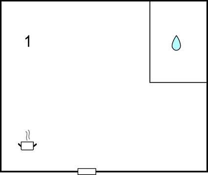Badezimmer 5m2 (nr. 1) - WC. Warmes und kaltes Wasser. Dusche