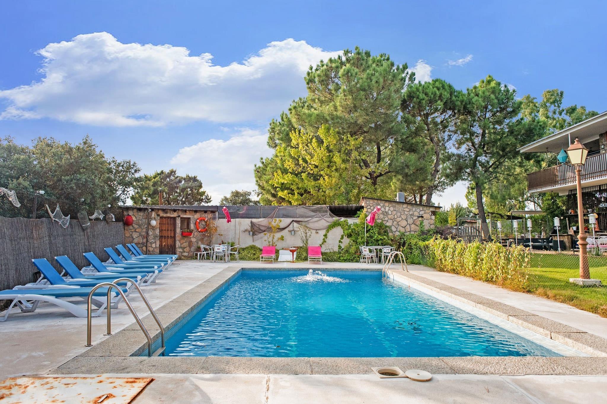 Entspannender Rückzugsort in den Bergen Diese charmante ländliche Wohnung in den Bergen von Madrid bietet einen ruhigen Rückzugsort inmitten üppiger Bäume. Ideal für Paare, Familien oder Freunde, bietet sie einen Gemeinschaftspool und einen gepflegten Garten für Freizeitaktivitäten im Freien. Gäste werden mit einem einstündigen Spa-Rundgang mit Sauna und Whirlpool begrüßt. Verlängerungen sind auf Anfrage möglich. Die offene Küche eignet sich perfekt zum Kochen Ihrer Lieblingsgerichte, und der Außengrill lädt zu gemütlichen Mahlzeiten im Freien mit Freunden oder der Familie ein. Erstklassige Lage Die Wohnung liegt in Galapagar, nur 2 km vom Stadtzentrum entfernt und bietet einfachen Zugang zu Geschäften, Cafés und Restaurants. Collado Villalba ist 7 km, Guadarrama 15 km und das Stadtzentrum von Madrid etwas mehr als 34 km entfernt – ideal für Tagesausflüge. Naturliebhaber können am nahegelegenen Valmayor-See spazieren gehen und Picknicks genießen. Das Skigebiet Navacerrada ist nur 28 km entfernt. Öffentliche Verkehrsmittel, einschließlich des Bahnhofs Torrelodones, sind in unmittelbarer Nähe und sorgen für eine bequeme Anreise. Haustierfreundliche Abenteuer Haustiere sind gegen Aufpreis willkommen. Der große, eingezäunte Garten bietet viel Platz zum Spielen und Erkunden. Die nahegelegenen Wanderwege laden zu langen Spaziergängen mit Ihren vierbeinigen Freunden ein. Die gemeinschaftlich genutzten Außenbereiche, darunter der beleuchtete Garten und der 12 x 7 m große Pool, machen dieses Anwesen ideal für alle, die Entspannung und Erholung suchen. Parkplätze stehen auf der Finca zur Verfügung und sorgen für einen komfortablen Aufenthalt.