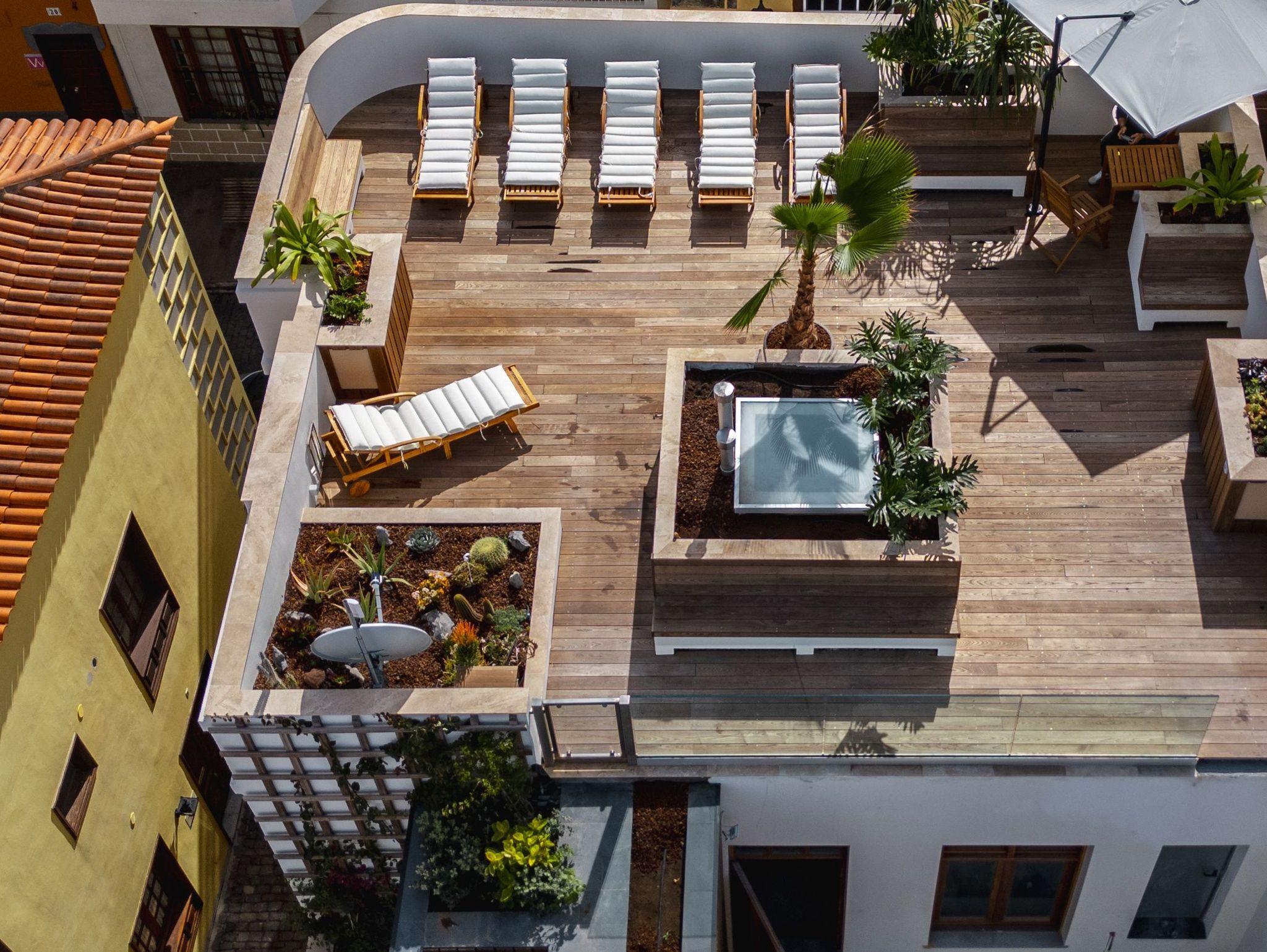 Die gemeinschaftlich von allen Wohneinheiten genutzte Dachterrasse bietet einen traumhaften Blick über Garachico und auf das Meer ? Sonnenuntergänge inklusive.