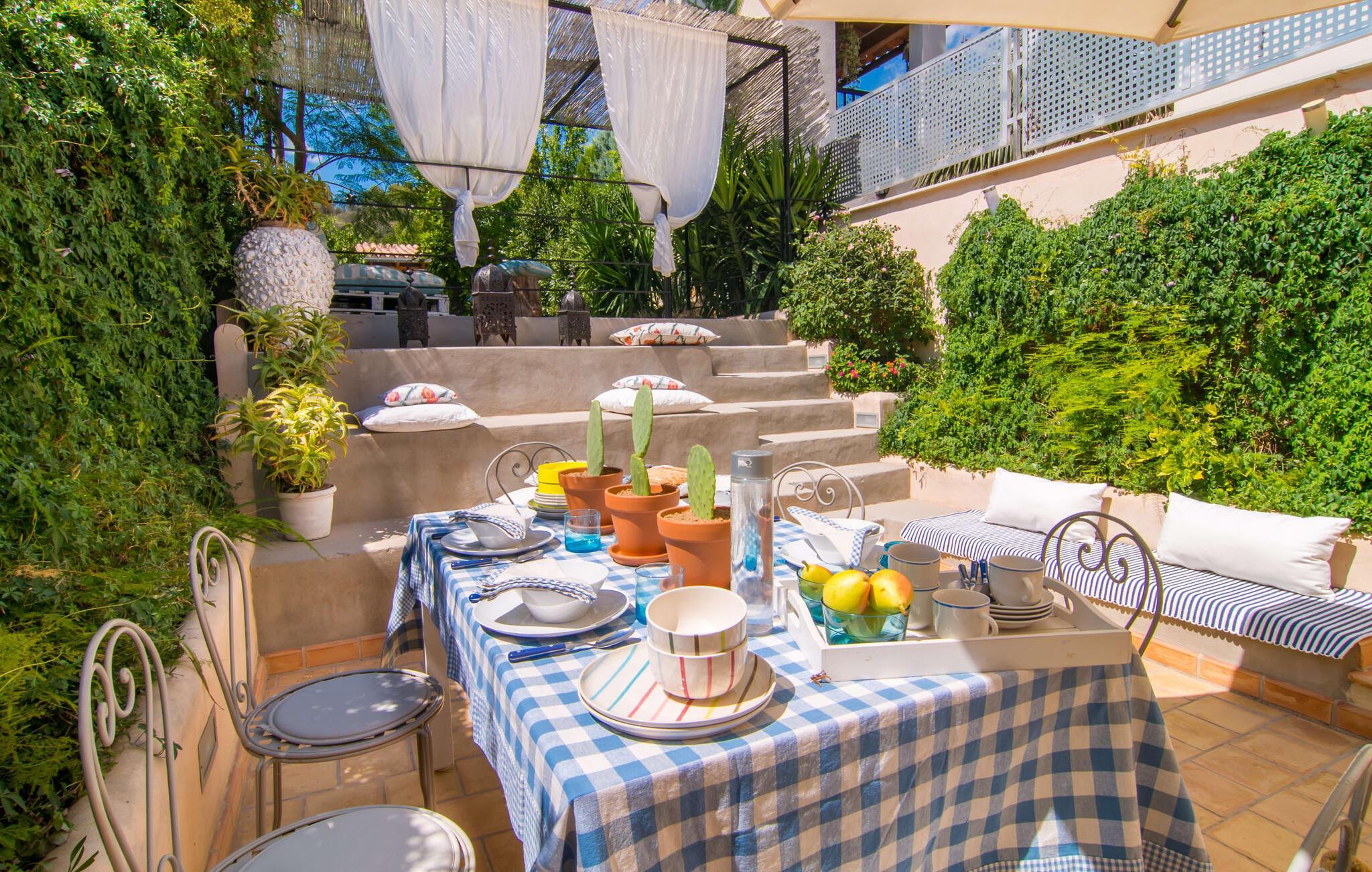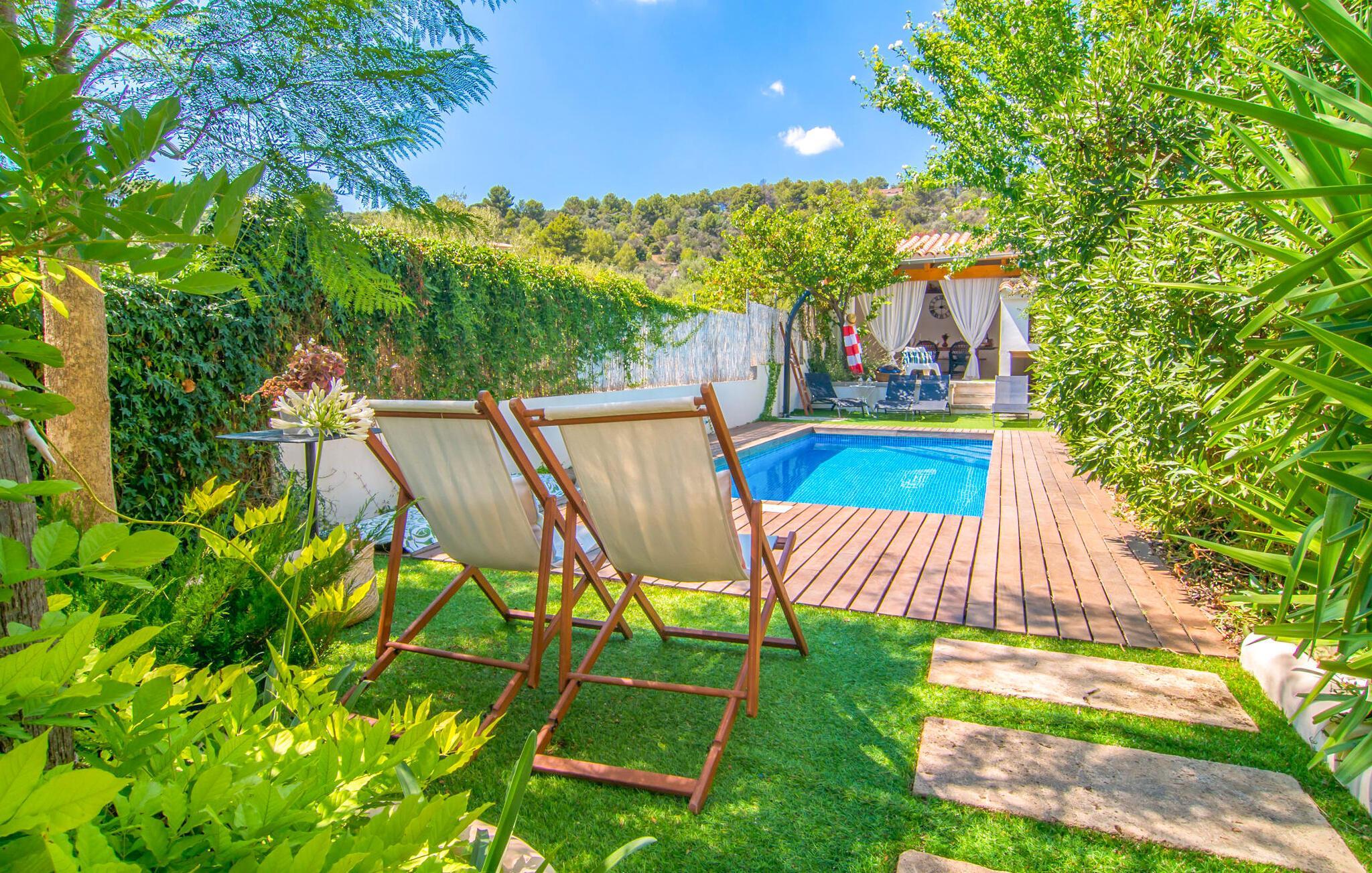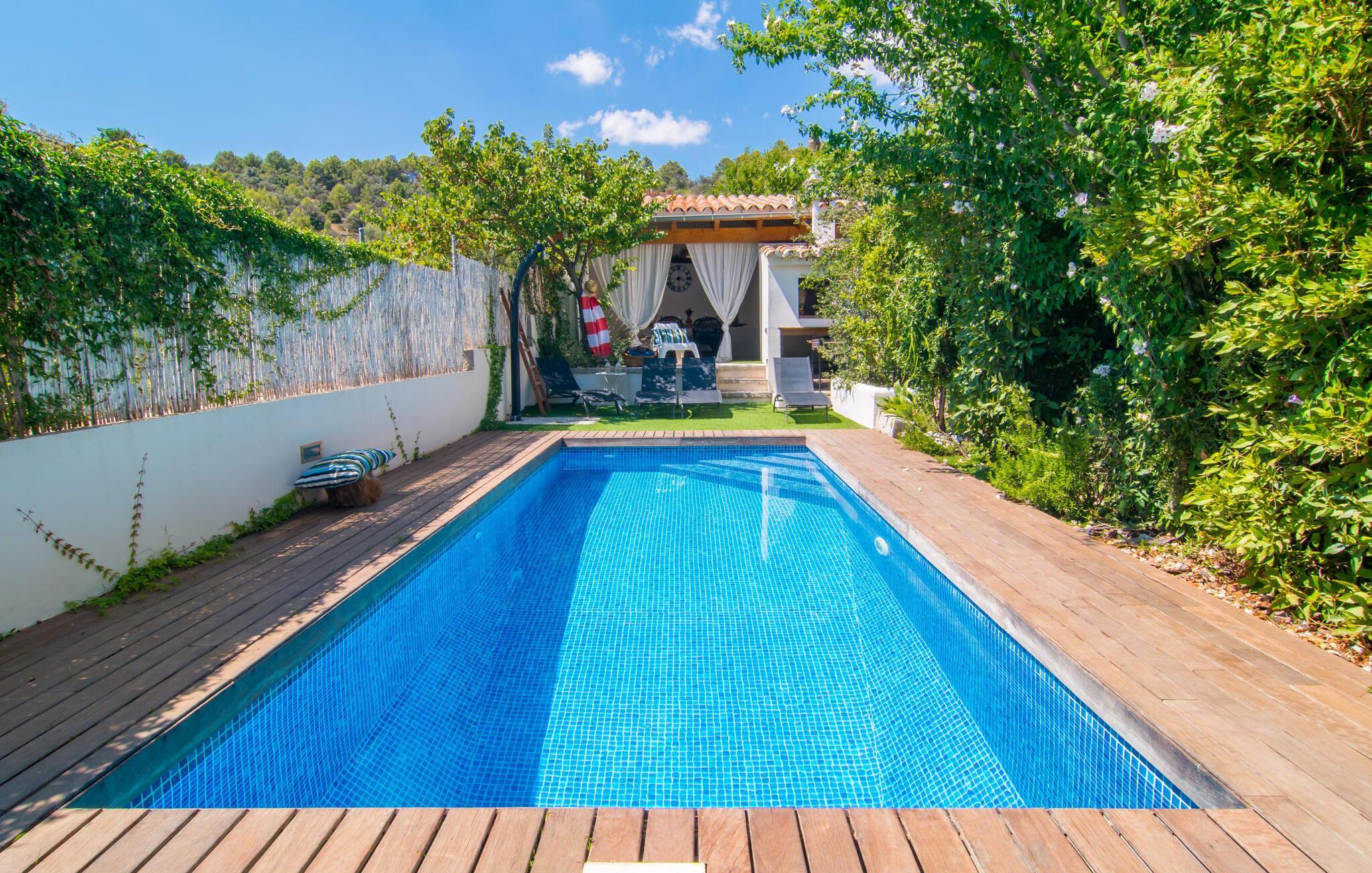 Das Stadthaus „Gema“ liegt am Fuße der Tramuntana, umgeben von einer fantastischen Bergkulisse und ruhigem Dorfleben. Am Ortsrand von Wolkenstein erwartet Sie das Haus mit einer wunderschön angelegten Gartenoase. Hier können Sie nach einem erfrischenden Bad im Pool auf einer der bequemen Liegen entspannen und die Inselsonne genießen. Eine schattige Chill-Out-Lounge und eine große, liebevoll eingerichtete überdachte Außenküche mit Esstisch und Grill sind weitere Highlights des idyllischen Außenbereichs.