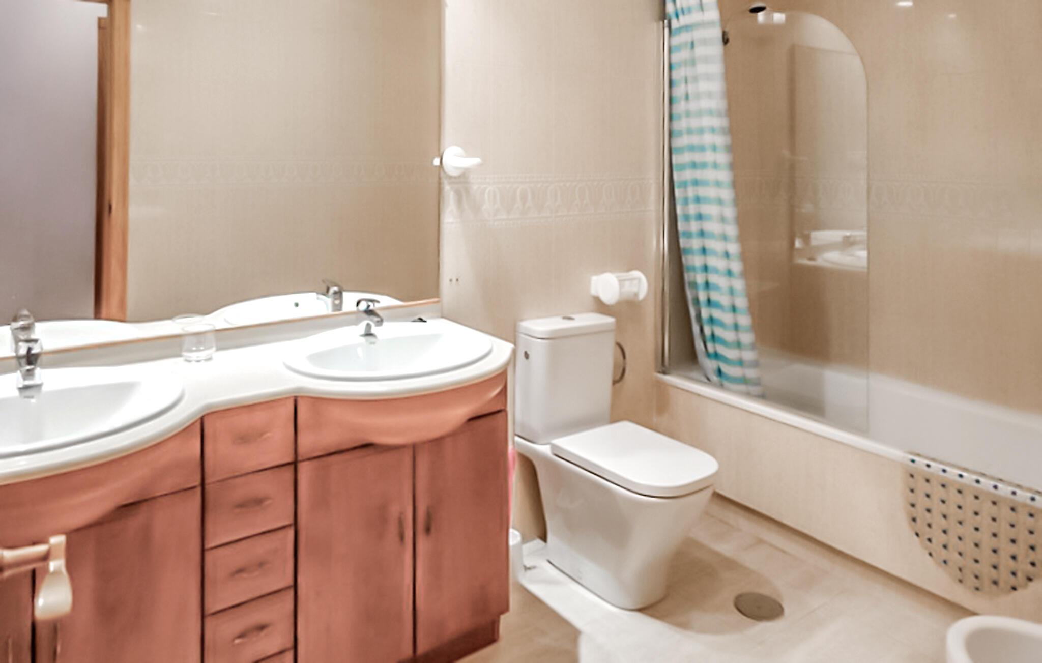 Badezimmer (nr. 2) - WC. Warmes und kaltes Wasser. Handdusche und Badewanne