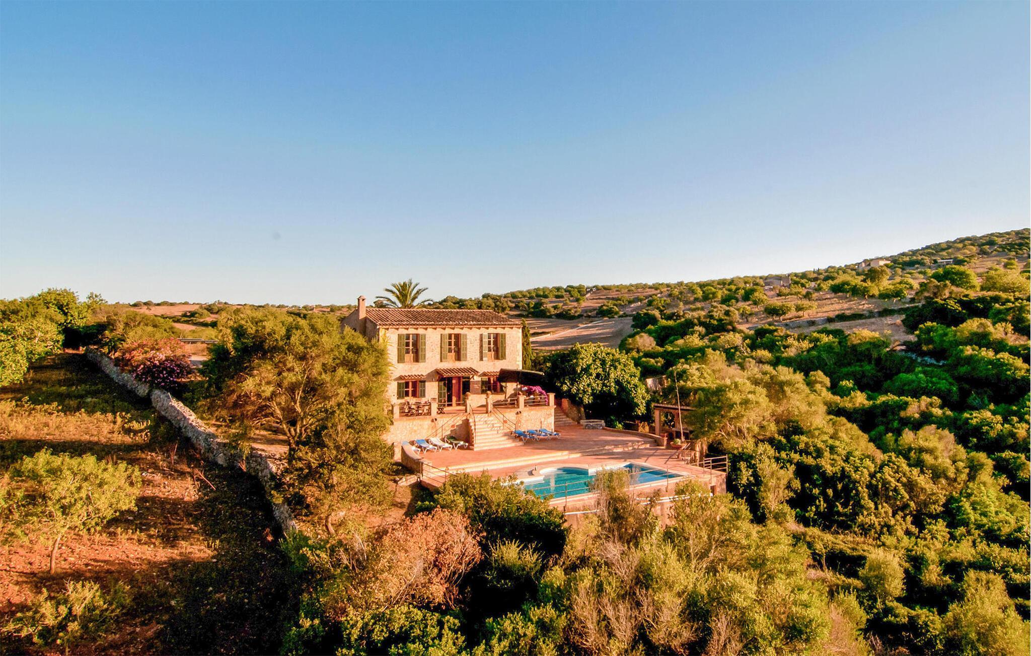 Die wunderschön gelegene Villa „Grandiosa“ liegt in sehr ruhiger Lage ca. 80 m über dem Meeresspiegel, oberhalb der Ebene von Ses Cases Noves, zwischen Colonia de Sant Pere und Manacor. Durch die erhöhte Lage genießen Sie einen sensationellen Ausblick auf die Berge von Artà, die Bucht von Alcúdia, bis hin zum Cap de Formentor. Die Fahrt zum Meer mit seinen wunderschönen kleinen Buchten und Stränden dauert schätzungsweise 8 Minuten.