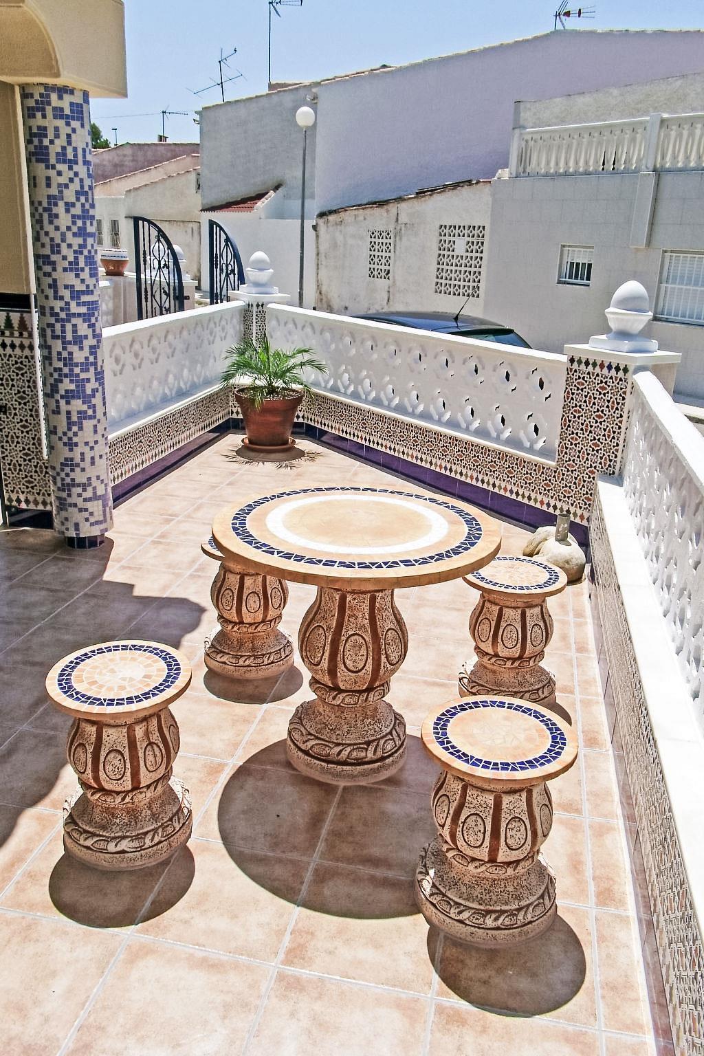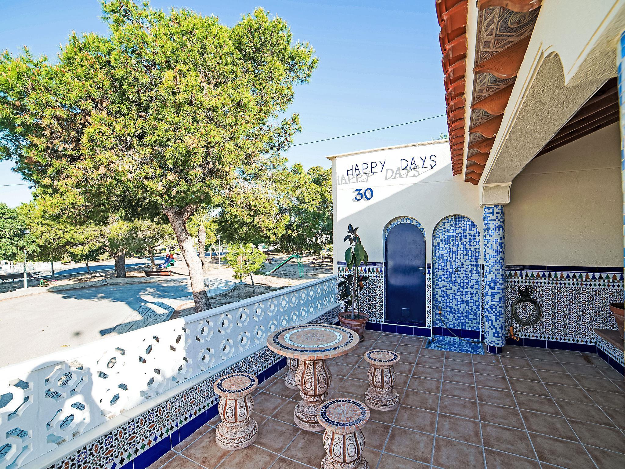 Urb. El Moncayo: Doppelhaus "Happy days". 3 km vom Zentrum von Guardamar, 8 km vom Zentrum von Torrevieja, 1.5 km vom Meer, 1.5 km vom Strand, in einer Sackgasse. Parkplatz beim Haus. Supermarkt 2 km, Restaurant 2 km, Bar 2 km, Bushaltestelle 200 m, Sandstrand "Moncayo" 1.5 km. Golfplatz (18 Loch) 10 km, Tennis 50 m, Kinderspielplatz 20 m. Bitte beachten: Fahrzeug empfohlen.