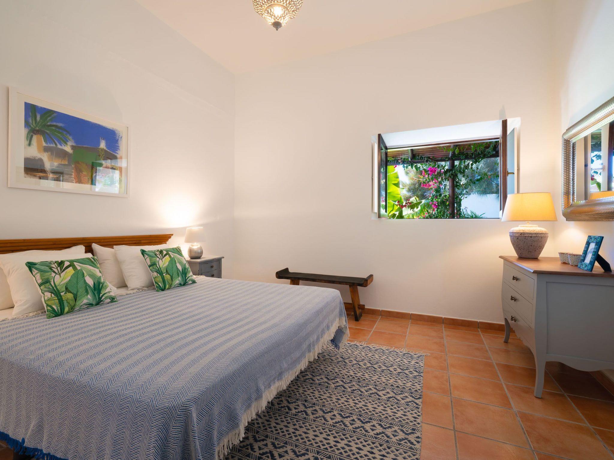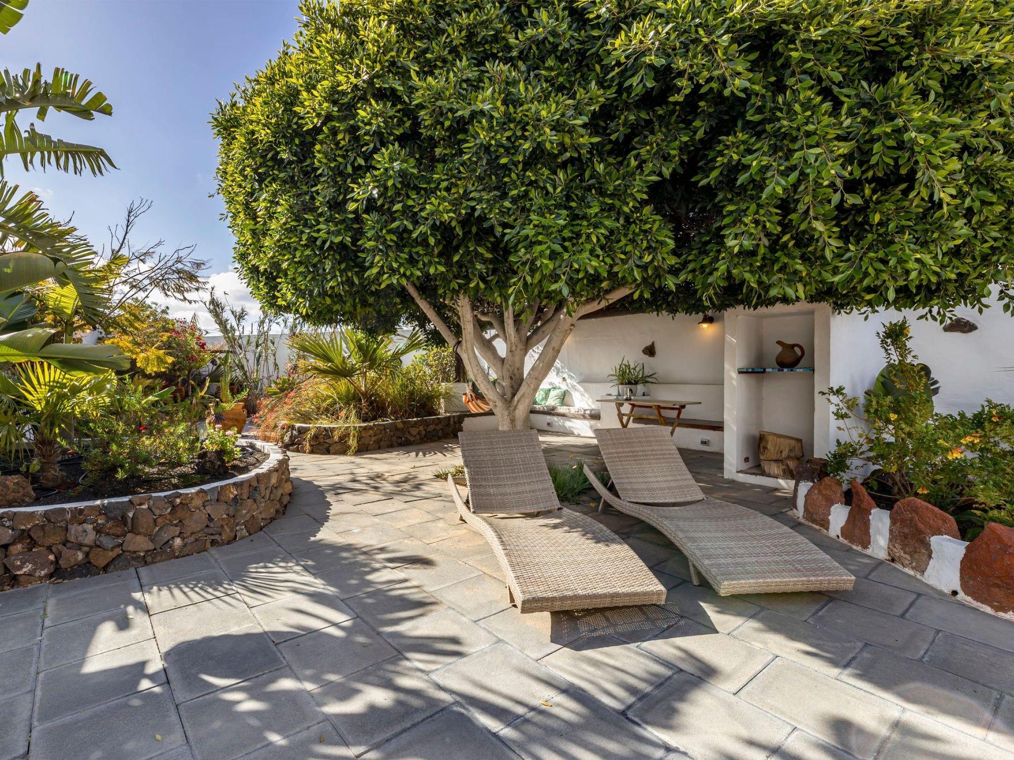 Die Gartenvilla ist Teil eines 300 Jahre alten ehemaligen Bauernhauses, wurde vollständig renoviert und bietet eine stilvolle und komfortable Unterkunft für vier Personen in einer idyllischen und ruhigen Lage am Rande des Dorfes, nur eine kurze Fahrt vom Strand von Arrieta und nur fünf Minuten zu Fuß von Cesar Manriques weltberühmtem Kaktusgarten entfernt. Die Gartenvilla bietet den Gästen absolute Privatsphäre und ist in verschiedene Zonen und Entspannungsbereiche unterteilt, darunter ein schöner Essbereich im Freien mit einem großen eingebauten Grill und einer Wellness-Dusche im Freien mit Liegestühlen. Das Innere der Villa ist hochwertig eingerichtet und dekoriert und bietet den Gästen kostenloses High-Speed-Glasfaser-Wi-Fi, ein Internet-TV-System und zwei Holzöfen für die Winterabende. Die voll ausgestattete Küche verfügt über einen Geschirrspüler, eine Mikrowelle, eine Waschmaschine, eine Kaffeemaschine und einen großen Kühlschrank mit Gefrierfach sowie Marmorarbeitsflächen mit Gasherd und Backofen. Das komplett geflieste Badezimmer hat eine große begehbare Dusche und einen separaten Ankleidebereich mit Waschtisch und Stuhl, beheizten Handtuchhaltern und deckenhohen Spiegeln. Es gibt zwei Doppelzimmer - das Hauptschlafzimmer ist sehr groß und hat ein großes Kingsize-Bett 180x200, Kleiderschrank und Kommode. Das zweite, kleinere Schlafzimmer hat ein Kingsize-Bett und einen Kleiderschrank. Das Herzstück der Finca ist eine riesige Küche/Esszimmer mit fünf Meter breiten, raumhohen Glasschiebetüren, die direkt in den Garten führen und eine fantastische Aussicht bieten, so dass das Innere der Finca mit dem Freien verschmilzt. Dieser Gartenraum beherbergt einen großen Küchen-/Lounge-/Essbereich mit einem Holzofen und einem Internet-TV-System. Es gibt auch einen zweiten Wohnbereich, der eine großartige, unberührte Aussicht auf die Landschaft und einen Holzofen bietet.