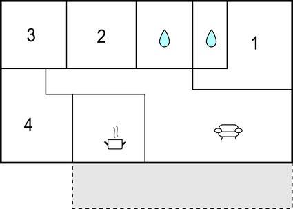 Badezimmer 8m2 (nr. 1) - WC. Warmes und kaltes Wasser. Dusche