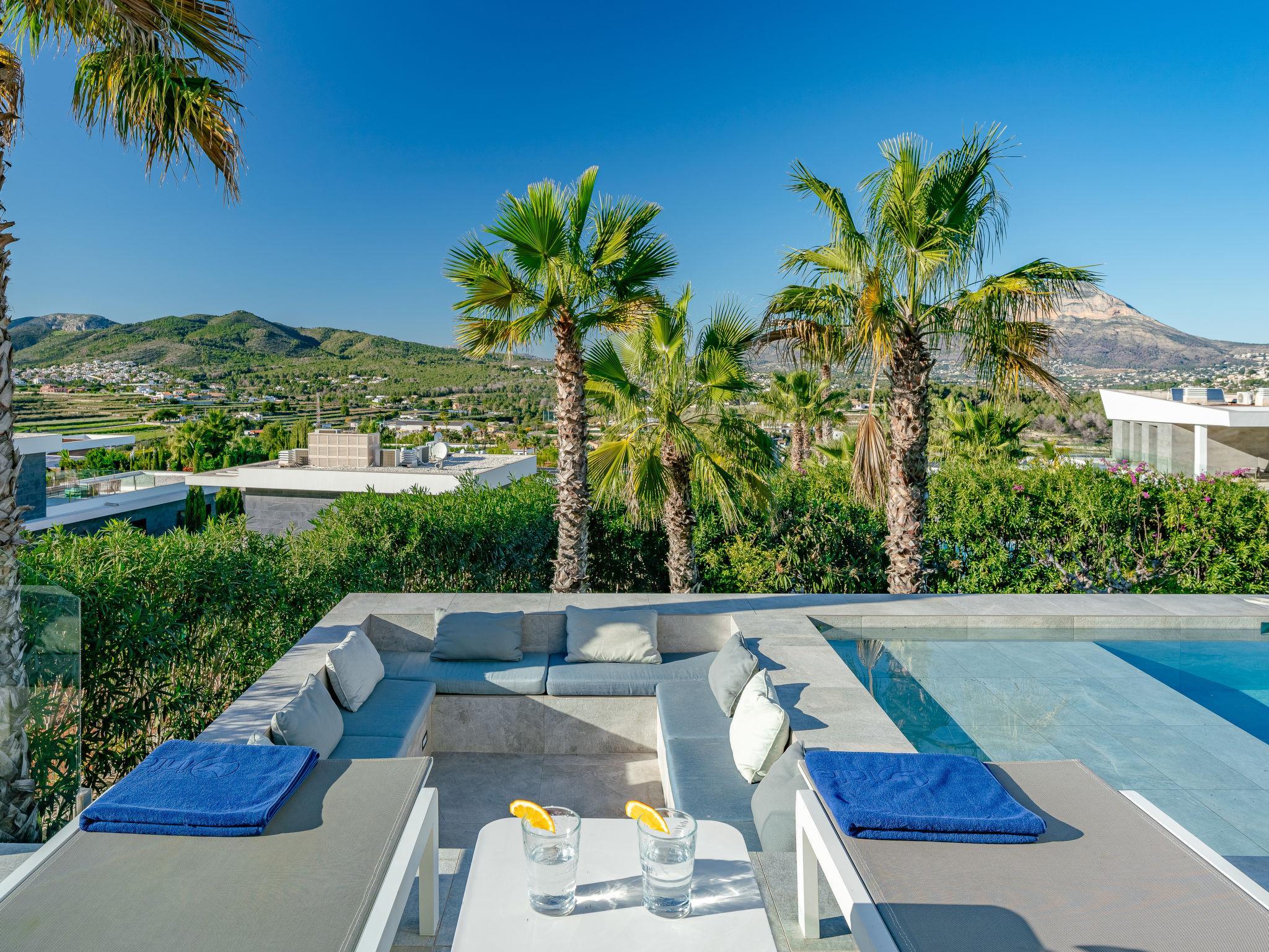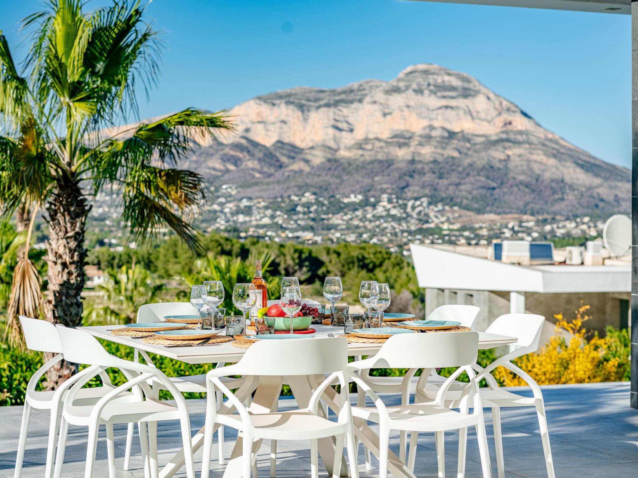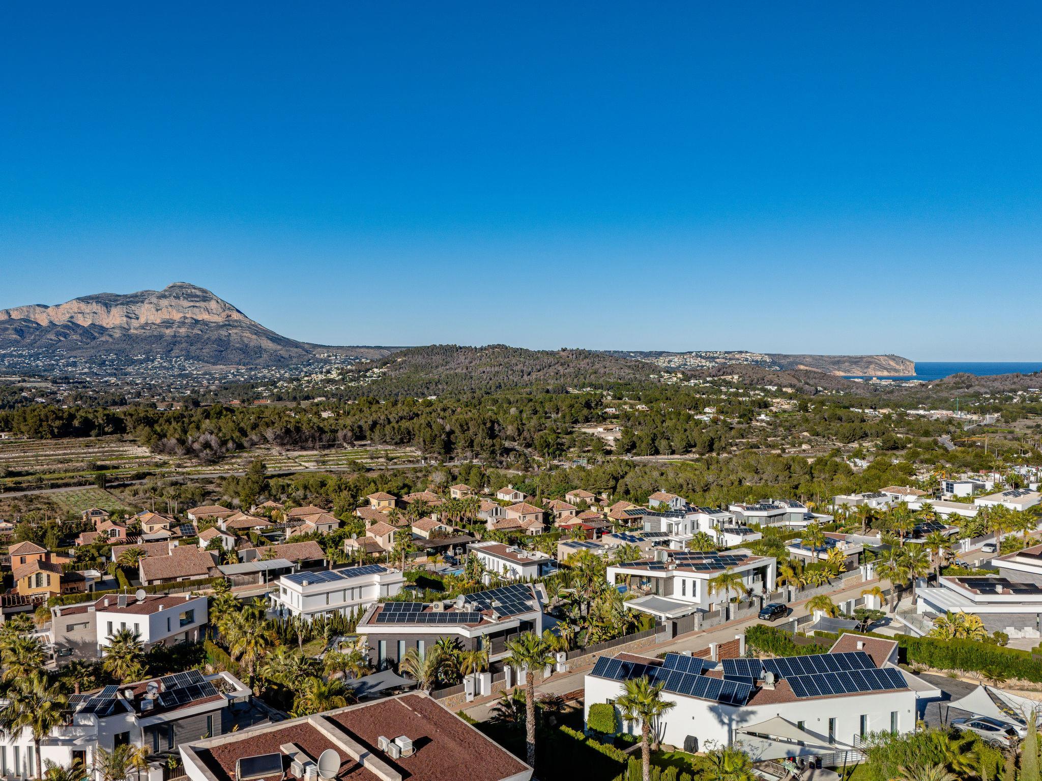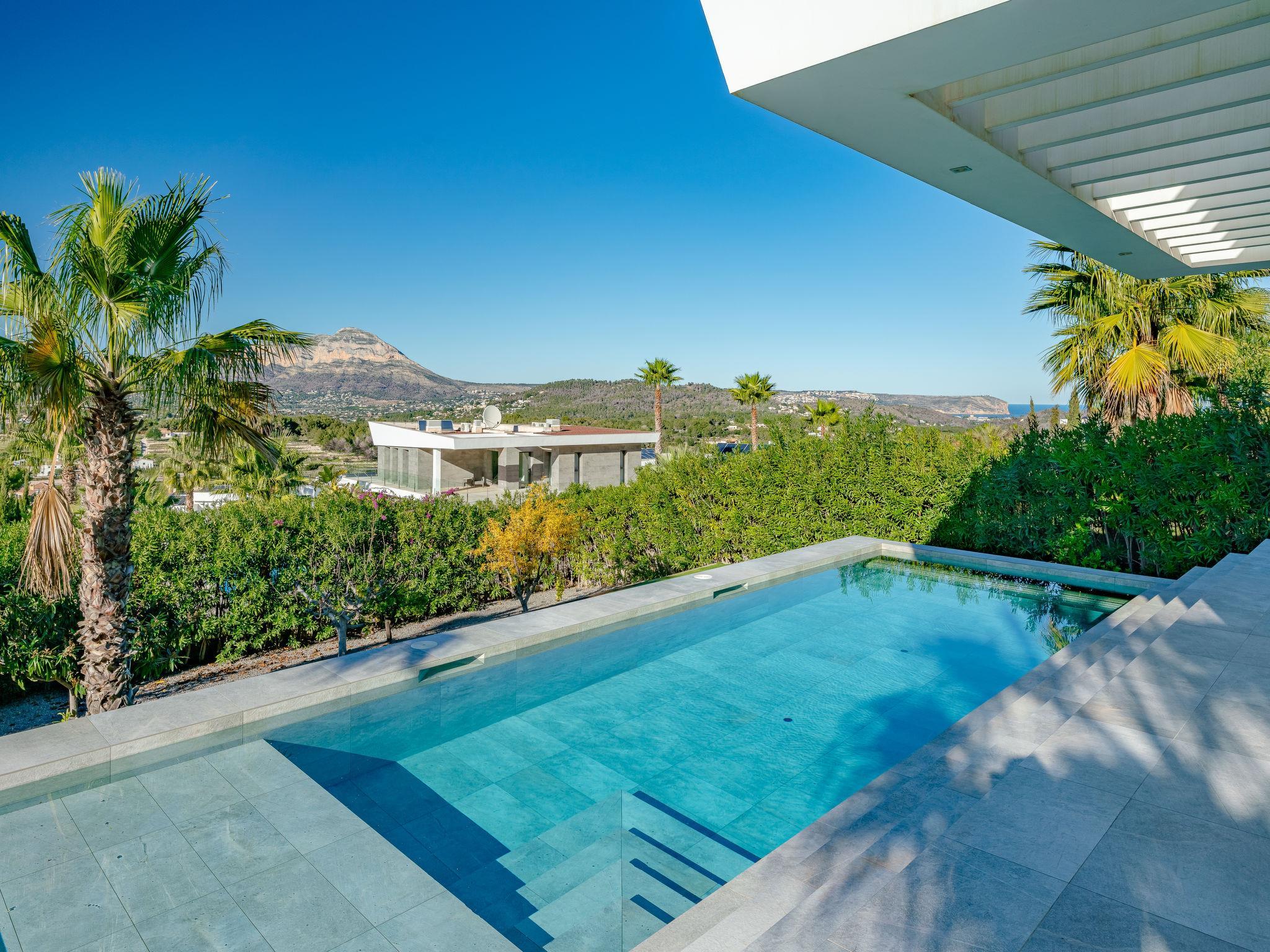 Sehr grosse, sehr moderne, luxuriöse Villa "Leda", auf 2 Stockwerken. Im Ortsteil Cansalades Park Monte Olimpo, 5 km vom Zentrum von Jávea - El Arenal, 8 km vom Zentrum von Moraira, ruhige, sonnige Lage, 5 km vom Meer, 5 km vom Strand. Zur Alleinbenutzung: grosser, schöner, gepflegter terrassierter Garten Pflanzen und Bäumen, Schwimmbad eckig, beheizt (12 x 3 m, 36 m2, 40 - 150 cm tief, saisonale Verfügbarkeit: 01.Jan. - 31.Dez.) mit Innentreppe und Rollladenabdeckung. WC im Poolbereich, Aussendusche, Pergola, Terrasse, Gartenmöbel. Im Hause: Zentralheizung, Klimaanlage, Alarmanlage. Parkplatz (für 2 Autos, überdacht) auf dem Grundstück. Supermarkt 2.5 km, Restaurant 1 km, Bar 2.5 km, Bäckerei 2.5 km, Café 2.5 km, Bushaltestelle 6.4 km, Sandstrand "El Arenal" 5 km, Steinstrand "La Granadella" 10 km. Sporthafen 6 km, Jacht-Hafen 6 km, Golfplatz (9 Loch) 3 km, Surfschule 5 km, Segelschule 5 km, Tennis 3 km. Bitte beachten: Fahrzeug empfohlen. Der Besitzer akzeptiert keine Jugendgruppen.