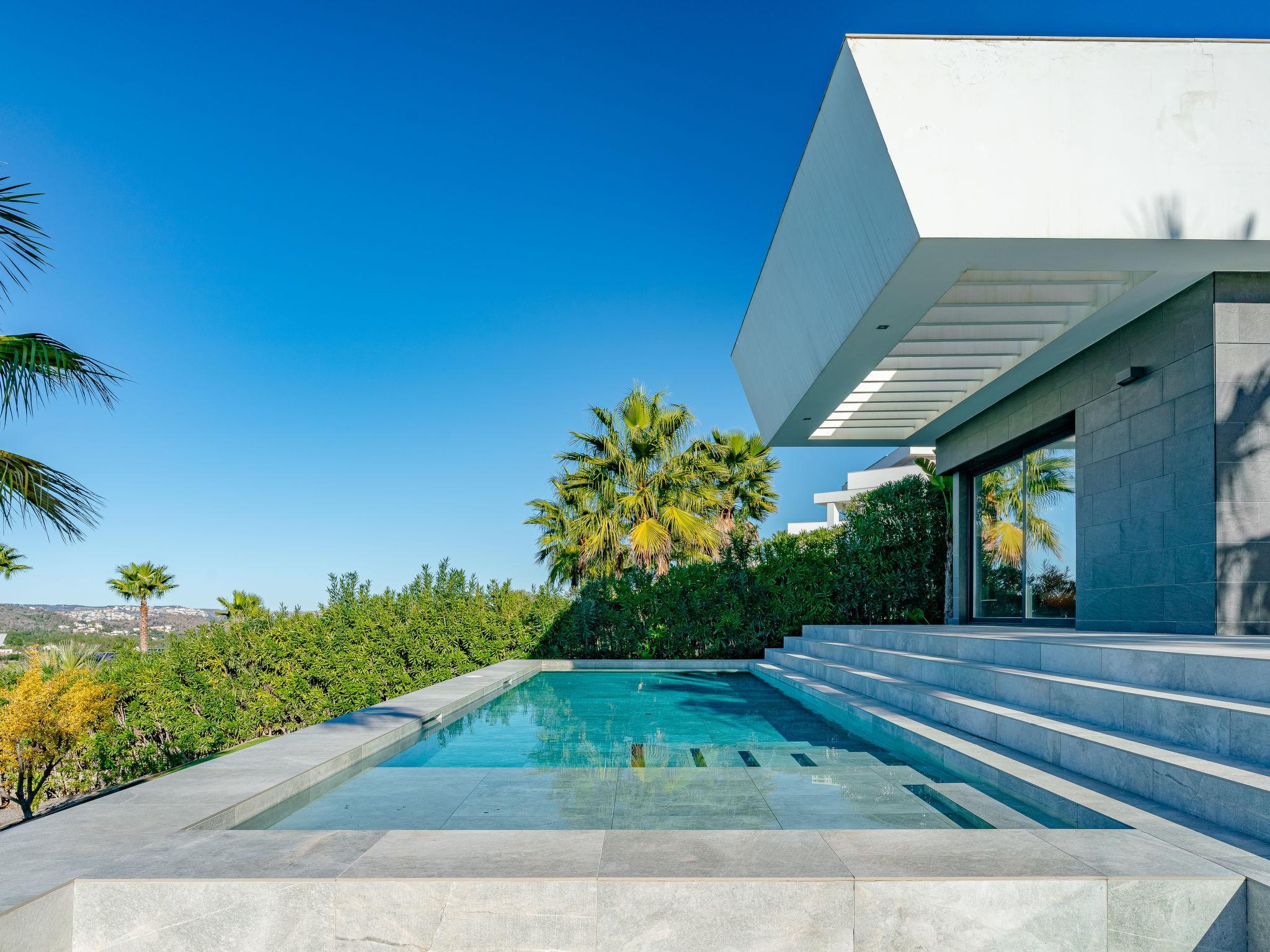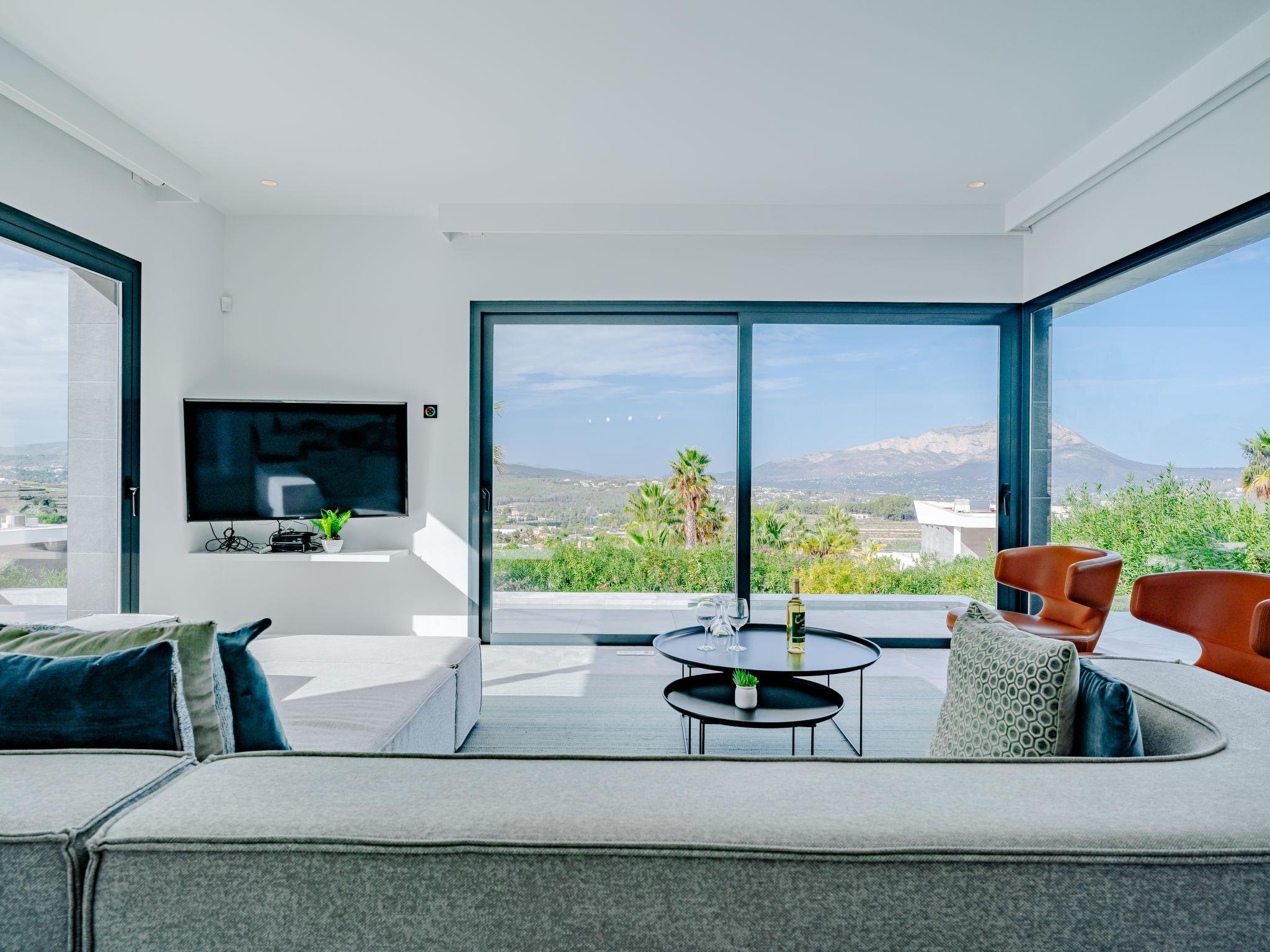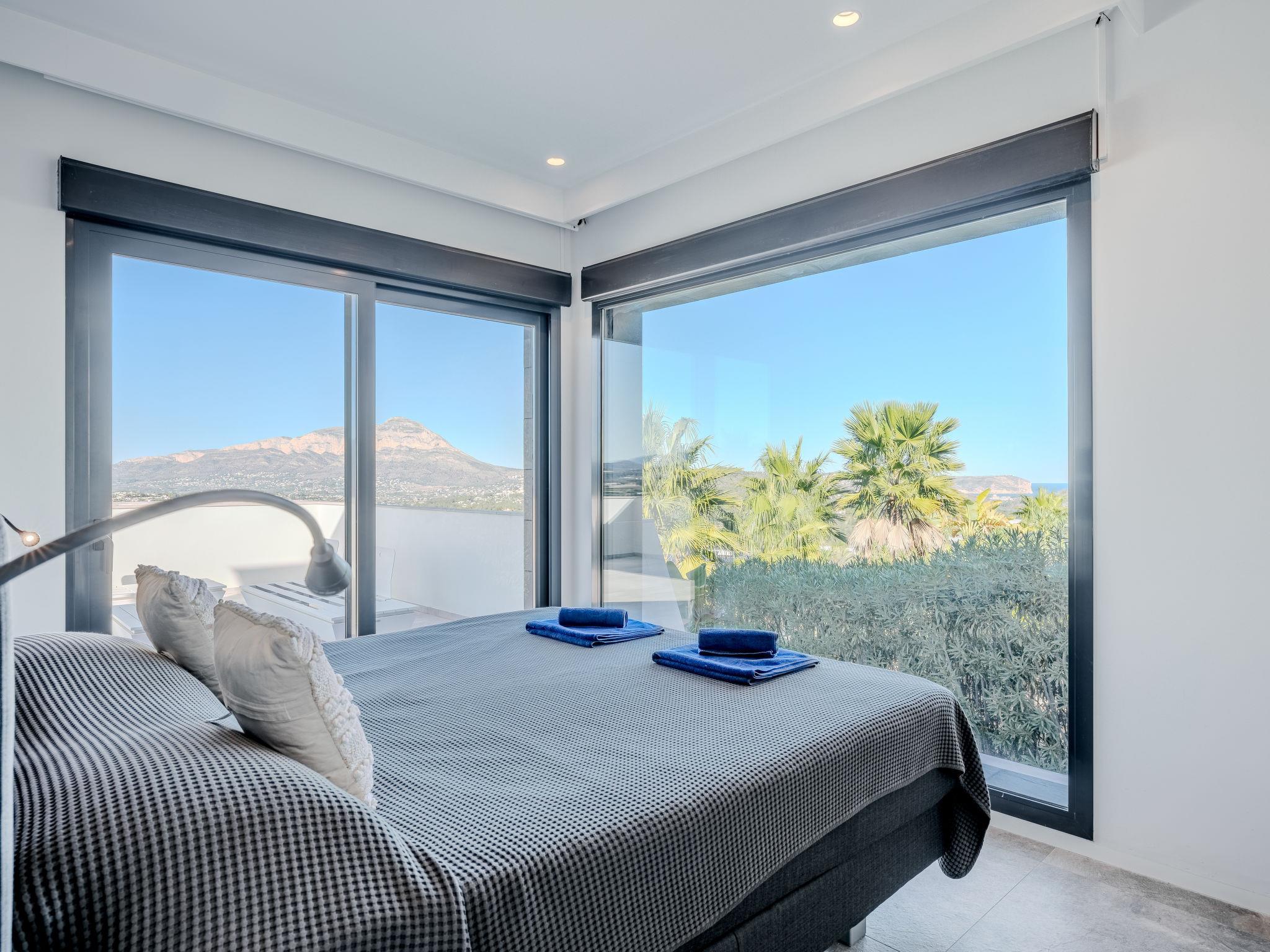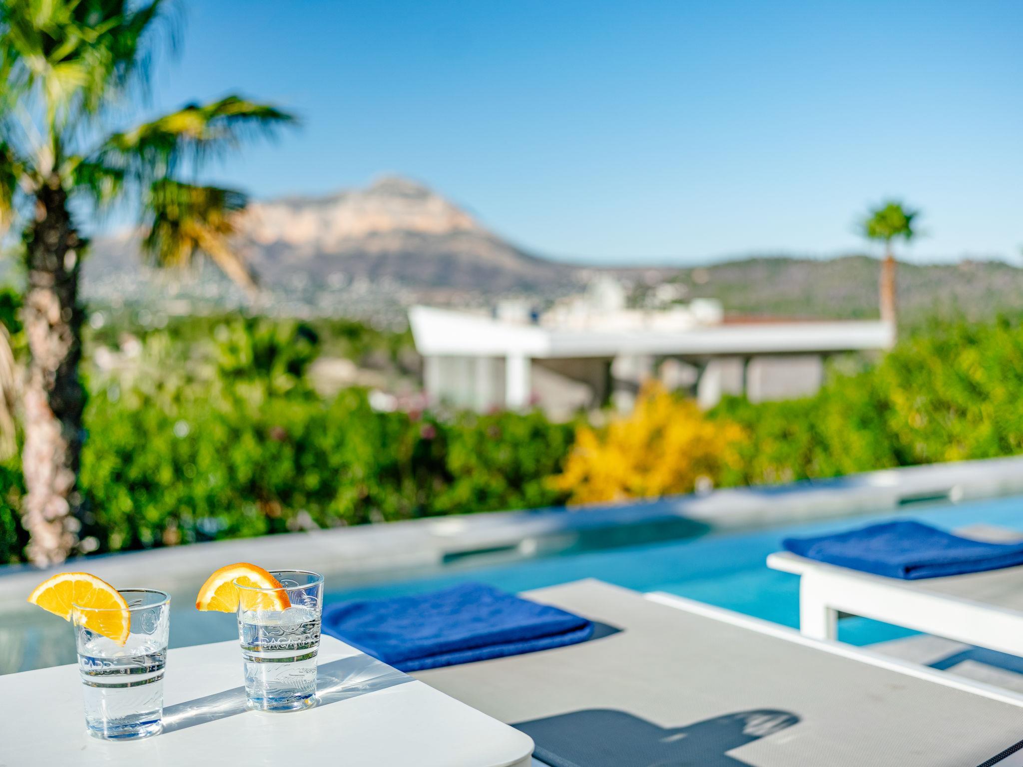 Sehr grosse, sehr moderne, luxuriöse Villa "Leda", auf 2 Stockwerken. Im Ortsteil Cansalades Park Monte Olimpo, 5 km vom Zentrum von Jávea - El Arenal, 8 km vom Zentrum von Moraira, ruhige, sonnige Lage, 5 km vom Meer, 5 km vom Strand. Zur Alleinbenutzung: grosser, schöner, gepflegter terrassierter Garten Pflanzen und Bäumen, Schwimmbad eckig, beheizt (12 x 3 m, 36 m2, 40 - 150 cm tief, saisonale Verfügbarkeit: 01.Jan. - 31.Dez.) mit Innentreppe und Rollladenabdeckung. WC im Poolbereich, Aussendusche, Pergola, Terrasse, Gartenmöbel. Im Hause: Zentralheizung, Klimaanlage, Alarmanlage. Parkplatz (für 2 Autos, überdacht) auf dem Grundstück. Supermarkt 2.5 km, Restaurant 1 km, Bar 2.5 km, Bäckerei 2.5 km, Café 2.5 km, Bushaltestelle 6.4 km, Sandstrand "El Arenal" 5 km, Steinstrand "La Granadella" 10 km. Sporthafen 6 km, Jacht-Hafen 6 km, Golfplatz (9 Loch) 3 km, Surfschule 5 km, Segelschule 5 km, Tennis 3 km. Bitte beachten: Fahrzeug empfohlen. Der Besitzer akzeptiert keine Jugendgruppen.