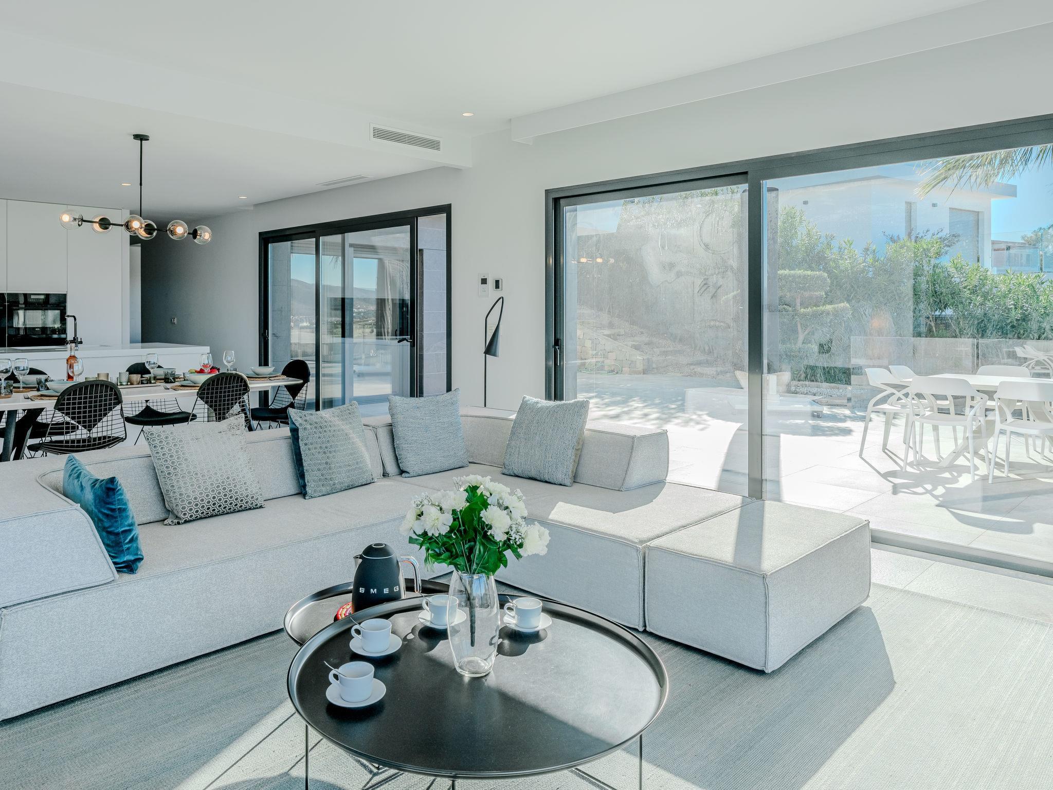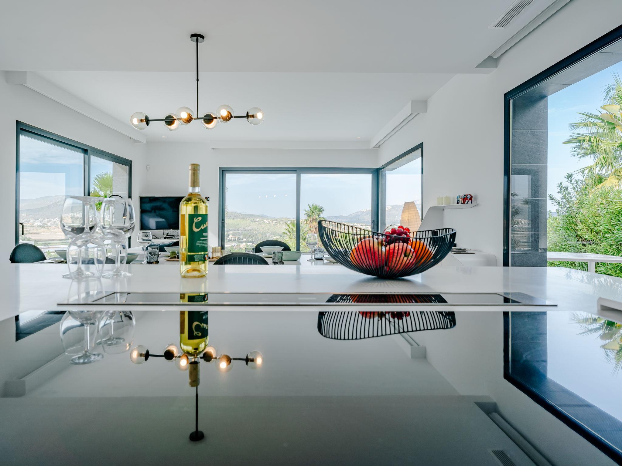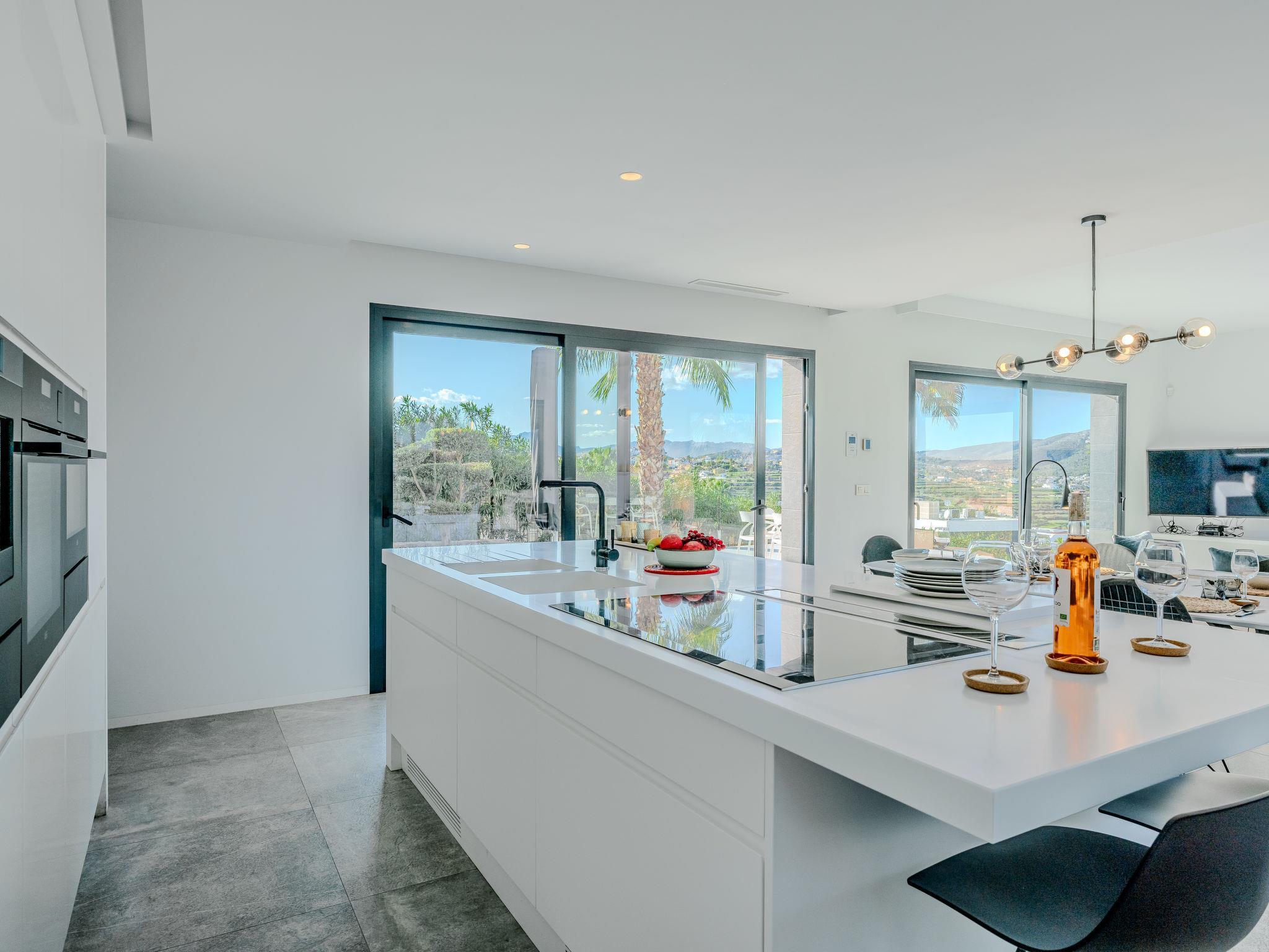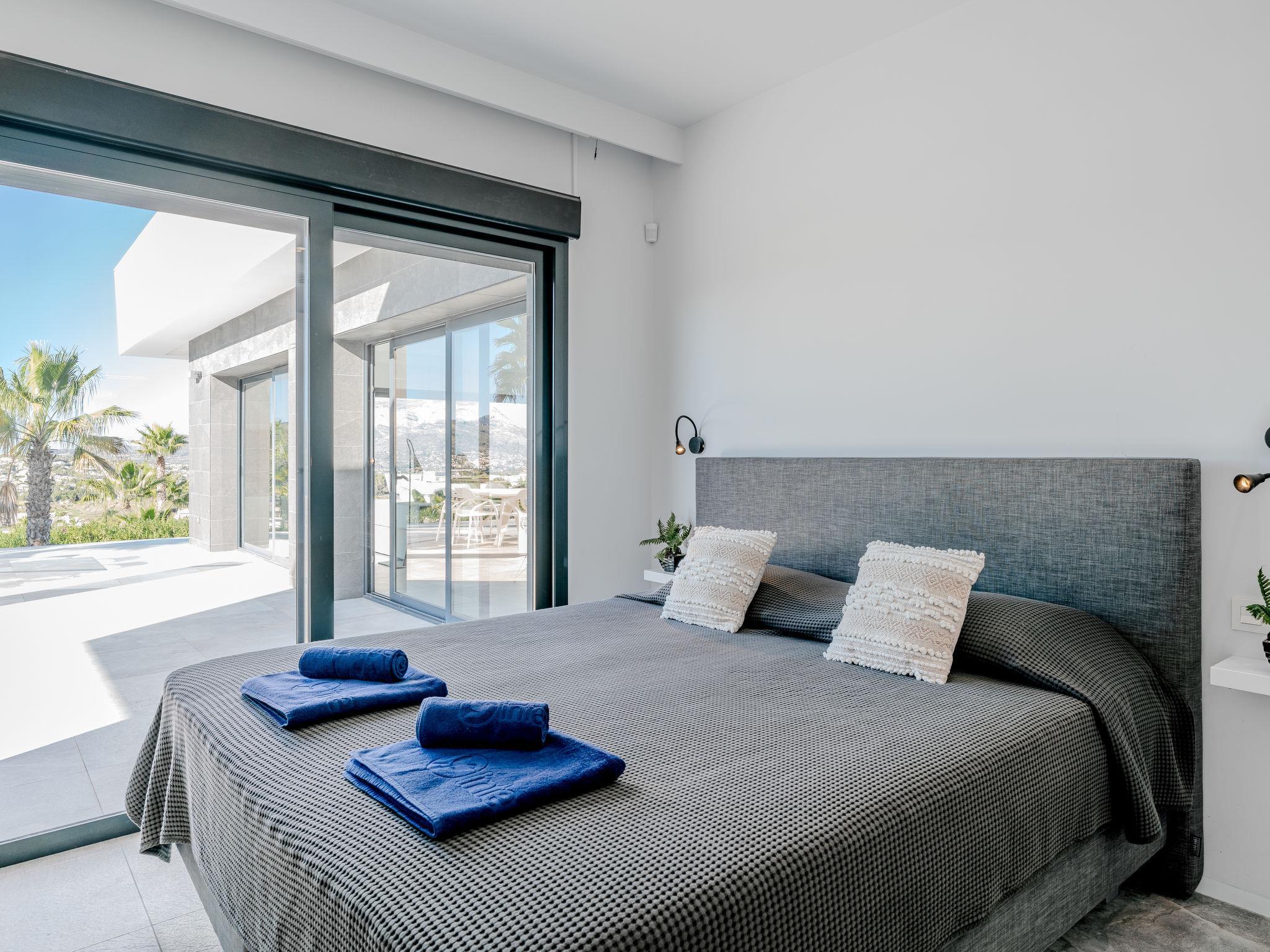 "Villa Leda", 4-Zimmer-Villa 250 m2 auf 2 Stockwerken. Geräumig und hell, sehr modern und stilvoll eingerichtet: Wohn-/Esszimmer mit Sat-TV, Klimaanlage und Warmluftheizung. Ausgang zur Terrasse, Pergola, zum Schwimmbad. 1 Zimmer mit 1 Doppelbett (2 x 90 cm, Länge 200 cm), Dusche/WC, Klimaanlage und Warmluftheizung. Ausgang zur Terrasse. Grosse, offene Küche (Backofen, Geschirrspüler, 5 Induktionskochplatten, Toaster, Wasserkocher, Mikrowelle, Tiefkühler, elektrische Kaffeemaschine, Kochinsel, Kombinationsmikrowelle) mit Esstisch, Klimaanlage und Warmluftheizung. Ausgang zur Terrasse, zum Schwimmbad. Sep. WC. Obergeschoss: 1 Zimmer mit begehbarem Kleiderschrank mit 1 franz. Bett (180 cm, Länge 200 cm), Bad/Dusche/WC, Doppelwaschbecken, Klimaanlage und Warmluftheizung. Ausgang zur Terrasse. 1 Zimmer mit 1 Doppelbett (2 x 90 cm, Länge 200 cm), Dusche/WC, Klimaanlage und Warmluftheizung. Ausgang zur Terrasse. Grosse Terrasse 35 m2, grosser Gartensitzplatz 100 m2. Terrassenmöbel, Liegestühle, Loggia, Sitzplatz. Herrliche Sicht auf das Meer, die Berge, das Tal, das Schwimmbad und den Garten. Zur Verfügung: Waschmaschine, Wäschetrockner, Bügeleisen, Haartrockner. Internet (WLAN, gratis). Parkplatz (überdacht, 2 Autos). Bitte beachten: für Kleinkinder nicht geeignet. TV nur ES. VT-488665-A // Reg. Nr.: ESFCTU00000307100097680700000000000000000VT-488665-A6