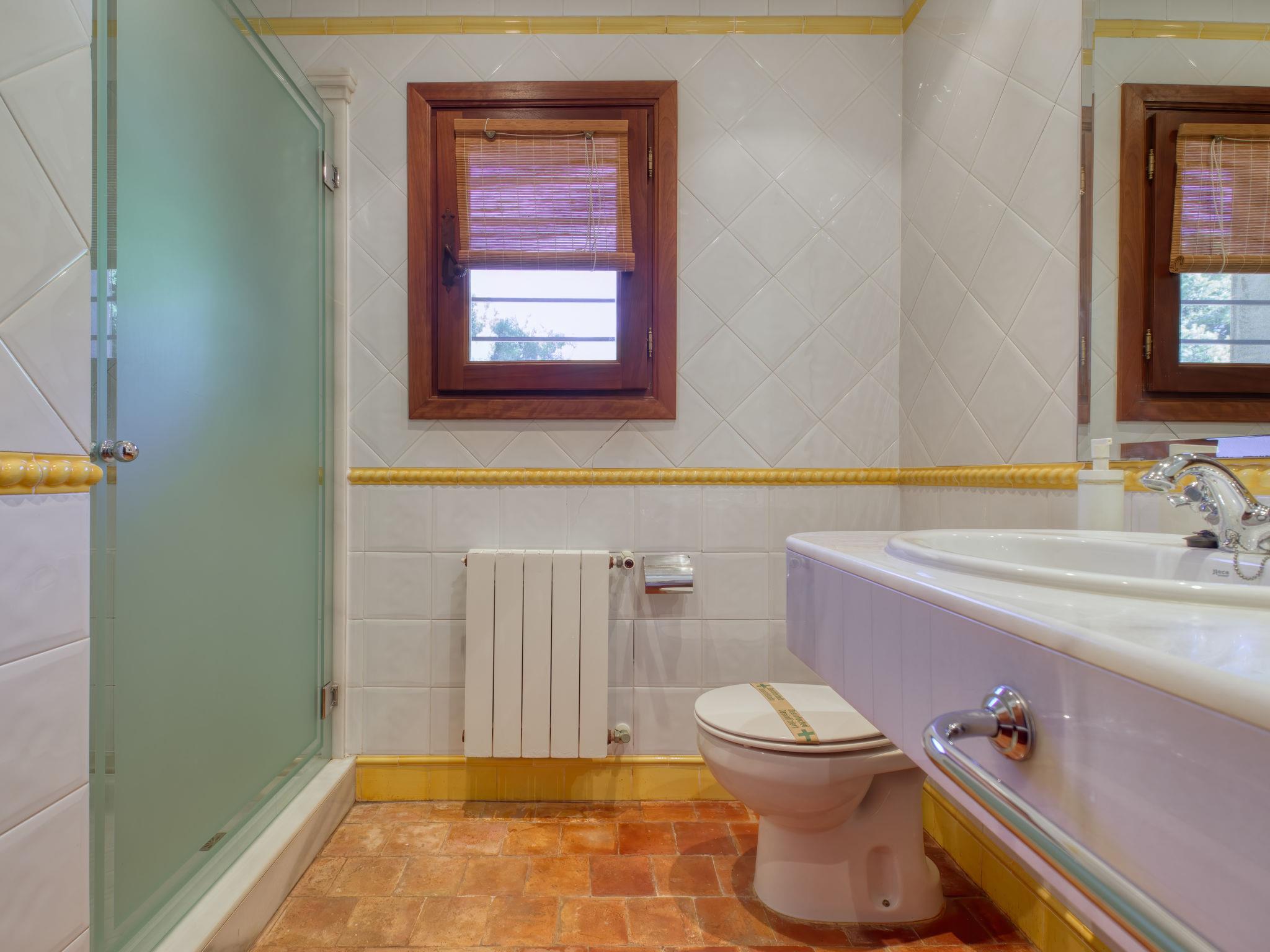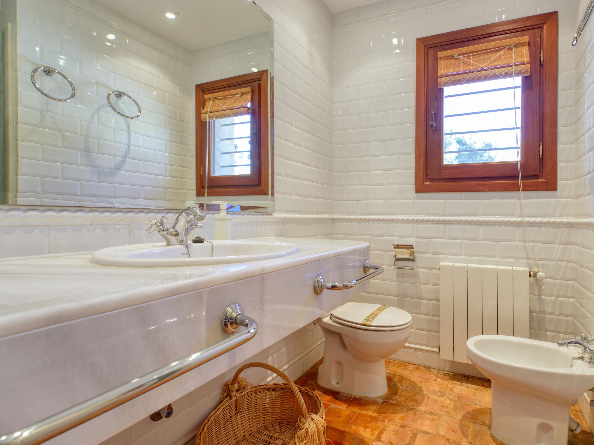 8-Zimmer-Villa 300 m2. Komfortabel und stilvoll eingerichtet: grosses Wohnzimmer mit Sat-TV, Digital-TV und Flachbildschirm. Ausgang zur Terrasse. Esszimmer. 1 Zimmer mit 3 Betten (90 cm, Länge 190 cm), Bad/Bidet/WC, sep. WC und Ventilator. 1 Doppelzimmer mit 1 Bett (180 cm, Länge 190 cm), sep. WC, Dusche/WC und Ventilator. 1 Doppelzimmer mit 1 franz. Bett (180 cm, Länge 190 cm), sep. WC, Dusche/WC und Ventilator. 1 Zimmer mit 1 franz. Bett (150 cm, Länge 190 cm), Waschbecken, sep. WC, TV und Ventilator. Grosse Küche (5 Kochplatten, Backofen, Geschirrspüler, Mikrowelle, Tiefkühler, elektrische Kaffeemaschine, Kochinsel). Dusche/WC. Obergeschoss: 1 grosses Zimmer mit 1 franz. Bett (200 cm, Länge 200 cm), offenem Kamin, Dusche/WC, Doppelwaschbecken und TV (Flachbildschirm). 1 abgeschrägtes Kinderzimmer mit 4 Betten (90 cm, Länge 190 cm). Terrassenmöbel, Liegestühle. Sicht auf die Landschaft. Zur Verfügung: Waschmaschine, Bügeleisen, Haartrockner. Internet (WLAN, gratis). Parkplatz (überdacht, eingezäunt, 4 Autos). 2 der Schlafzimmer sind nur über den Innenhof zugänglich. AT-439326-A // Reg. Nr.: ESFCTU00000307100095249800000000000000000AT-439326-A3