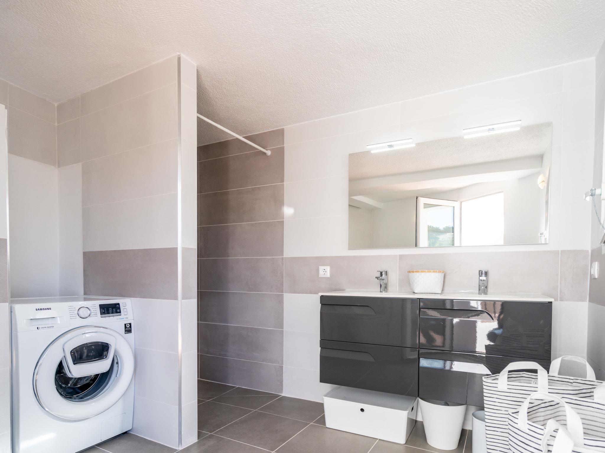 5-Zimmer-Villa 180 m2. Geräumig und hell, komfortabel und gemütlich eingerichtet: Wohn-/Esszimmer mit Sat-TV und Klimaanlage. Ausgang zur Terrasse. 1 Zimmer mit 1 franz. Bett (180 cm, Länge 200 cm), Dusche/WC, Doppelwaschbecken und Klimaanlage. 2 Zimmer, jedes Zimmer mit 2 Betten, Klimaanlage und Ventilator. Küche (Backofen, Geschirrspüler, Mikrowelle, Tiefkühler). Bad/WC. Heizung. Unteres Geschoss: Dusche/WC, Doppelwaschbecken. Grosse Terrasse 80 m2. Terrassenmöbel, Gartengrill, Liegestühle (6). Herrliche Panoramasicht auf das Meer. Zur Verfügung: Waschmaschine, Fliegengitter. Internet (WLAN, gratis). Parkplatz (überdacht, eingezäunt, 2 Autos) beim Haus. Bitte beachten: geeignet für Familien. Nichtraucher-Haus. R000000001