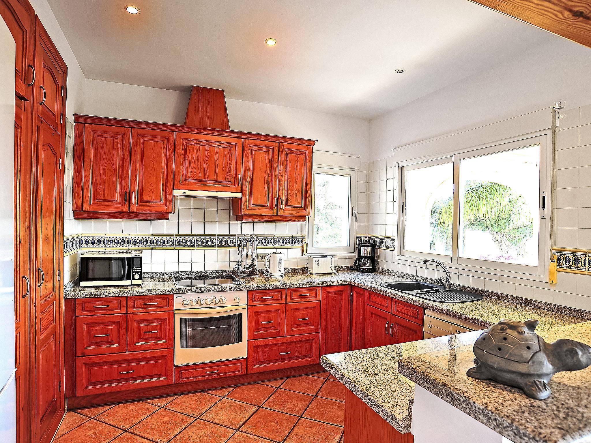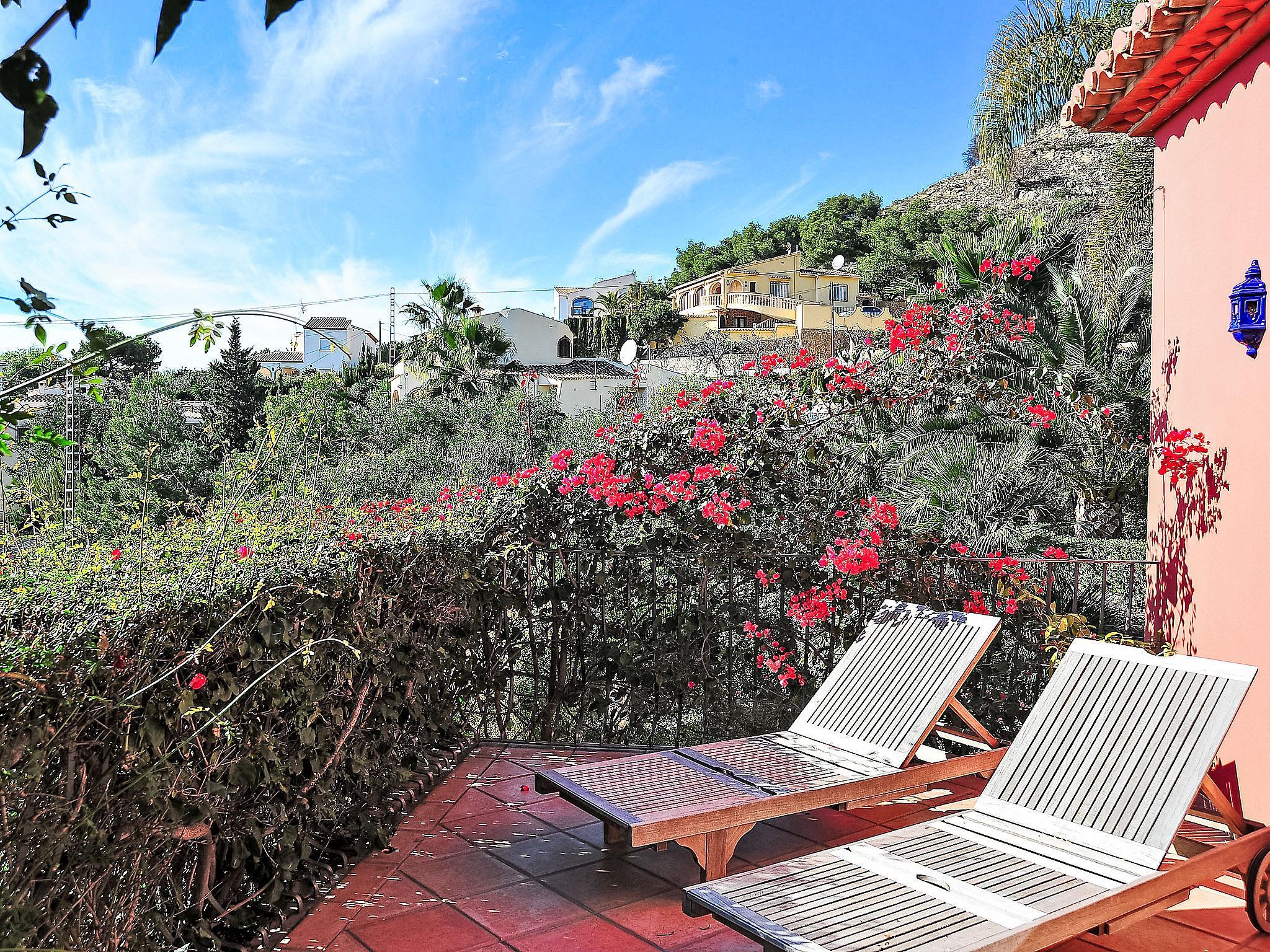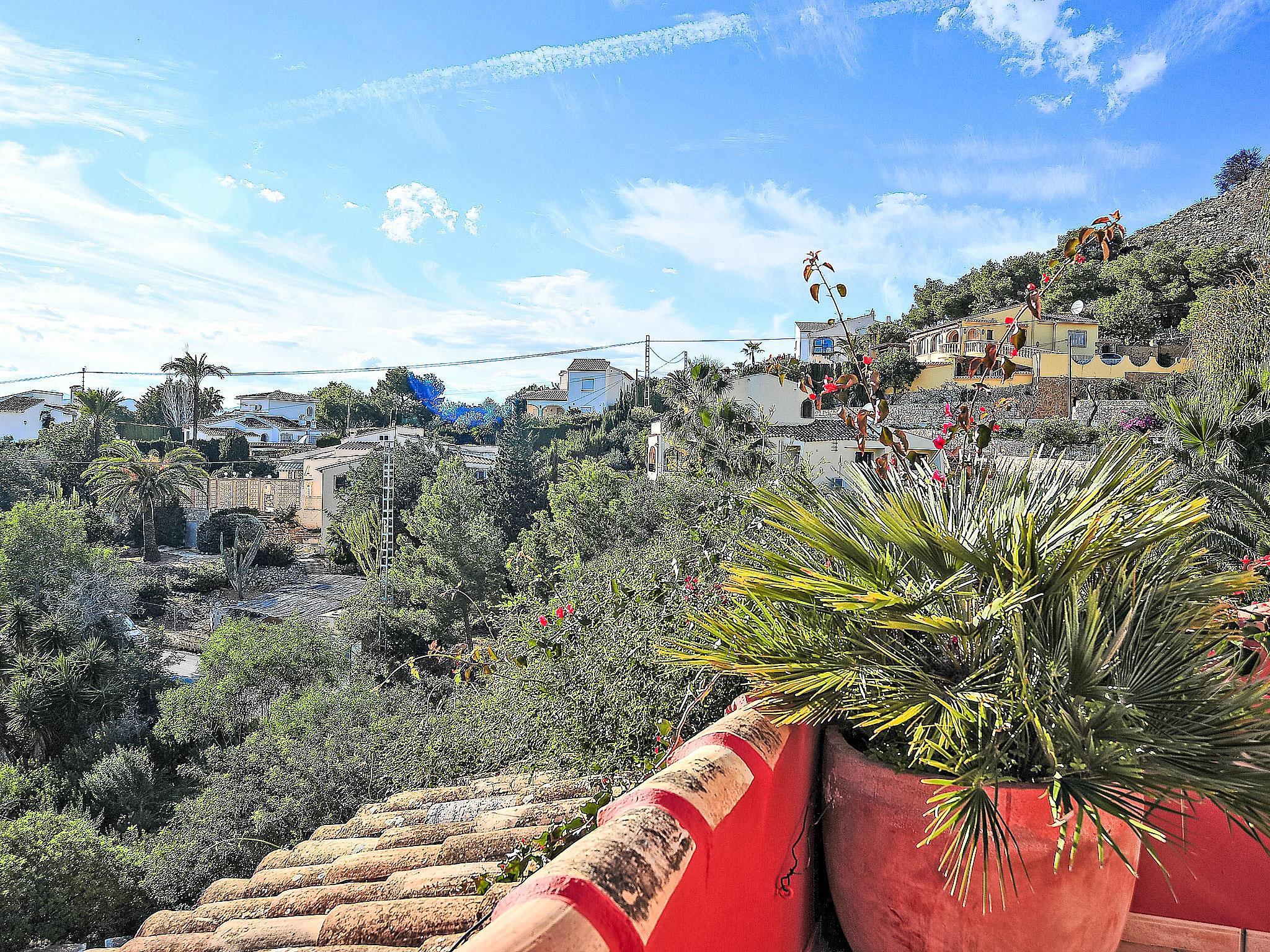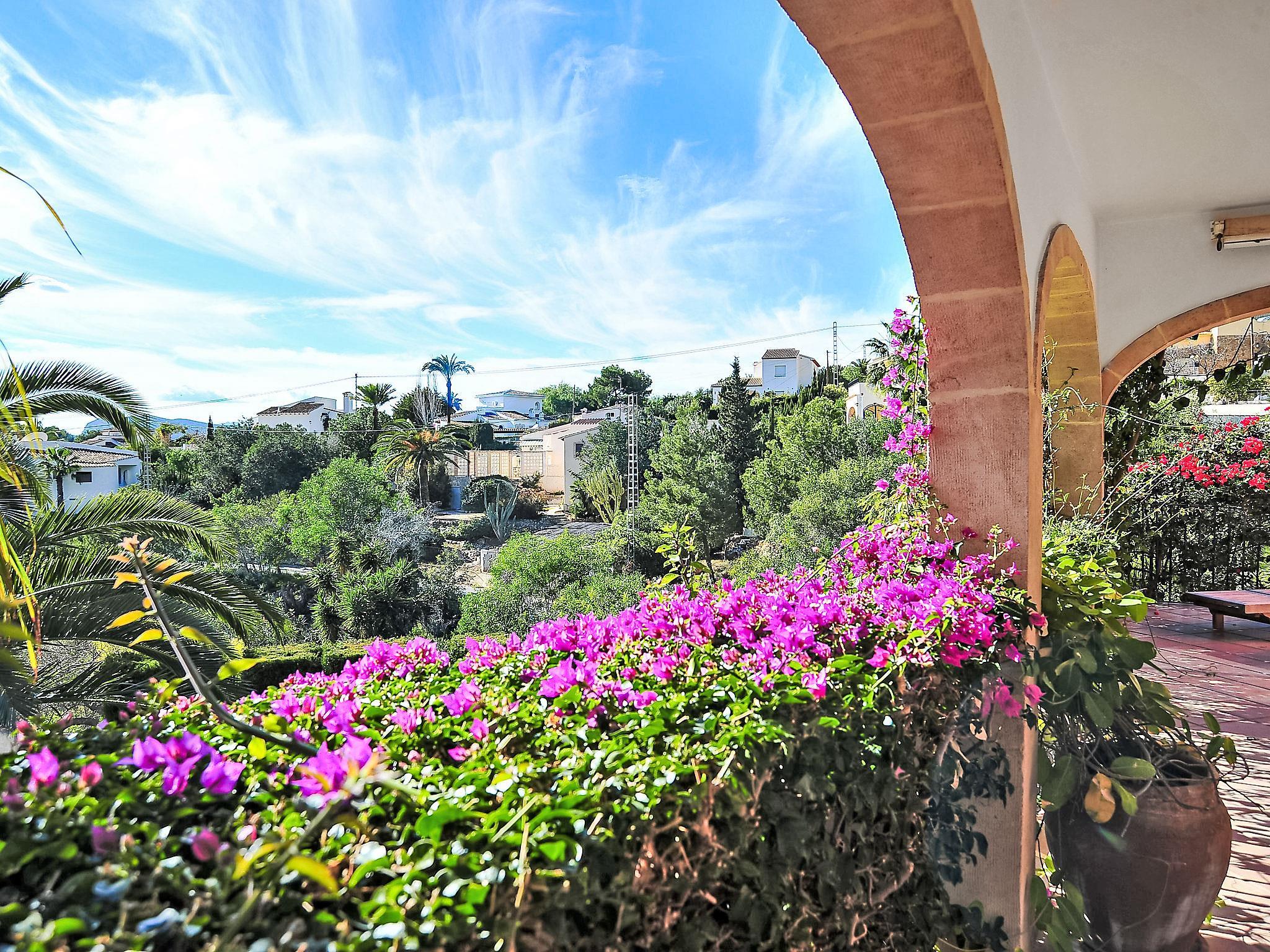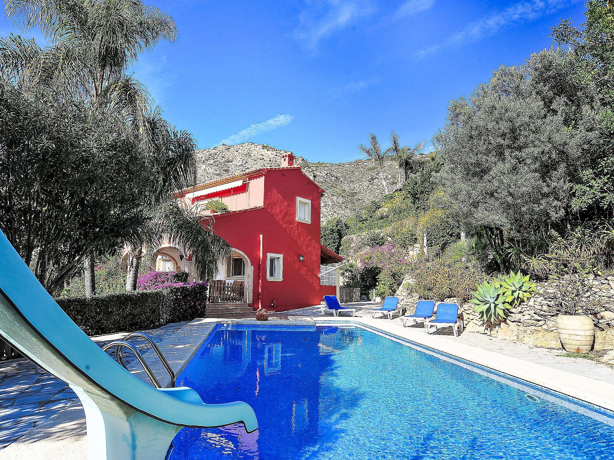 Schöne Villa "Aviles", auf 2 Stockwerken. Im Ortsteil Castellans, ruhige, sonnige Lage, 9 km vom Meer, in einer Sackgasse. Zur Alleinbenutzung: schöner, gepflegter Garten 1'800 m2 (eingezäunt) mit Rasen und Pflanzen, Schwimmbad nicht einsehbar, eingezäunt (4 x 9 m, saisonale Verfügbarkeit: 01.Jan. - 31.Dez.) mit Innentreppe. Rutschbahn. Treppenweg (23 Stufen) bis zum Haus. Supermarkt 2 km, Restaurant 1 km, Bushaltestelle "Estacion de autobuses Javea" 2 km, Sandstrand "Arenal" 9 km. Jugendgruppen nur auf Anfrage.
