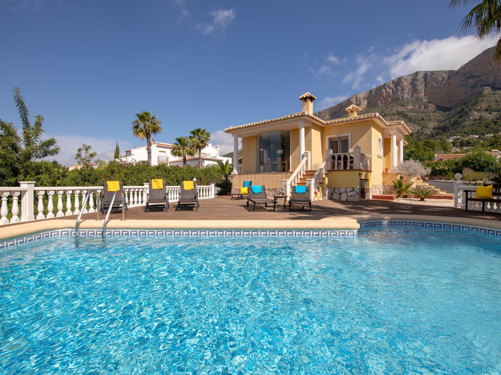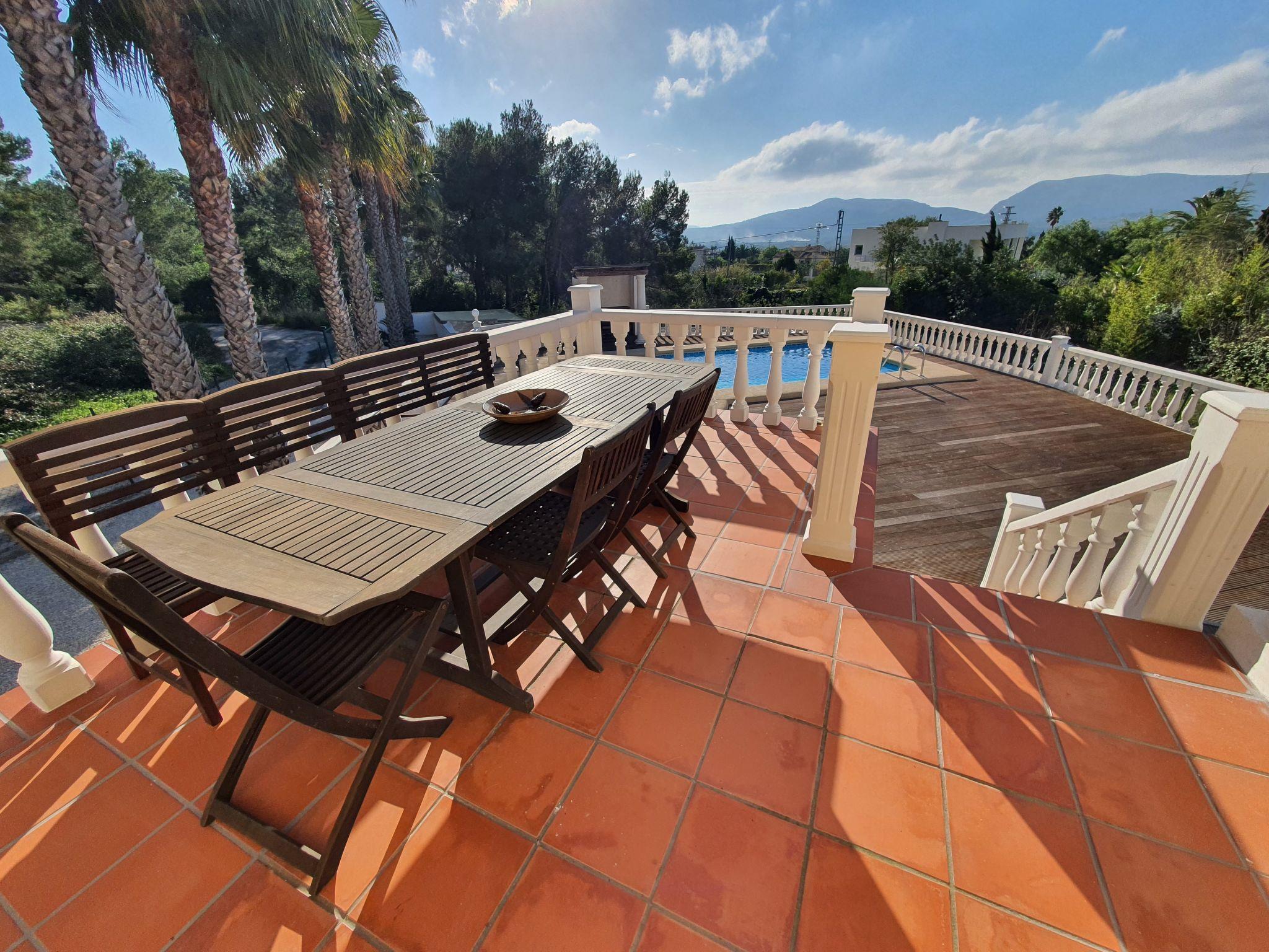 Schönes Haus "Osa Menor". Im Ortsteil Montgo, ruhige, sonnige Lage in einem Wohnquartier, 9 km vom Meer. Zur Alleinbenutzung: grosser Garten 1'550 m2 (eingezäunt) mit Pflanzen und Bäumen, Schwimmbad (4 x 8 m, 100 - 180 cm tief, saisonale Verfügbarkeit: 01.Jan. - 31.Dez.) mit Innentreppe. Aussendusche. Im Hause: Zentralheizung, Alarmanlage. Supermarkt, Restaurant 500 m, Bushaltestelle "Estacion de autobuses Javea" 6.2 km, Sandstrand "Arenal" 9 km. Golfplatz (9 Loch) 4 km. Jugendgruppen nur auf Anfrage.