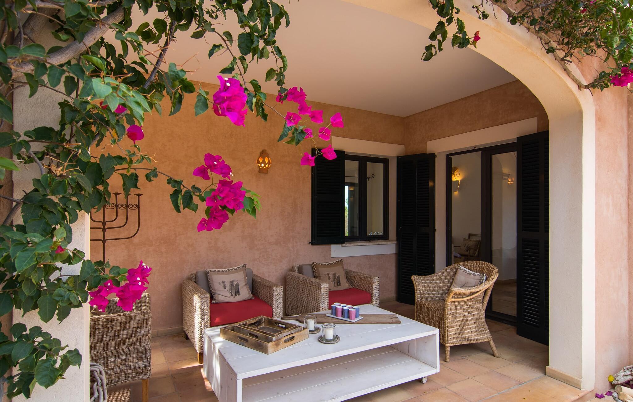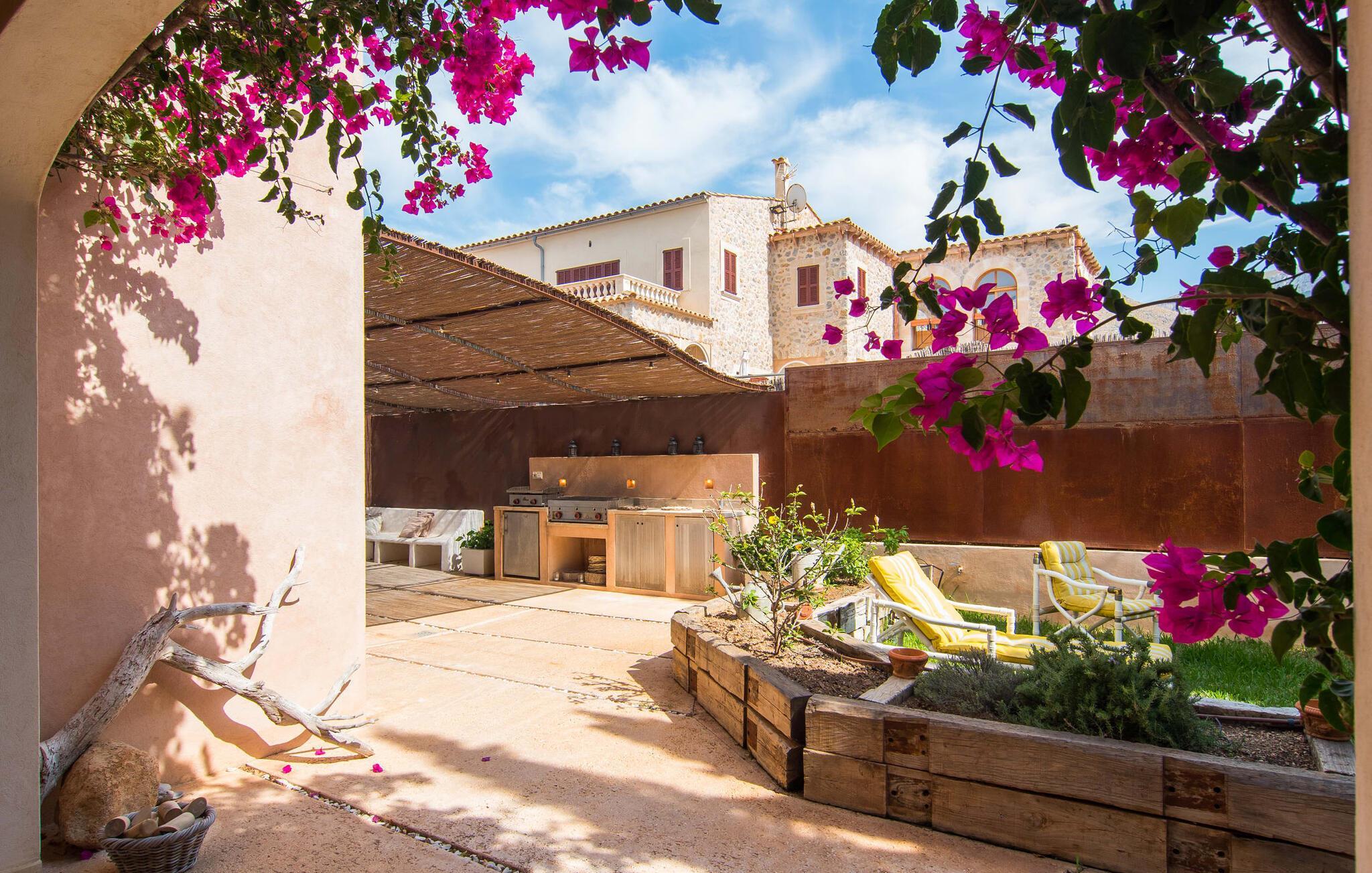 Mit ihrer pastellfarbenen Terrakotta-Farbgebung und den attraktiven dunkelgrünen Fensterläden ist die Villa „Jasmin“ in der Urbanisation Montferrutx, nahe dem idyllischen Städtchen Colònia de Sant Pere, ein echter Hingucker. Das kleine Haus besticht durch seinen gepflegten und sehr einladenden Außenbereich: Dank mehrerer Terrassen – teils offen und herrlich sonnig, teils überdacht und angenehm schattig – können Sie Ihr Leben fast vollständig ins Freie verlegen. Von der Dachterrasse genießen Sie einen einzigartigen Ausblick über die Umgebung. Auf der Gartenebene bietet eine hervorragend ausgestattete Außenküche inklusive Grill und Esstisch ideale Voraussetzungen für kulinarische Höhepunkte. Darüber hinaus wurden auf der Terrasse und im kleinen, aber feinen Garten liebevoll verschiedene Sitzecken zum Entspannen arrangiert.