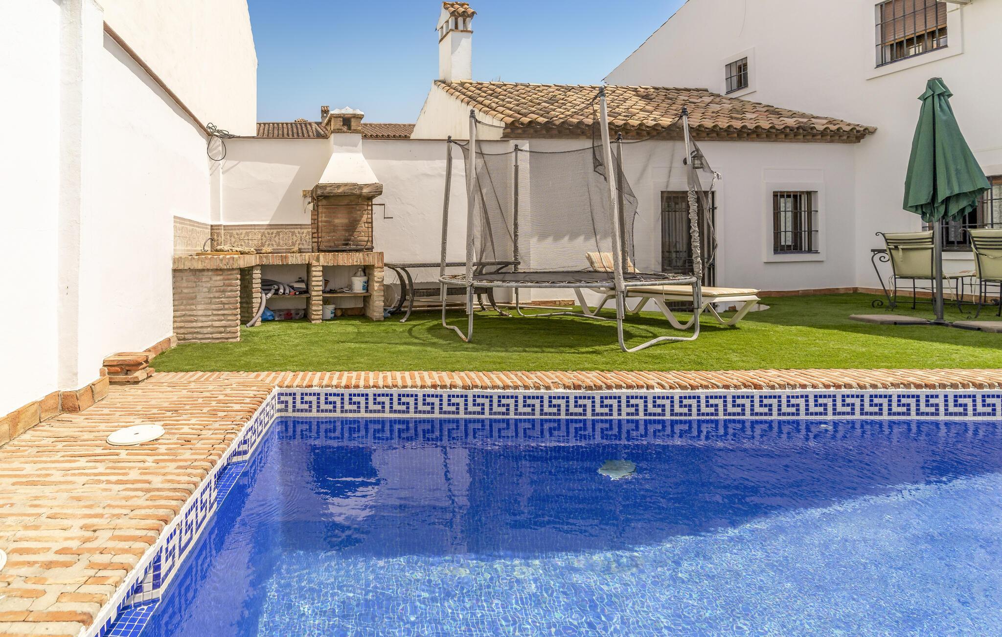 Draußen lädt Ihr privater Pool zum Schwimmen und Planschen unter freiem Himmel ein. Lassen Sie Ihre Kinder auf dem geschützten Trampolin toben und genießen Sie die lauen Sommerabende bei einem harmonischen Abendessen im Patio.