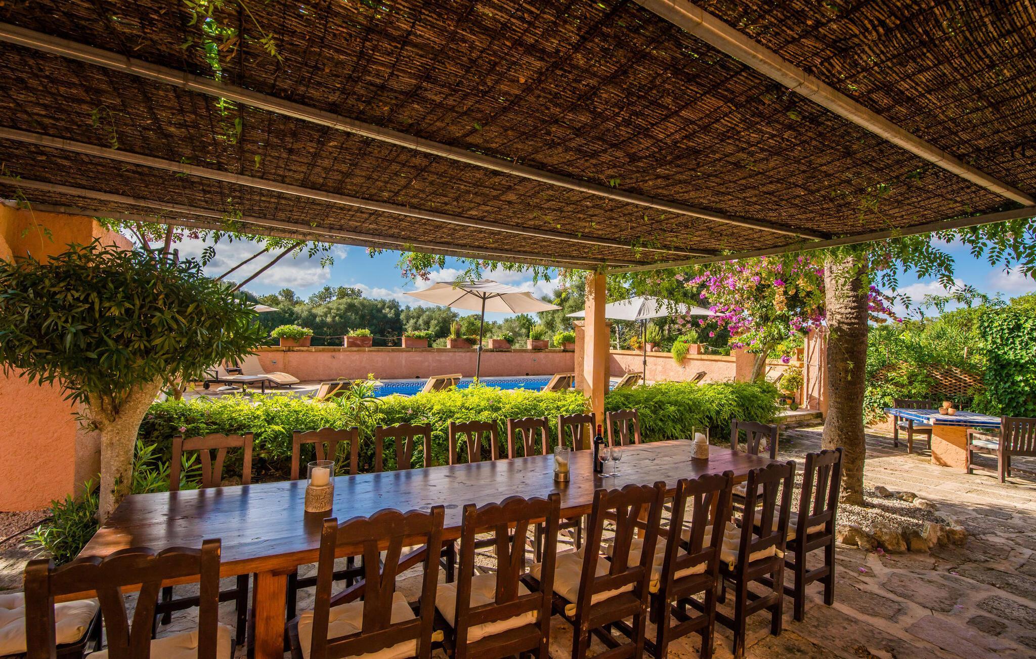 Planen Sie einen Urlaub mit einer größeren Gruppe? Zum Beispiel mehrere Familien mit Kindern? Und Sie legen großen Wert auf Komfort und Privatsphäre? Dann ist die Finca „Jordi de Cas Concos“ im Süden Mallorcas das perfekte Feriendomizil für Sie! Das Anwesen wurde auf einem riesigen Grundstück inmitten einer wunderschönen mediterranen Landschaft errichtet. Hier haben Sie Platz ohne Ende – und dank der charmanten Gestaltung des Außenbereichs auch jede Menge Rückzugsmöglichkeiten. Der Garten und die vielen verschiedenen überdachten und sonnigen Terrassenbereiche, die hübsch angelegten Wege und die lauschigen Innenhöfe sind himmlisch schön – man weiß gar nicht, wo man sich zuerst hinsetzen soll. Wenn Sie sich sportlich betätigen, im Pool schwimmen oder eine Partie Tischtennis spielen möchten, dann treffen Sie sich vielleicht auf einen Drink an der Bar oder sitzen Sie gemeinsam an der langen Tafel und genießen Sie frisch gegrillte Köstlichkeiten und einen in der Außenküche zubereiteten Salat .