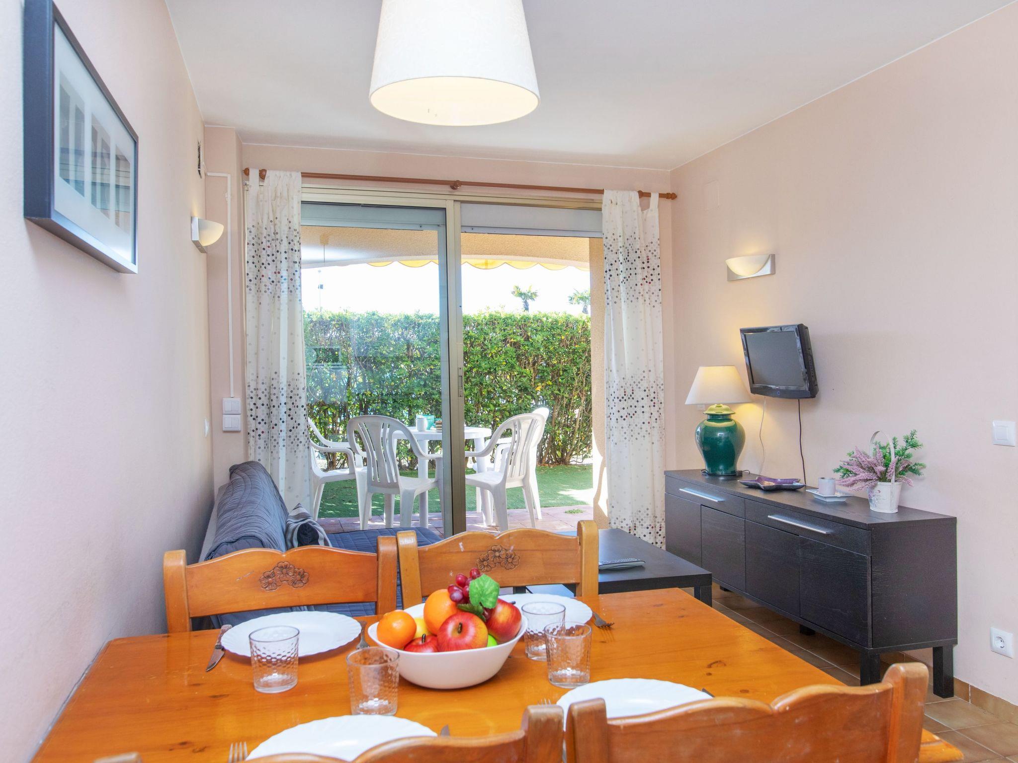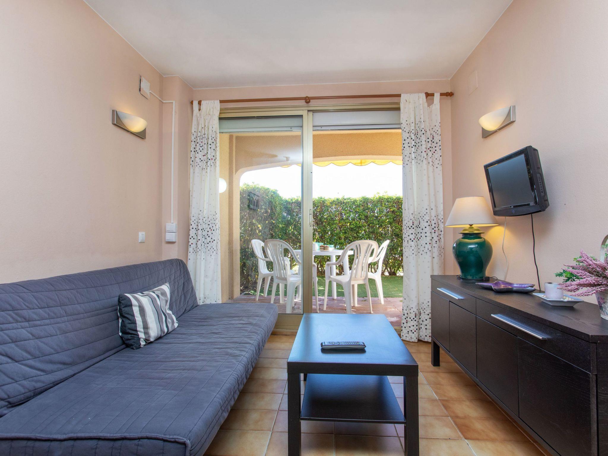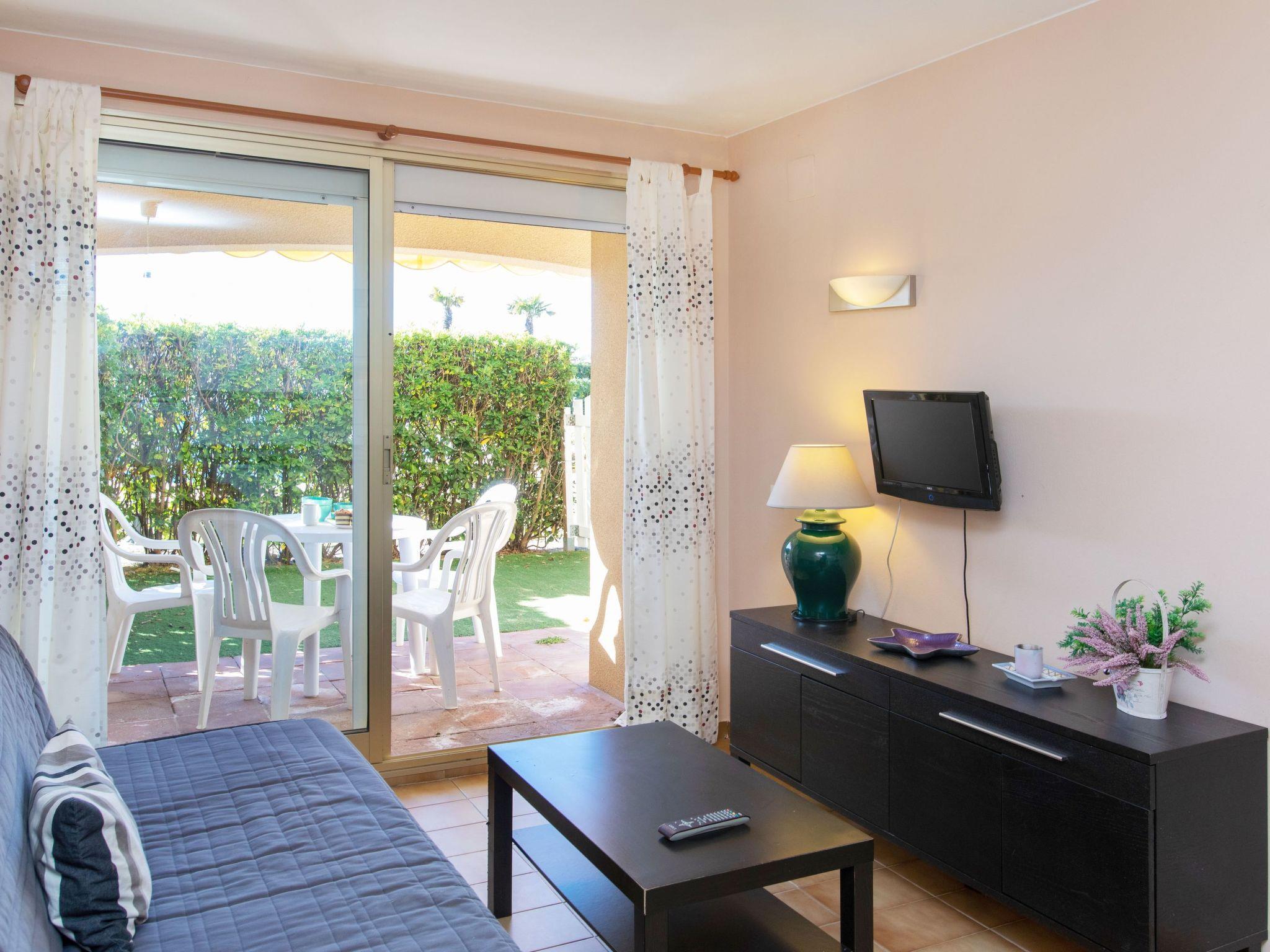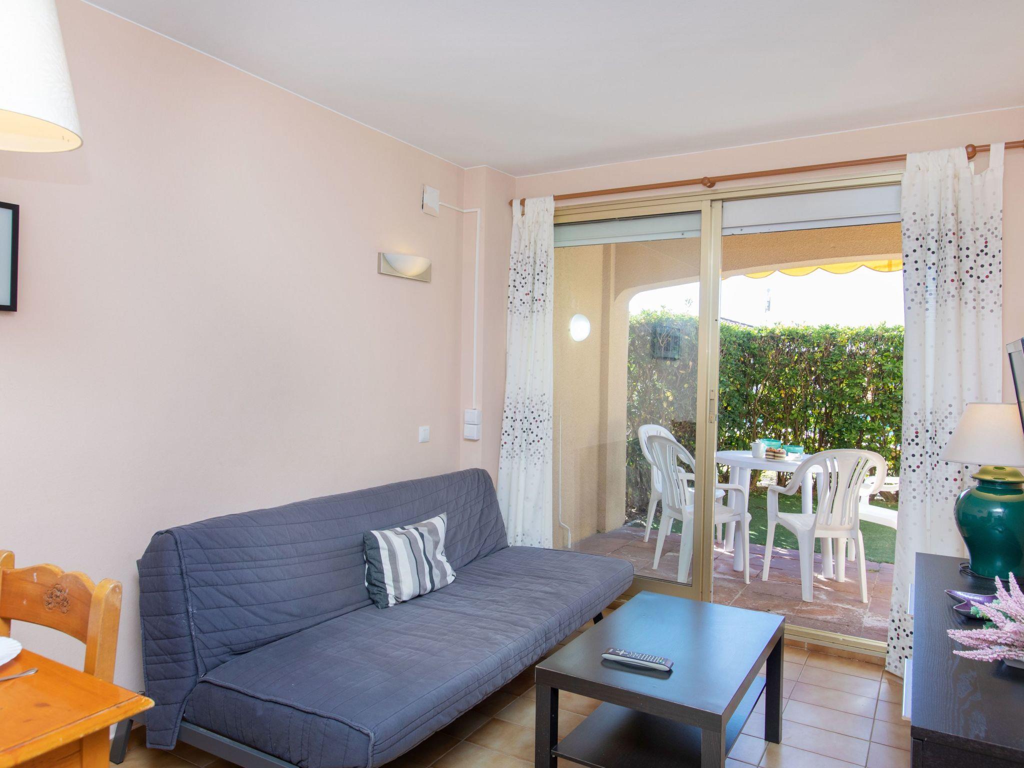 2-Zimmer-Wohnung 34 m2, im Erdgeschoss. Komfortabel eingerichtet: Wohn-/Schlafzimmer mit 1 Diwanbett (135 cm, Länge 180 cm), Digital-TV und Flachbildschirm. Ausgang zum Gartensitzplatz, zum Schwimmbad. 1 Zimmer mit 1 franz. Bett (135 cm, Länge 190 cm). Ausgang zum Gartensitzplatz, zum Schwimmbad. Offene Küche (2 Kochplatten, Toaster, Wasserkocher, Mikrowelle, elektrische Kaffeemaschine) mit kleiner Bar. Bad/WC. Boiler (50 Liter). Keine Heizmöglichkeit. Terrassenmöbel. Sicht auf den Garten. Zur Verfügung: Waschmaschine, Bügeleisen, Haartrockner. Bitte beachten: TV nur ES. Kein Fahrstuhl. HUTG016835 // Reg. Nr.: ESFCTU000017007000192780000000000000000000HUTG0168359