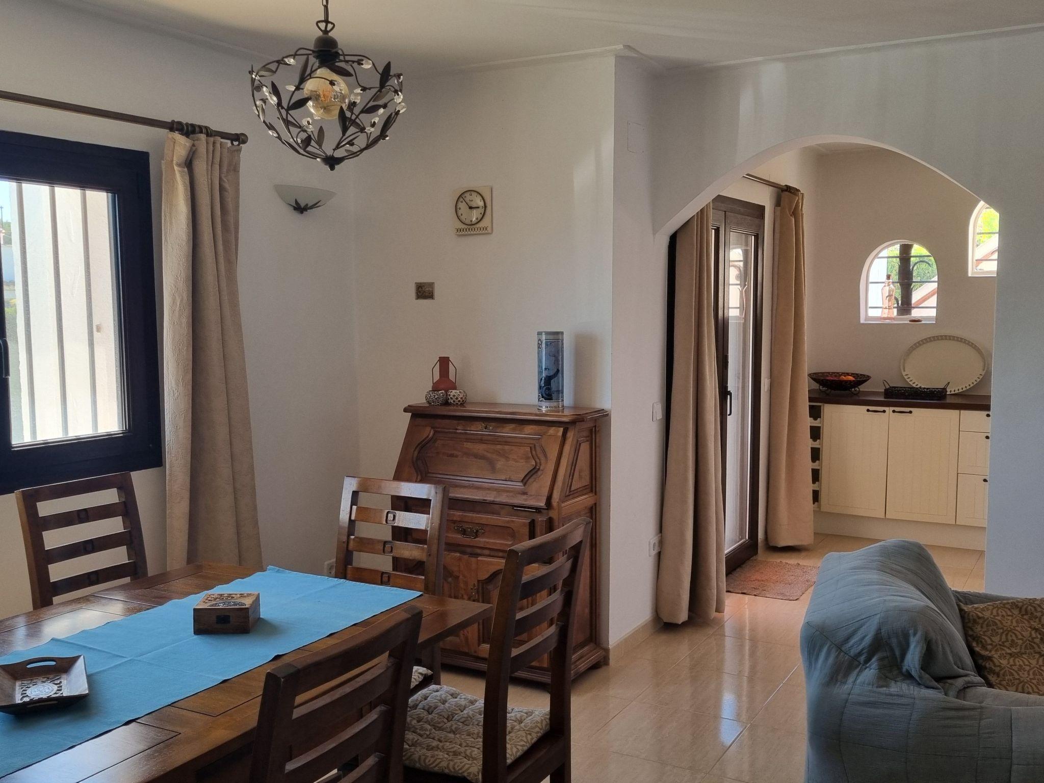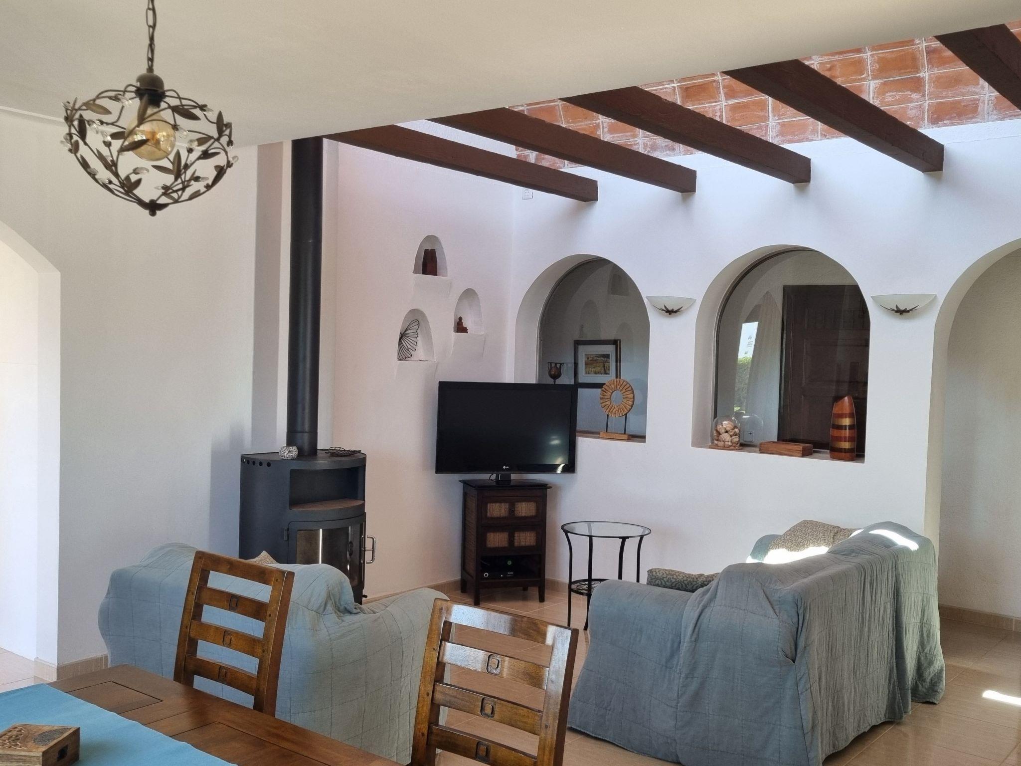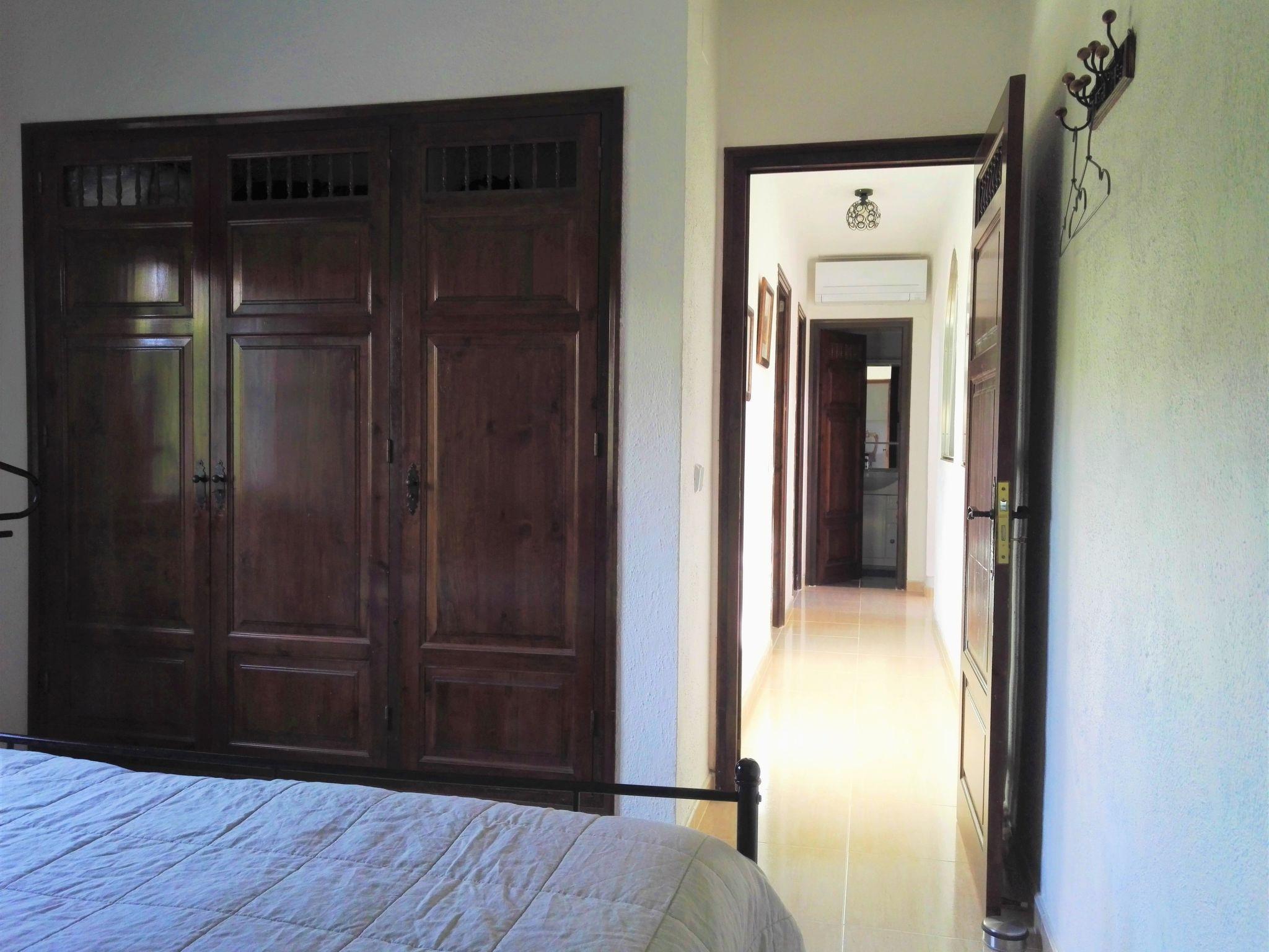 Das Haus besteht aus einem großen Wohn-/Esszimmer mit direktem Übergang zur Küche und Ausgang zur Hauptterrasse, drei nach Norden hin ausgerichteten Doppelzimmern mit Einbauschränken, einem Bad mit WC und Badewanne, einem Bad mit WC und Dusche sowie einer Garage, die als Abstellraum genutzt wird. Die umfangreich ausgestattete Küche lässt keine Wünsche offen und verfügt über ein Cerankochfeld mit Backofen, Kühlschrank mit großem Gefrierfach, Spülmaschine, Mikrowelle, Kaffemaschine, Senseo-Kaffemaschine, Milchschäumer, Wasserkocher, Toaster, Mixer etc. Im Wohnbereich und im Flur zu den Schlafzimmern befindet sich jeweils eine Klimaanlage. Für die kältere Jahreszeit sind ein Kaminofen sowie Elektroheizungen vorhanden. Zur Unterhaltung haben wir kostenloses WLAN, einen Fernseher und eine Bluetooth-Box bereitgestellt. Für kleine Kinder kann ein Kinderstuhl sowie ein Reisebettchen genutzt werden. In dem geräumigen ehemaligen Garagenraum gibt es neben Waschmaschine, Trockner, Bügeleisen und einem weiteren Kühschrank eine praktische Garderobe mit Schuhregal für mehr Ordnung in den Wohnräumen. Dort befindet sich auch eine Ladestation für E-Autos, die mit unserer Solaranlage verbunden ist und nach vorheriger Absprache mit uns genutzt werden kann (Achtung: Abrechnung der Zusatzkosten je nach Verbrauch, ein Ladekabel Typ 2 ist selbst mitzubringen).