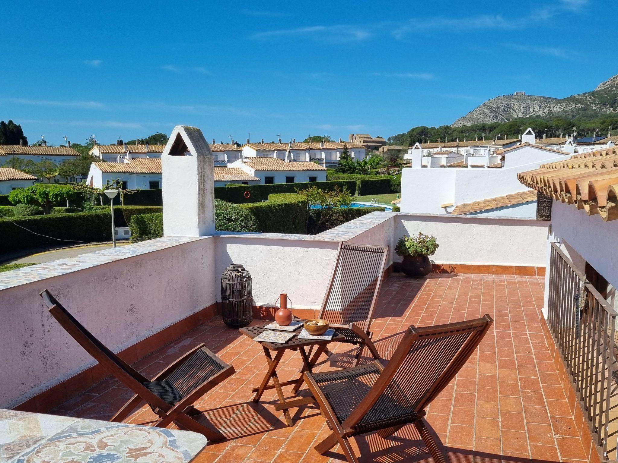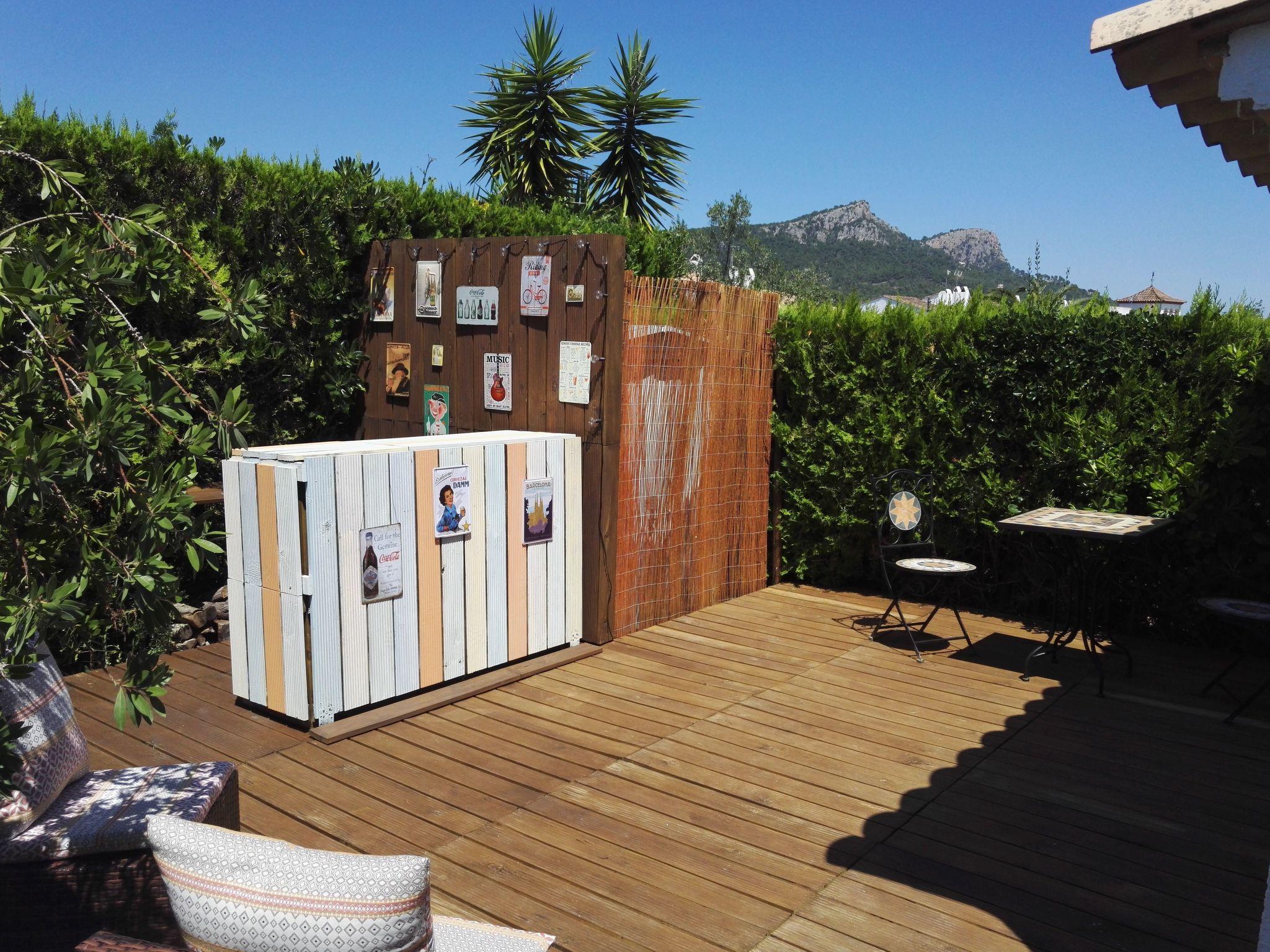 Vom Wohn-/Essbereich gelangt man auf die große wind- und sonnengeschützte Hauptterrasse mit großem Tisch und Sitzgelegenheiten für 6 Personen. Eine weitere, ebenfalls geschützte Terrasse mit vier Sonnenliegen befindet sich hinter dem Haus, ebenso wie unsere schöne Holzterrasse mit Bar und Elektrogrill. Das Highlight des Hauses ist unsere geräumige, in alle Himmelsrichtungen offene Dachterrasse mit weiteren ansprechenden Sitzgelegenheiten und einem wundervollen Blick in das Naturschutzgebiet des Montgri-Gebirges bis zu den Iles Medes. Ebenfalls auf dem Grundstück befinden sich zwei Autostellplätze.