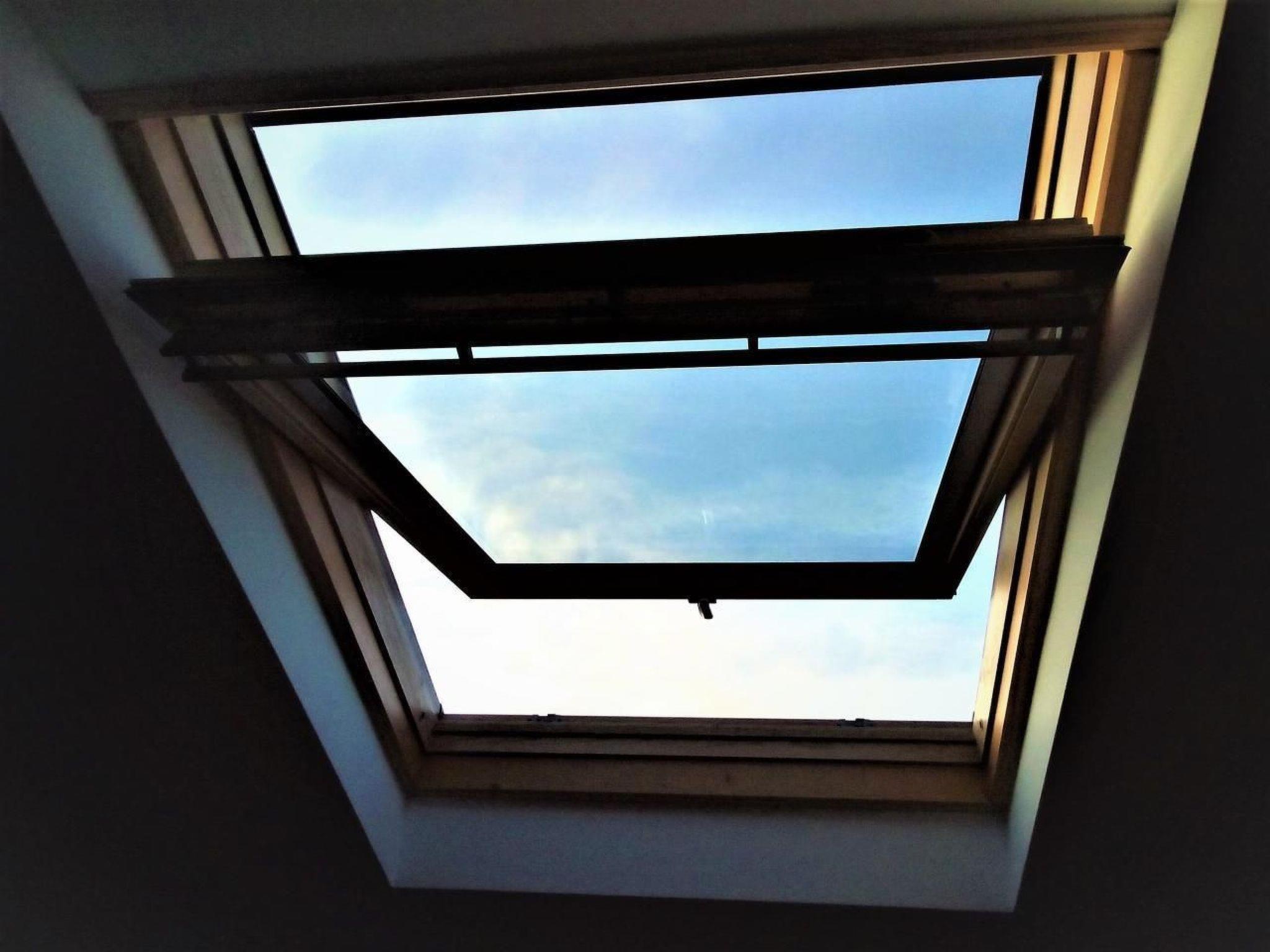 Eine kleine Dachterrasse mit Meerblick (es stehen Klapptisch und -stühle zur Verfügung).