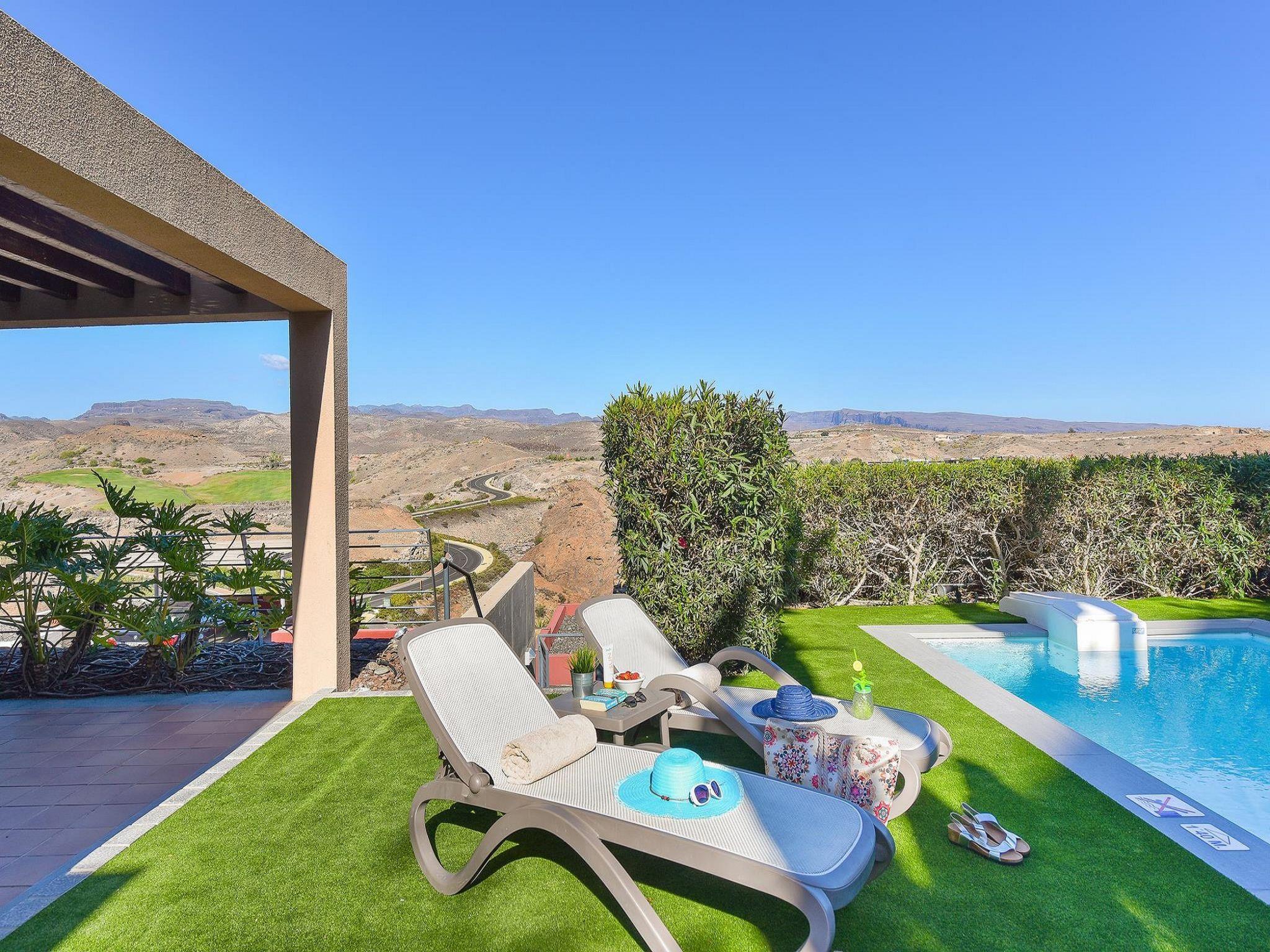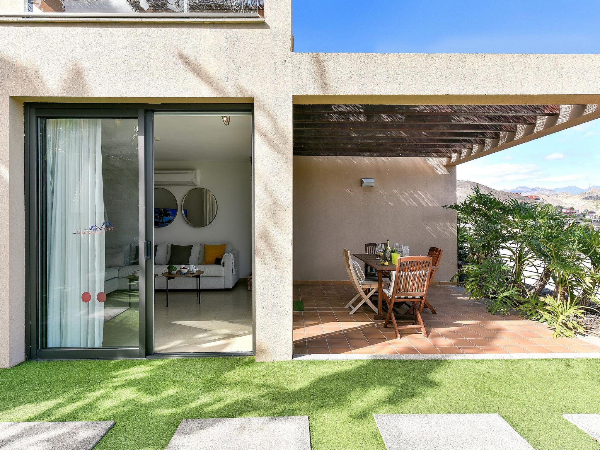 Moderne, schöne Villa "Las Terrazas 13", auf 2 Stockwerken. Im Ortszentrum von Las Terrazas residential complex, im Ort Salobre Golf Resort, im Bezirk Maspalomas 7km, ruhige, sonnige, erhöhte Lage, 3 km vom Strand. Zur Alleinbenutzung: schöner, gepflegter Garten, Schwimmbad (6 x 2 m, 140 - 140 cm tief, saisonale Verfügbarkeit: 01.Jan. - 31.Dez.). Aussendusche, Grill. Im Hause: Wireless LAN, Waschmaschine. Wäschewechsel täglich. Einkaufsgeschäft 800 m, Lebensmittelgeschäft 2.5 km, Einkaufszentrum 100 m, Bushaltestelle "Las Crucitas" 19 km. Golfplatz (18 Loch) 500 m. Nahe gelegene Sehenswürdigkeiten: Camel Park 22 km. Wandergebiete: Cueva De Las Niñas 42 km. Bitte beachten: geeignet für Familien, geeignet für Senioren Babyausstattung auf Anfrage. Der Besitzer akzeptiert keine Jugendgruppen. Die Nachbarschaft ist sehr lärmempfindlich. Ruhe und gutes Benehmen wird erwartet.