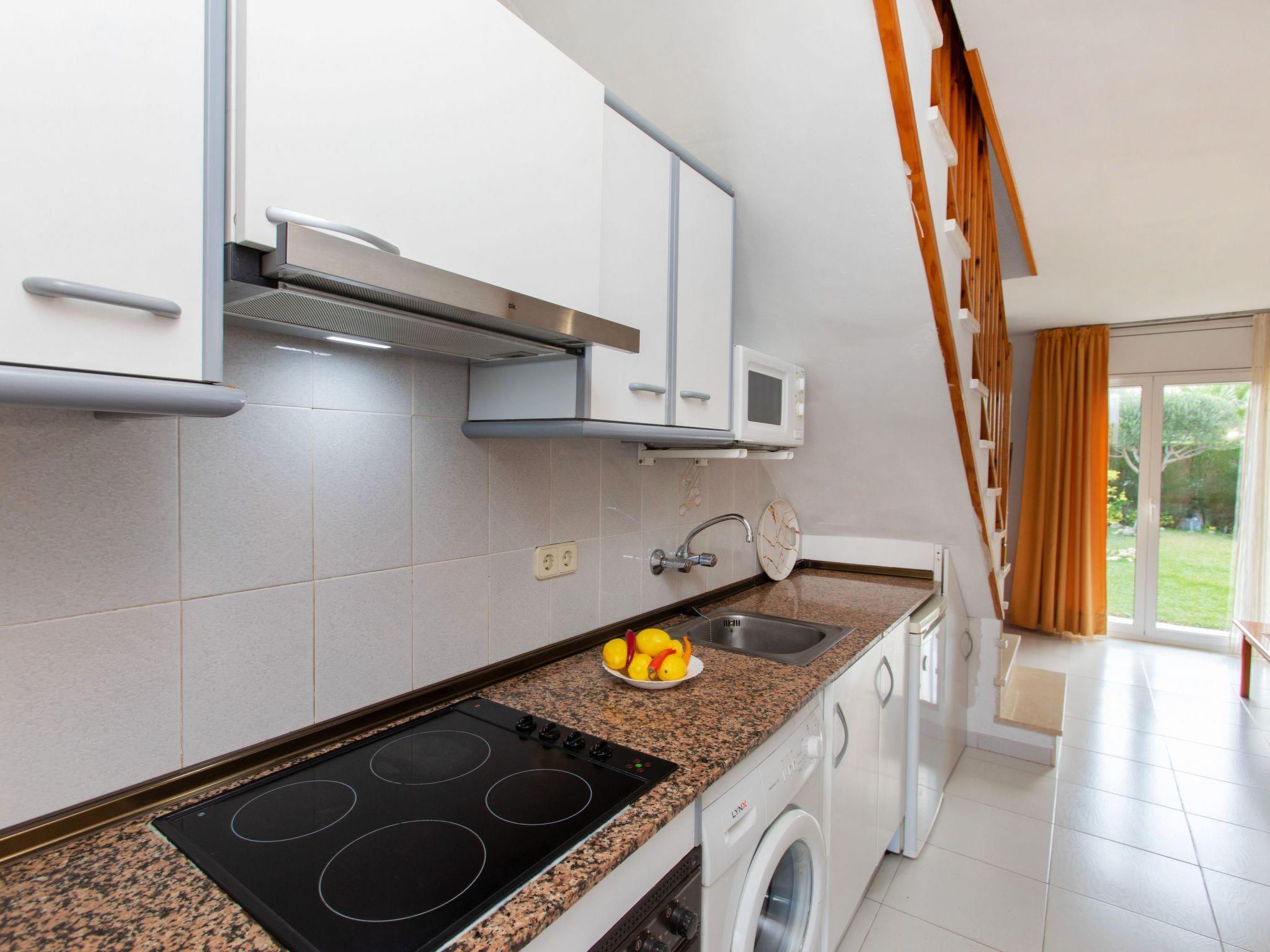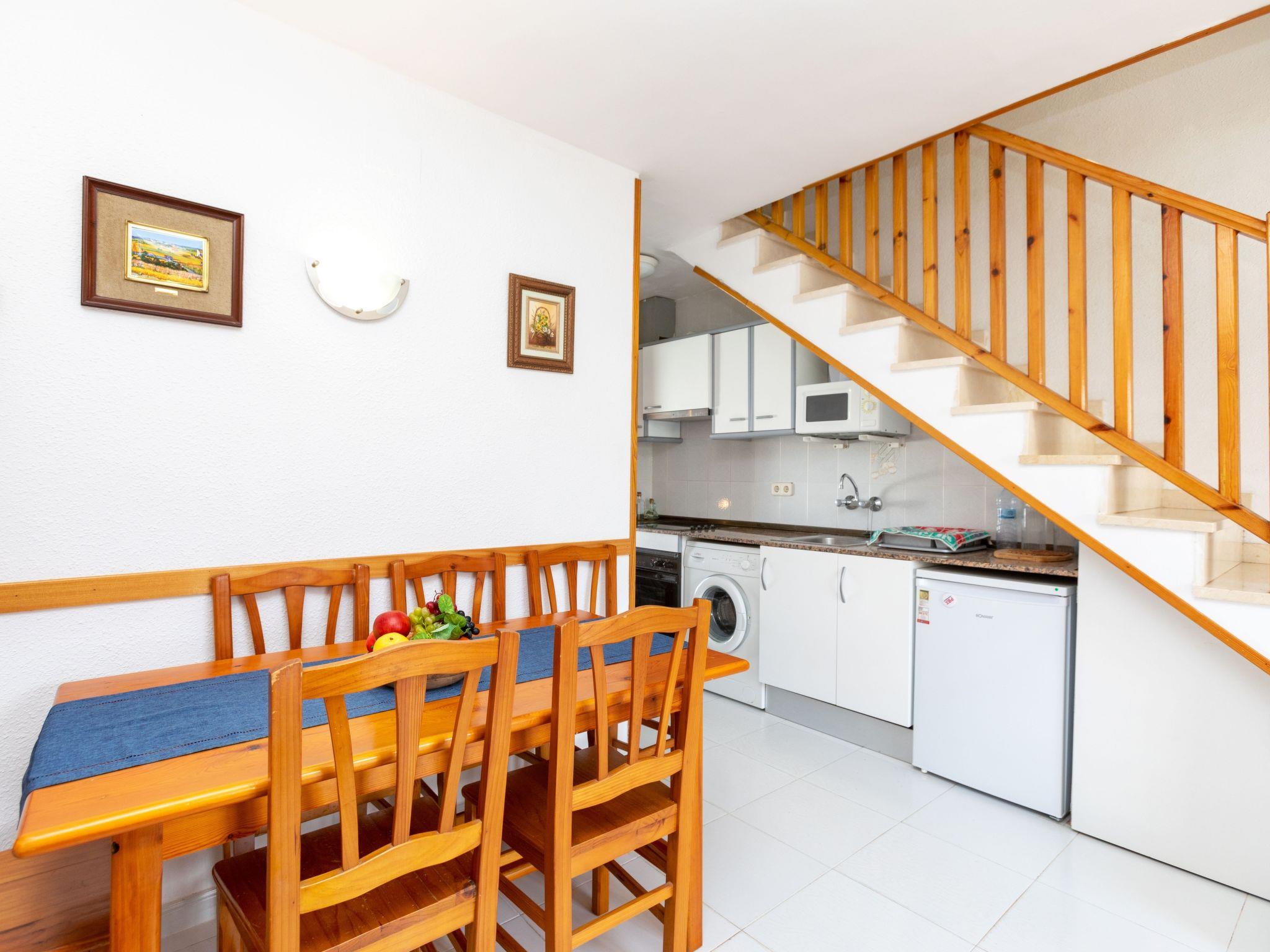 4-Zimmer-Reihenhaus 65 m2 auf 2 Stockwerken. Einfach eingerichtet: Wohn-/Esszimmer 16 m2 mit Esstisch, Sat-TV und Digital-TV. Ausgang zum Garten. 1 Zimmer 12 m2 mit 1 franz. Bett (135 cm), Bad/Bidet/WC und Ventilator. Ausgang zum Gartensitzplatz, zum Schwimmbad. Kochnische (Backofen, Geschirrspüler, 4 Glaskeramikplatten, Toaster, Wasserkocher, Mikrowelle, elektrische Kaffeemaschine). Keine Heizmöglichkeit. Obergeschoss: 1 Zimmer mit 1 Doppeldiwanbett (2 x 80 cm). Ausgang zur Terrasse. 1 Zimmer 10 m2 mit 2 Betten (90 cm), Ventilator. Ausgang zur Terrasse. Dusche/WC. Terrasse 6 m2, Terrasse 10 m2. Terrassenmöbel, Gartengrill. Zur Verfügung: Waschmaschine, Bügeleisen, Haartrockner. Internet (WLAN, gratis). Parkplatz (eingezäunt, 2 Autos), Garage. Bitte beachten: Maximal 1 Haustier/Hund erlaubt. TV nur ES, DE, FR. HUTT010133 // Reg. Nr.: ESFCTU00004303200005219700000000000000000HUTT-0101332