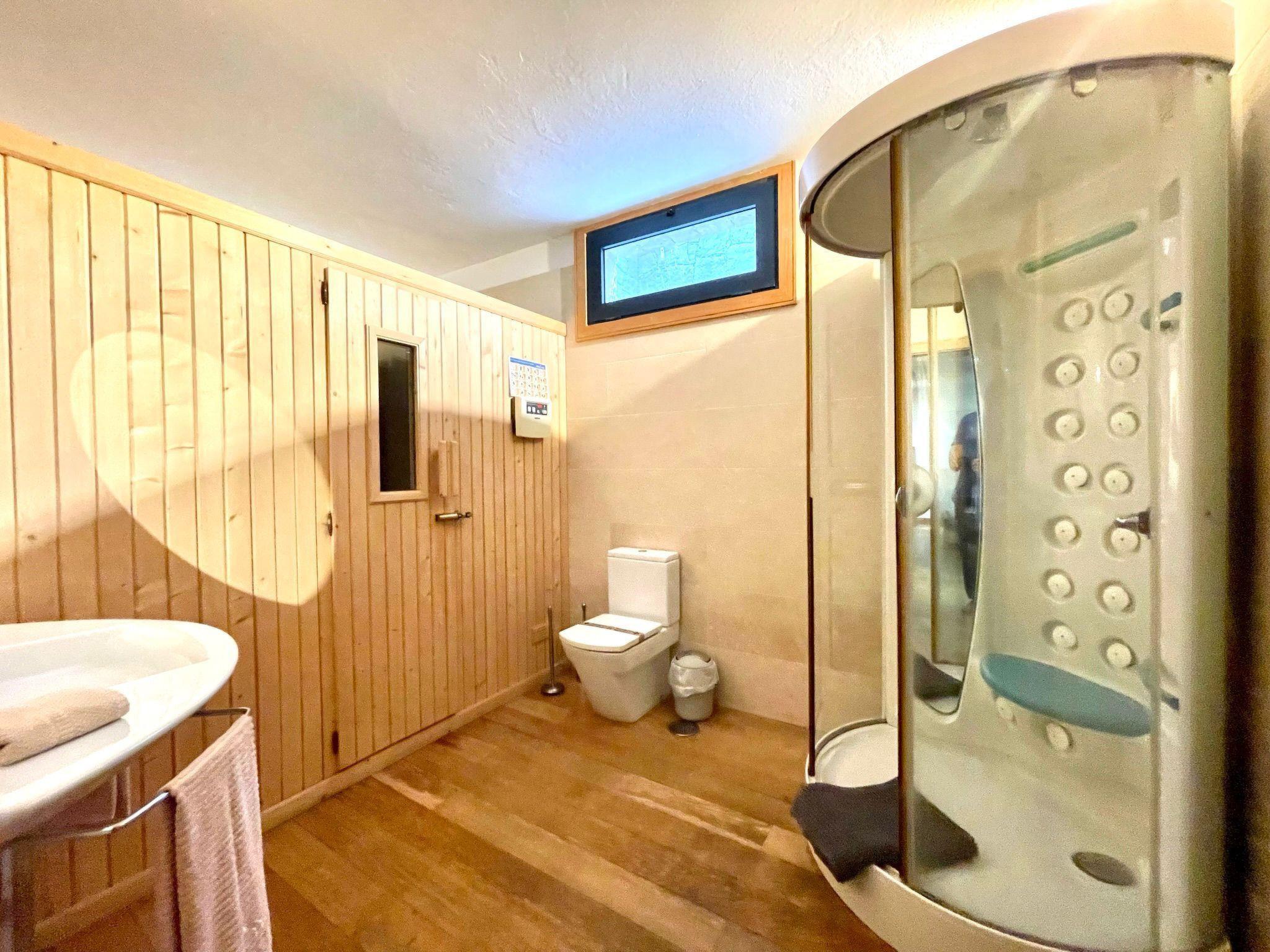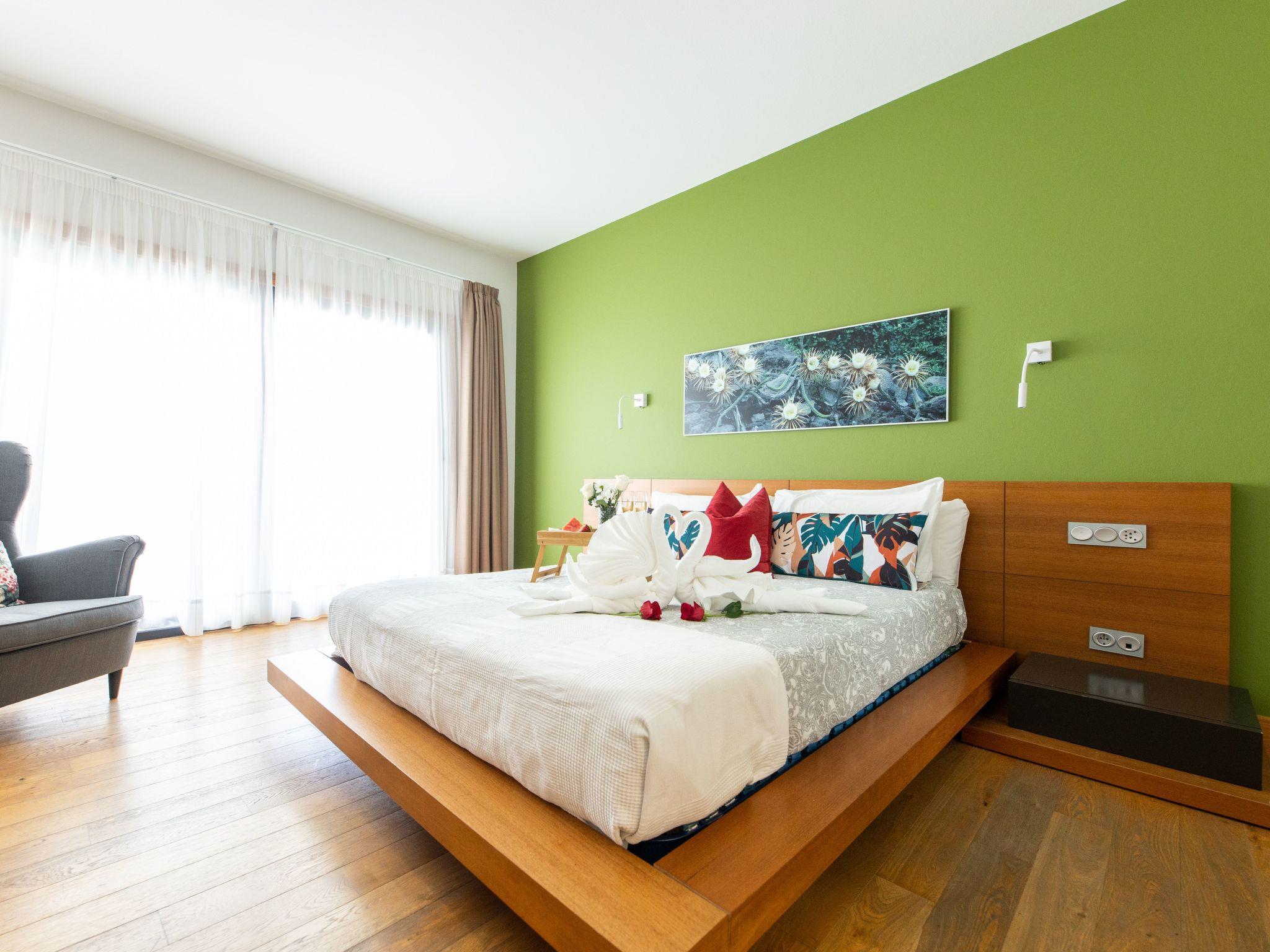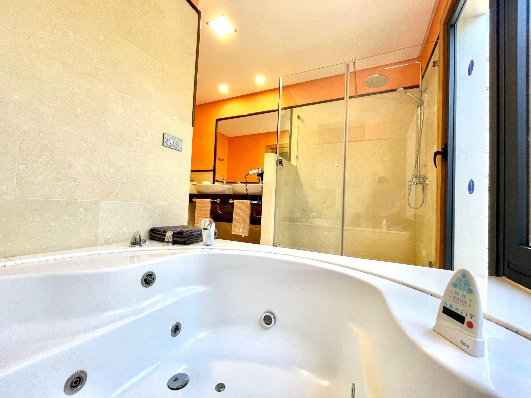 Jede Villa mit ihrem eleganten Design und der hochwertigen Ausstattung bietet drei helle Schlafzimmer; das Hauptschlafzimmer verfügt über ein luxuriöses Bad mit Hydromassage-Dusche, Jacuzzi und direktem Zugang zur Terrasse. Die unabhängige Küche ist komplett ausgestattet mit modernen Geräten und allen notwendigen Utensilien für einen komfortablen Aufenthalt. Der Hauswirtschaftsraum verfügt über eine Waschmaschine, einen Wäschetrockner, einen Wäscheständer, ein Bügeleisen und ein Bügelbrett, so dass Sie sich wie zu Hause fühlen können.