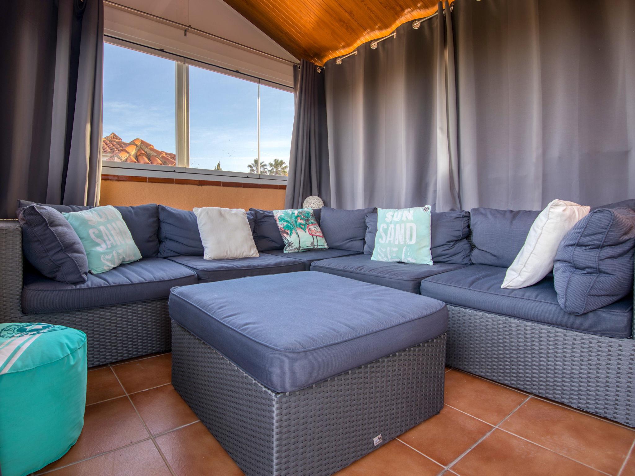"Golf y Playa", 4-Zimmer-Haus 95 m2 auf 2 Stockwerken. Geräumig und hell, schön und gemütlich eingerichtet: Wohn-/Esszimmer mit Digital-TV, Klimaanlage und Warmluftheizung. Ausgang zur Terrasse, zum Schwimmbad. 1 Zimmer mit 1 franz. Bett (135 cm, Länge 190 cm), Klimaanlage und Warmluftheizung. 1 Zimmer mit 2 Betten (90 cm, Länge 180 cm), Klimaanlage und Warmluftheizung. Offene Küche (Backofen, Geschirrspüler, 3 Glaskeramikplatten, Toaster, Wasserkocher, Mikrowelle, Tiefkühler, elektrische Kaffeemaschine). Dusche/WC. Obergeschoss: (Aussentreppe) 1 Zimmer mit 2 Betten (90 cm, Länge 190 cm), Bad/WC, Klimaanlage und Warmluftheizung. Ausgang zur Terrasse. Wohnzimmer. Grosse Terrasse. Terrassenmöbel, Gartengrill, Liegestühle. Sicht auf das Schwimmbad und den Golfplatz. Zur Verfügung: Waschmaschine, Bügeleisen, Kinderhochstuhl, Babybett bis 2 Jahre, Haartrockner. Internet (WLAN, gratis). Parkplatz. Bitte beachten: Nichtraucher-Haus. Maximal 1 Haustier/Hund erlaubt. Keine interne Verbindung zwischen den Etagen. VT-59088-V // Reg. Nr.: ESFCTU00004604400045554700000000000000CV-VUT0059088V5
