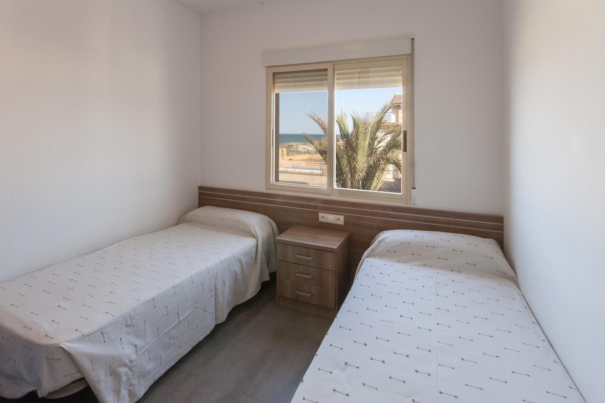 Die gemeinschaftlich genutzte Aussenanlage umfasst 250 m2, ideal für die Kinder zum spielen. Abkühlung finden Sie auch im 8 x 3,5 Meter großen und 1,2 bis 1,9 Meter tiefen Chlorbecken, das Sie mit dem Nachbarn im Erdgeschoss teilen. Sie haben Zugang zu einem mobilen Gemeinschaftsgrill. Warum nicht einen schönes Barbecue mit der ganzen Familie geniessen? Ebenso können Sie Ihren PKW auf einem der 3 Gemeinschaftsstellplätze parken. Vom Wohnzimmer aus haben Sie einen herrlichen Panoramablick. Das Wohnzimmer, das Esszimmer und die Küche befinden sich in einem einzigen Raum mit Klimaanlage. Im Wohnzimmer können Sie sich beim Satellitenfernsehen entspannen, die Aussicht bewundern oder ein gutes Buch lesen. Im Essbereich steht Ihnen ein großer Tisch zur Verfügung, um gemeinsame Mahlzeiten mit der Familie zu genießen. Die moderne Küche bietet alles, was Sie zur Zubereitung beliebiger Gerichte benötigen, einschließlich eines Glaskeramikkochfelds. In der Wohnung stehen Ihnen eine Waschmaschine, ein Bügeleisen und ein Bügelbrett zur Verfügung. Es gibt insgesamt 4 Schlafzimmer, zwei davon mit jeweils zwei Einzelbetten und die beiden anderen mit jeweils einem Doppelbett. Alle Zimmer verfügen über einen Kleiderschrank und eine Klimaanlage. Bei Bedarf können wir Ihnen ein Kinderbett für die Kleinsten im Haus bereitstellen. Zwei komplette Badezimmer mit Dusche stehen dem Haus zur Verfügung. Für die kälteren Tage stehen Ihnen 5 Heizkörper zur Verfügung. In der Gegend erwarten Sie wunderschöne, feine Sandstrände, wo Sie auch unterschiedliche Wassersportarten ausüben können. Ausserdem erreichen Sie in ca. 3 Minuten Fussweg die Reitschule von Oliva Nova, welche private Reitstunden anbietet. Manchmal finden dort auch Staatsmeisterschaften statt. In der Nähe befindet sich ebenso der Golfplatz mit 18 Loch-Par 72, wo Sie Ihren Abschlag üben können. Naturliebhaber können im nahegelegenen Naturpark“ Parque Natural del Montgó” wandern oder die Heilquelle “Font Salada“ besuchen. Die Quellen sind eine Wohltat für die Haut. Hinweis: Diese Unterkunft richtet sich an Familien und Gäste über 25 Jahre, die einen ruhigen Aufenthalt suchen. Buchungen für Partys oder Feiern werden nicht akzeptiert. Eine Kopie des Ausweisdokuments aller Gäste ist erforderlich, um die Reservierung zu bestätigen. Eventuelle Nebenkosten müssen beim Anbieter nachgefragt werden. Haustiere bis 50.00 kg sind willkommen. Partys oder ähnliche Veranstaltungen sind nicht gestattet. Es gibt Freiluftparkplätze für 3 Autos. Bitte beachten Sie, dass die Öffnungs- und Schließzeiten des Gemeinschaftspools den jeweiligen Hausordnungen unterliegen und je nach Saison ohne vorherige Ankündigung variieren können. Aktuelle Informationen erhalten Sie bei Ihrer Ankunft. Entfernungen Strand: 0 km - OLIVA Flughafen: 95 km - VALÈNCIA Golfplatz: 2 km - OLIVA NOVA Ortsmitte: 8 km - OLIVA Bahnhof: 17 km - GANDIA Bushaltestelle: 8.5 km - OLIVA Fähre: 20 km - DÉNIA Krankenhaus: 16 km - GANDIA Touristen Lizenz: CV-VUT0041810-VEinheitsregister: ESFCTU000046044000724162000000000000000000000041810V6Die Kaution ist bei Ankuuft direkt an den Eigentümer zu übergeben. Stromverbrauch (Jan - Dezember): 0.25 EUR/Kw (obligatorisch)