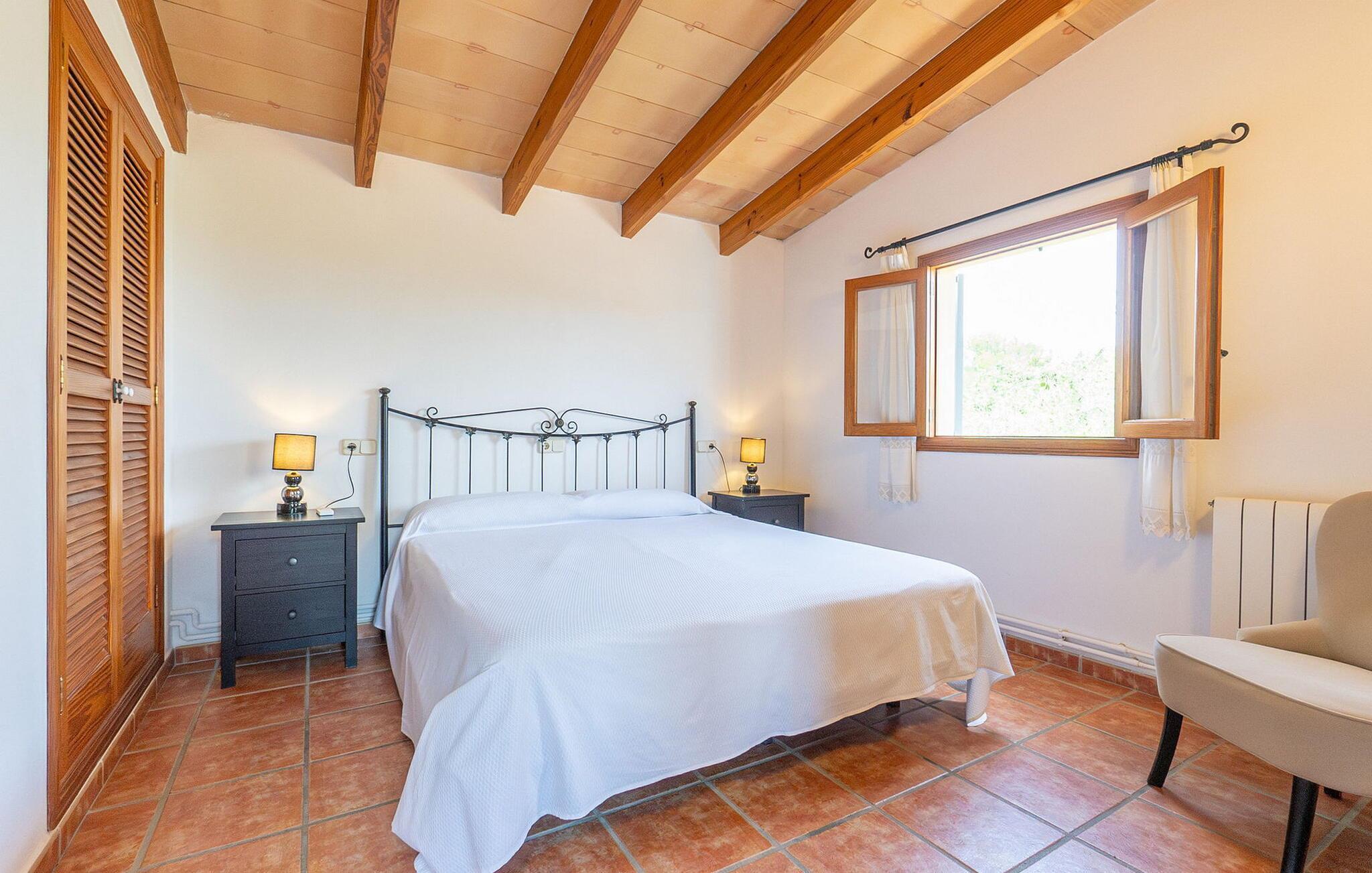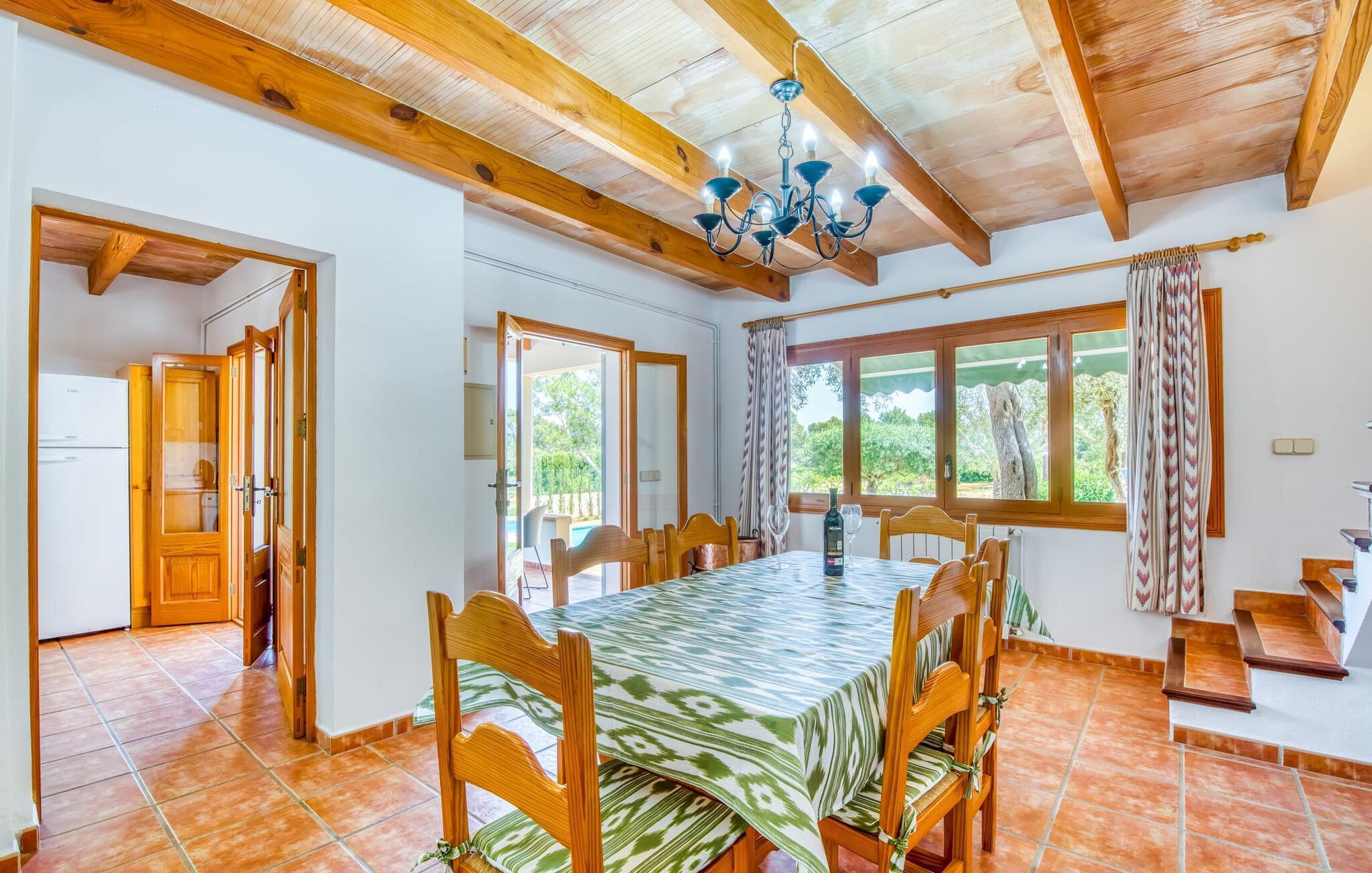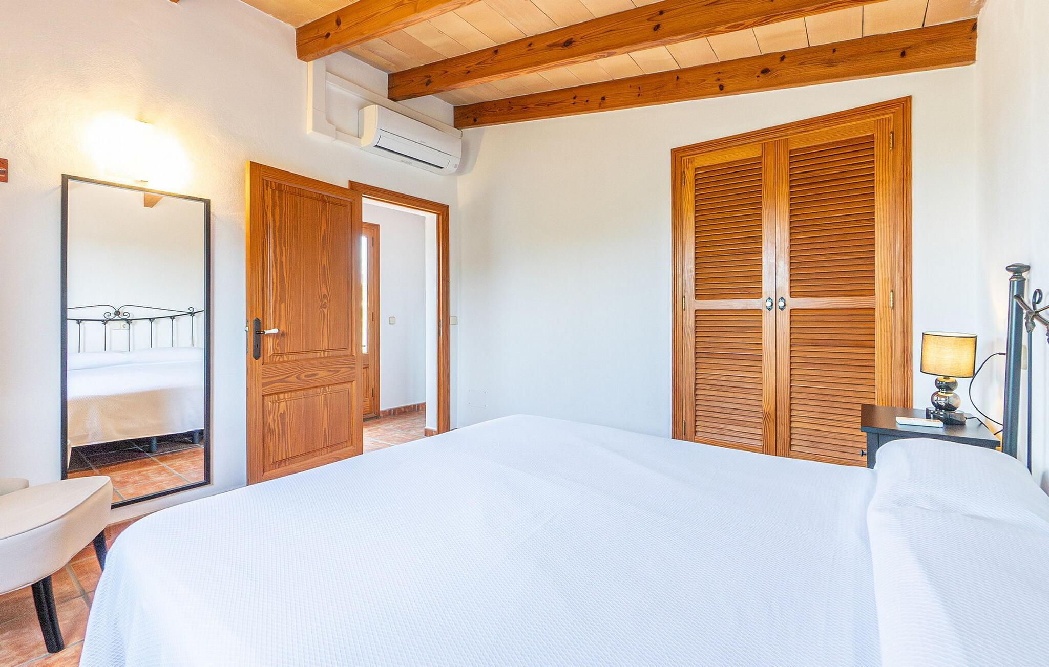 Von der Terrasse aus gelangt man direkt in die Küche und das Wohn-Esszimmer, so dass der Übergang zwischen Innen- und Außenbereichen erleichtert wird. Die voll ausgestattete Küche eignet sich perfekt zur Selbstverpflegung und vom Essbereich aus genießen Sie Gartenblick. Eine Sofalandschaft unter einem weißen Backsteinbogen eignet sich ideal zum Lesen oder Fernsehen. Im Erdgeschoss befinden sich ein Schlafzimmer mit Doppelbett und ein Duschbad. Im Obergeschoss teilen sich zwei weitere schöne Schlafzimmer ein Badezimmer. Diese Finca ist perfekt für Strand- und Gartenliebhaber, die einen ruhigen Rückzugsort mit Familie oder Freunden suchen.