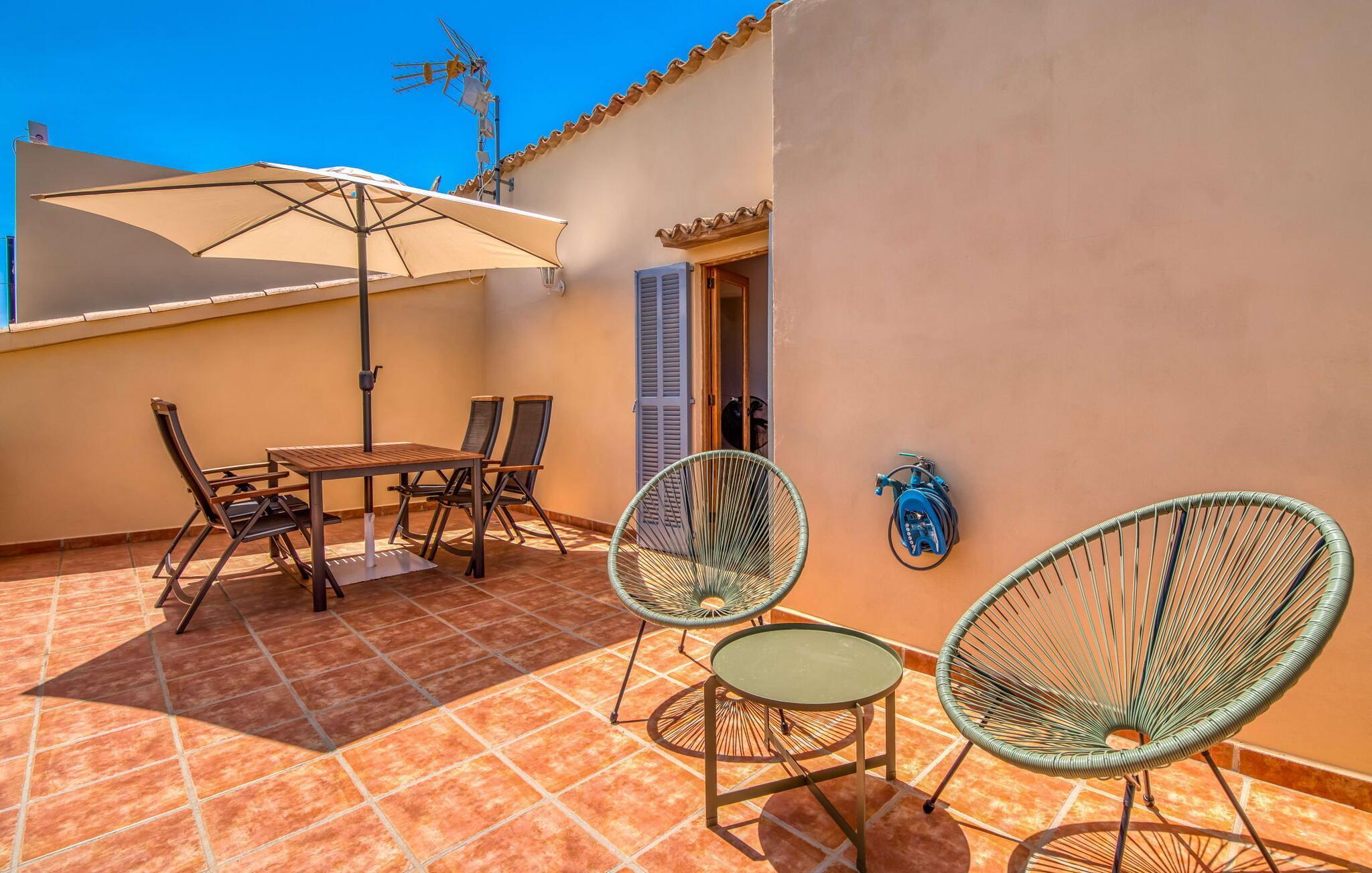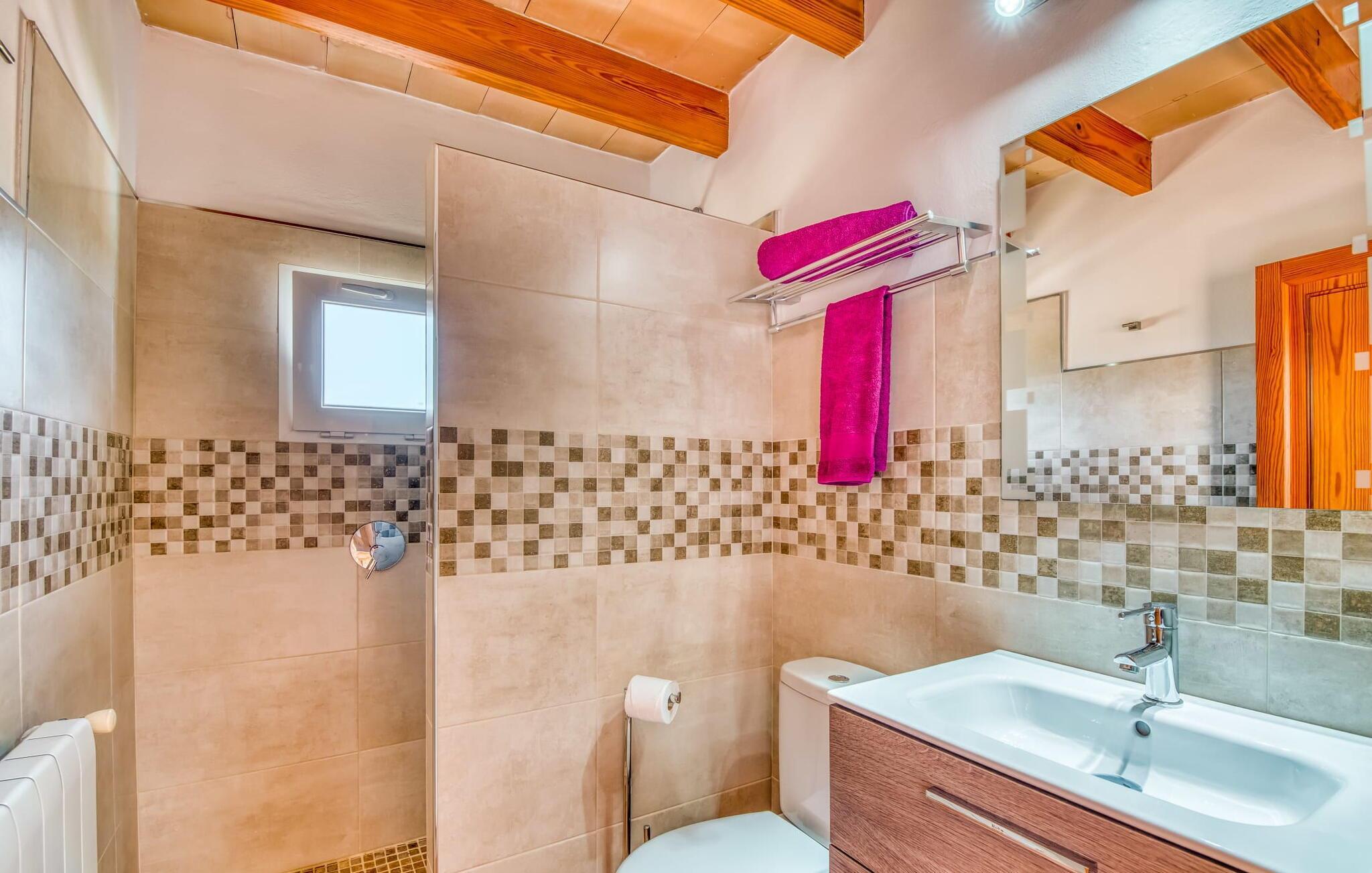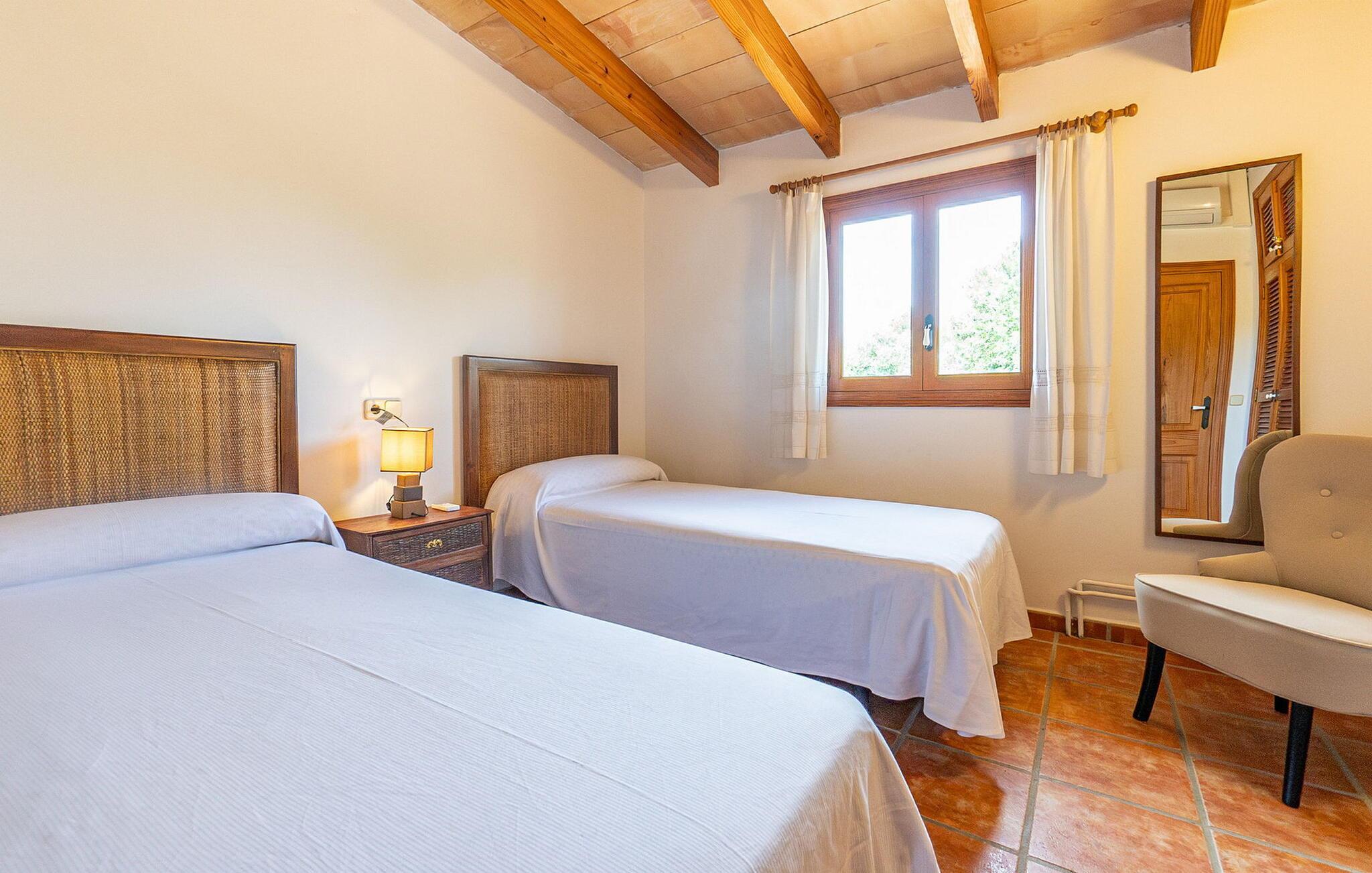 Von der Terrasse aus gelangt man direkt in die Küche und das Wohn-Esszimmer, so dass der Übergang zwischen Innen- und Außenbereichen erleichtert wird. Die voll ausgestattete Küche eignet sich perfekt zur Selbstverpflegung und vom Essbereich aus genießen Sie Gartenblick. Eine Sofalandschaft unter einem weißen Backsteinbogen eignet sich ideal zum Lesen oder Fernsehen. Im Erdgeschoss befinden sich ein Schlafzimmer mit Doppelbett und ein Duschbad. Im Obergeschoss teilen sich zwei weitere schöne Schlafzimmer ein Badezimmer. Diese Finca ist perfekt für Strand- und Gartenliebhaber, die einen ruhigen Rückzugsort mit Familie oder Freunden suchen.