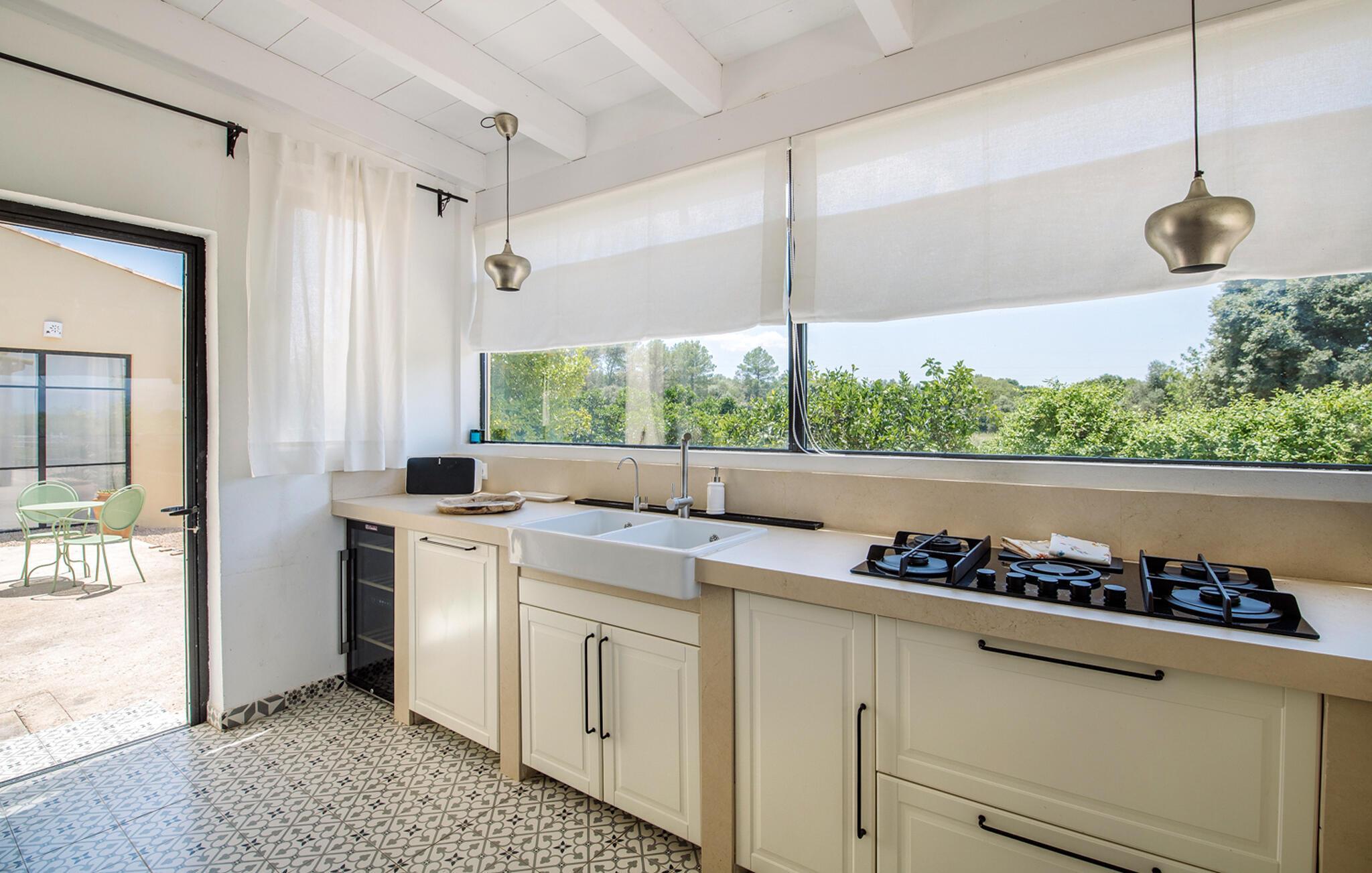 Ein Finca-Traum, der direkt einem Hochglanz-Designmagazin entsprungen zu sein scheint: „Only Summer“ macht seinem sommerlichen Namen alle Ehre. Das ursprünglich traditionell gebaute Haus wurde aufwendig und stilvoll renoviert und erstrahlt nun in jeder Hinsicht in neuem Glanz: Weiß getünchte Wände bilden einen schönen Kontrast zu den großen schwarzen Fensterrahmen, die überall das einzigartige mediterrane Licht hereinlassen. Die hölzerne Pergola rund um das Haus spendet nicht nur Schatten, sondern harmoniert auch perfekt mit den hübschen rustikalen Dachziegeln. Das riesige Grundstück bietet alles, was das Urlauberherz begehrt – und noch ein bisschen mehr. Denn wo sonst findet man neben einer fantastisch ausgestatteten Außenküche, stilvollen Sitzgelegenheiten inmitten eines liebevoll angelegten Gartens mit duftenden Kräutern und einem Pool auch einen eigenen Obstgarten? Diese von Palmen und Olivenbäumen umgebene Finca werden Sie während Ihres Urlaubs so gut wie nie verlassen müssen – denn mehr Komfort, gepaart mit einer absolut geschmackvollen und charmanten Atmosphäre zum Wohlfühlen und Beschäftigungsmöglichkeiten geht wirklich nicht! Die Gastgeber stehen Ihnen rund um die Uhr zur Verfügung und sind bei Bedarf schnell vor Ort.