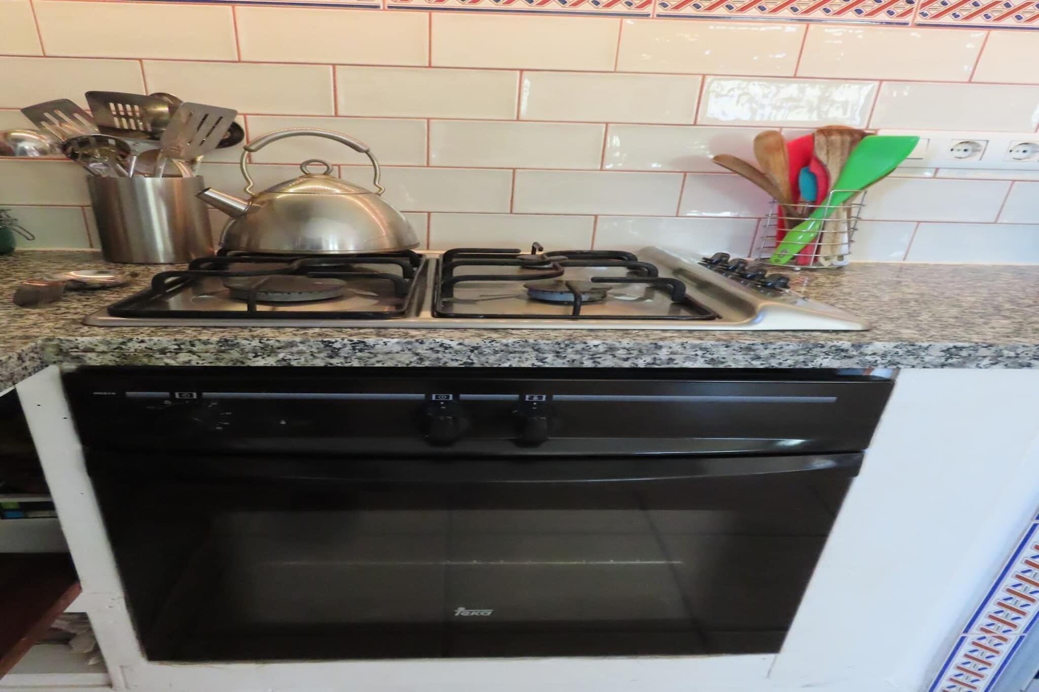 Parterre: (Küche(Kochplatte, Wasserkocher, Toaster, Kaffeemaschine, Backofen), Wohn/Esszimmer(Esstisch, Sitzecke), Schlafzimmer(14 m2)(Doppelbett), Schlafzimmer(14 m2)(Schlafcouch 1 Pers., Doppelbett oder 2 Einzelbetten), Badezimmer(Dusche, Waschbecken, Toilette), Klimaanlage) Esstisch, Liegen, Grill, Pool(alleinige Nutzung)