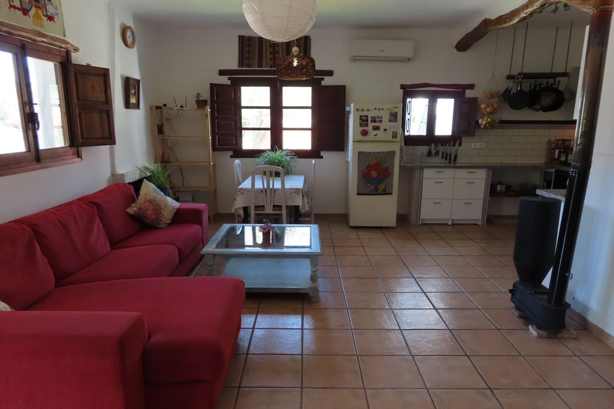 Dieses Ferienhaus ist ein einzigartiges Anwesen mit atemberaubender Aussicht auf die Berge der Sierra Lujar. Es befindet sich in einer unglaublich privaten und ruhigen Lage und ist dennoch nur fünf Autominuten oder zehn Gehminuten vom Herzen von Orgiva entfernt. Es liegt am Ende einer ruhigen Sackgasse, umgeben von Olivenhainen und ist der perfekte Rückzugsort nach einem Tag voller Erkundungen der Alpujarras, der Berge der Sierra Nevada und der wunderschönen Mittelmeerküste. Dank der günstigen Lage, nur 35 Minuten vom Strand und 50 Minuten von Granada entfernt, können Sie die berühmten weißen Dörfer wie Pampaneira und Capileira erkunden oder die historische Alhambra besuchen. Supermärkte und lokale Restaurants sind nur fünf Minuten entfernt, was El Ensueno zu einem außergewöhnlichen Ausgangspunkt für Ihr Abenteuer in den Alpujarras macht! Dieses charmante Haus verfügt über zwei Schlafzimmer (das zweite kann entweder als ein großes Bett oder als zwei Einzelbetten konfiguriert werden), ein Badezimmer und ein offenes Wohnzimmer mit einer voll ausgestatteten Küche, ideal für alle Ihre kulinarischen Bedürfnisse. Treten Sie hinaus auf eine geräumige Steinterrasse mit Ess- und Loungebereichen direkt neben dem einladenden Swimmingpool, wo Sie im Schatten entspannen oder Sonne tanken und dabei die atemberaubende Landschaft genießen können. Die nach Südwesten ausgerichtete Terrasse ist perfekt, um spektakuläre Sonnenuntergänge über den umliegenden Oliven- und Orangenhainen zu genießen, und der ruhige Garten ist ein idealer Ort, um nachts die Sterne zu beobachten. Bitte beachten Sie, dass der Pool 1,5–2 Meter tief und ohne Zaun ist. Aus Sicherheitsgründen für die Kinder ist daher eine Aufsicht durch Erwachsene erforderlich. Ein angeschlossenes Studio-Apartment kann gelegentlich von den Eigentümern bewohnt werden, aber der Pool und die Außenbereiche bleiben ausschließlich den Gästen vorbehalten.