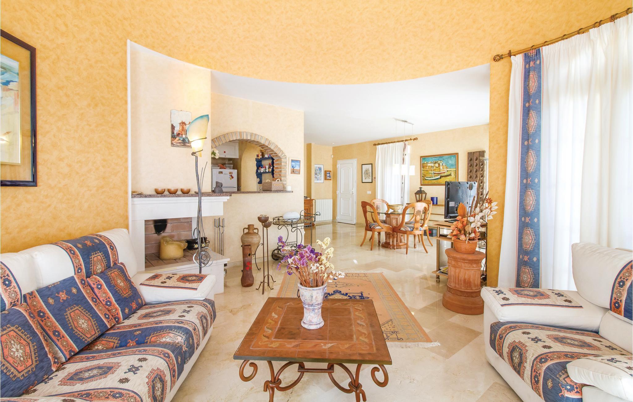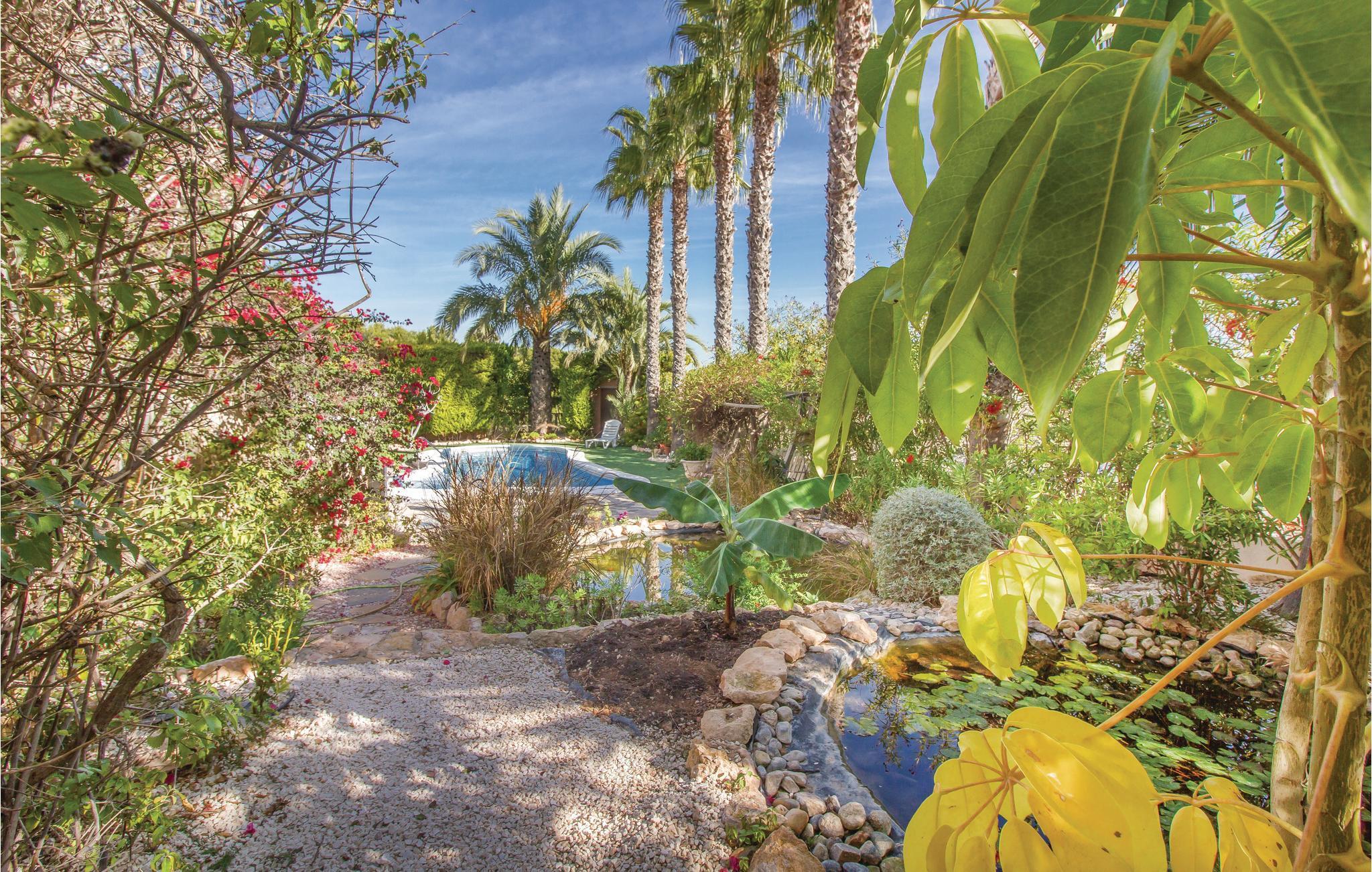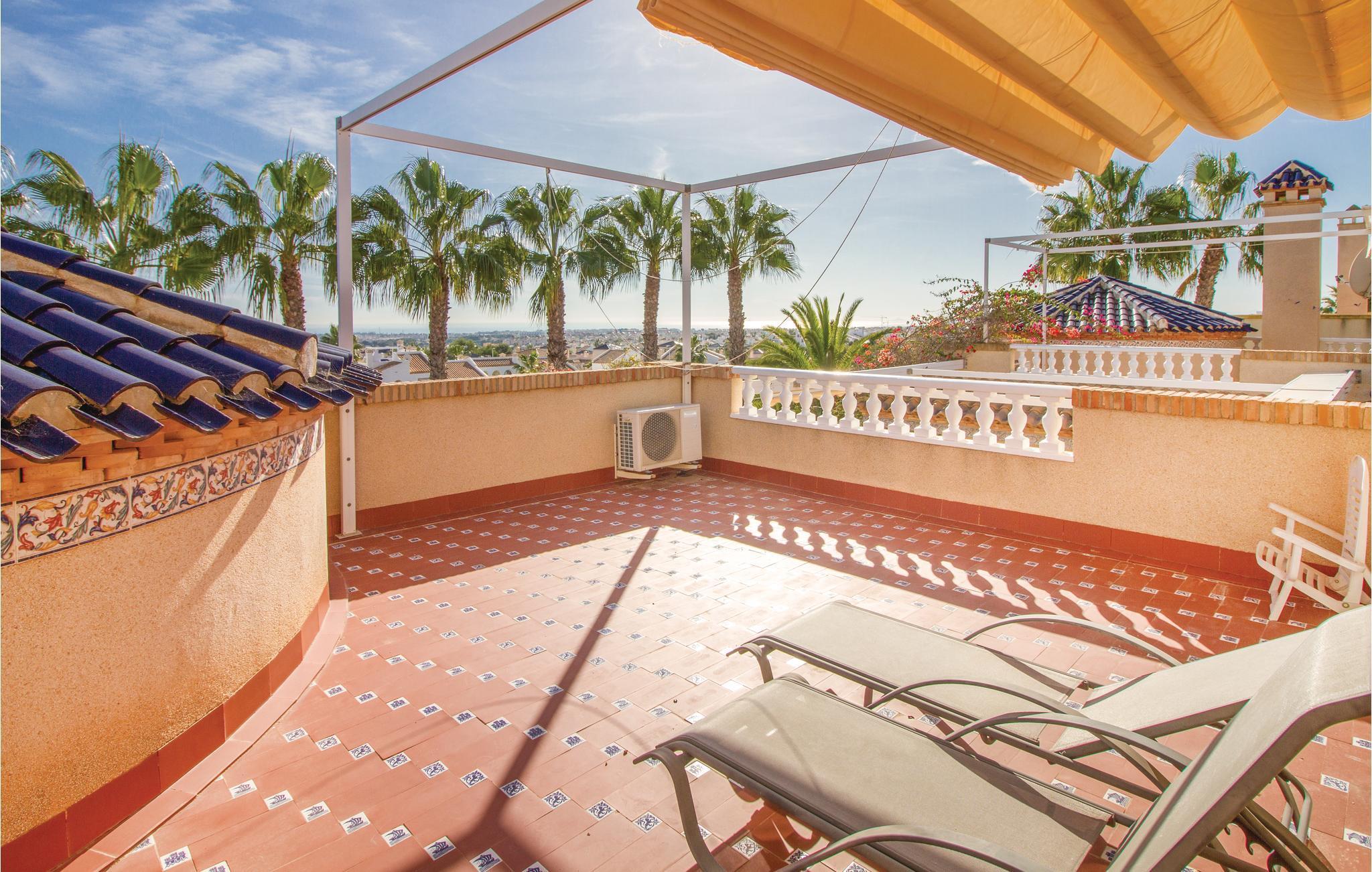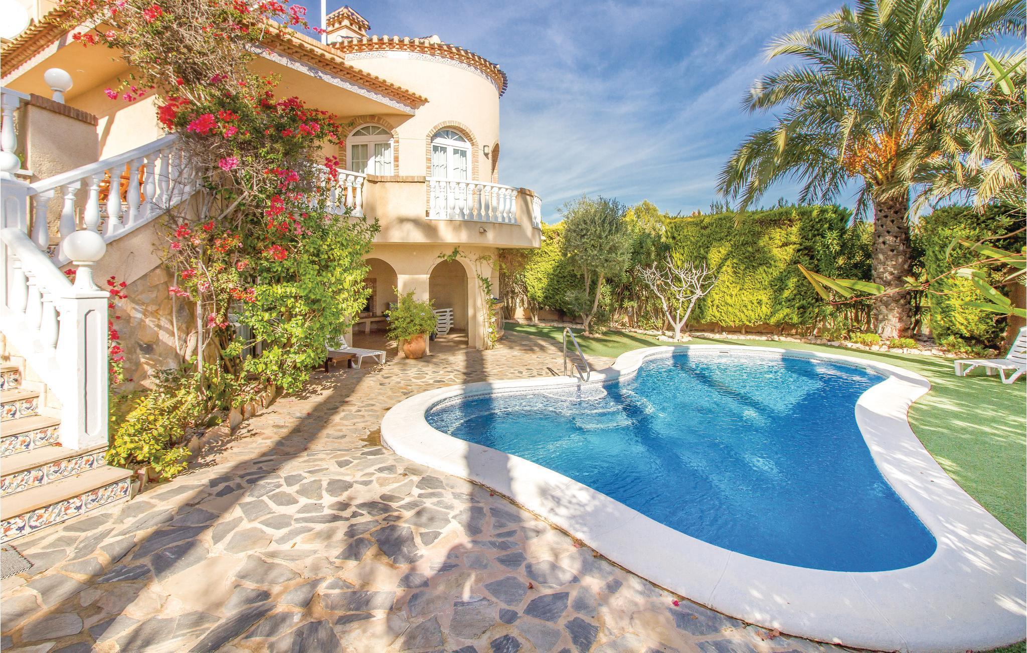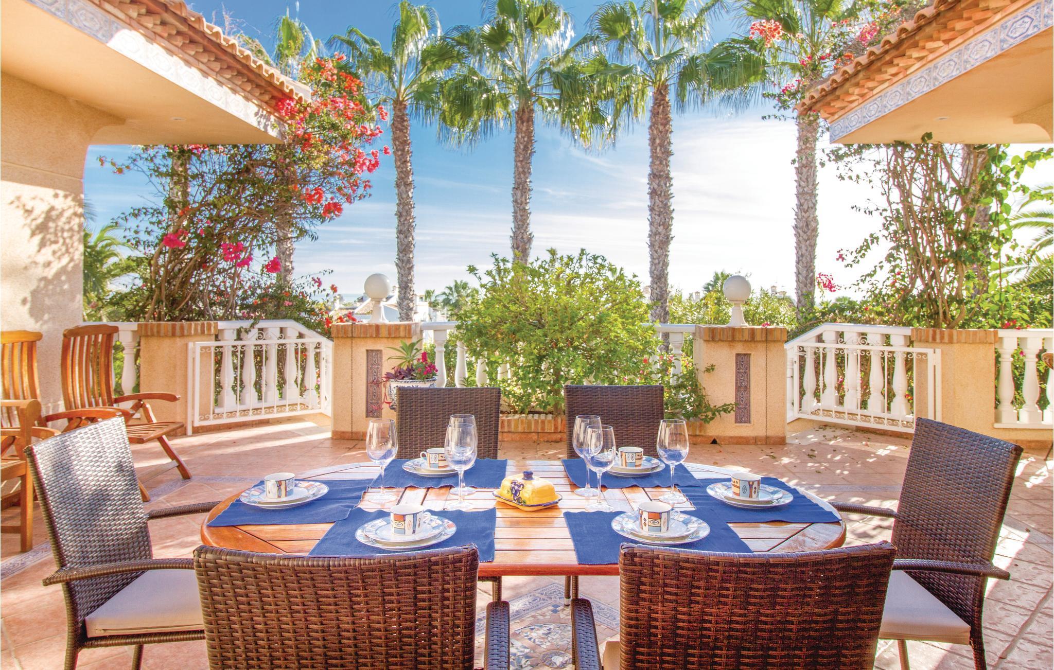 Hier erwartet Sie schon am Eingangsbereich ein wunderschöner Panoramablick auf das Meer. Dieses Ferienhaus besteht aus zwei Häusern die miteinander verbunden sind. Mit über 100 m2 großen Terrassen auf 3 Ebenen (teils mit Markisen), Salzwasserpool mit integriertem Jacuzzi, gepflegtem Garten und Teichen, Garten-Bar mit schattenspendender Rotunde am Pool und zugehörigem Saunabereich, Dusche und WC. In diesem Haus gibt es alles doppelt: 4 Badezimmer, 2 Küchen und 2 Wohnzimmer, die durch eine große Wohnhalle verbunden sind. Parkmöglichkeit auf dem Grundstück. Der Golfplatz Villamartin liegt am Straßenanfang und 3 weitere in unmittelbarer Nähe. Alle Einkaufsmöglichkeiten, Bars und Restaurants befindet sich in der Nähe. Erleben Sie dieses einmalige Haus in ruhiger und doch zentraler Lage! Ausflugsmöglichkeiten: Mar Menor und La Manga, Cartagena sowie die Universitätsstadt Murcia und Palmenstadt Elche. Dieses Haus ist auch für exklusive GOLF-Kleingruppen sehr geeignet. Der benachbarte Golf-Spezialist Albatross Tours (info@albatrossgolftours.com) bucht für die Gäste des Hauses gerne Tee Times und verschafft Green Fees zu Spezialpreisen auf 26 Golf-Plätzen in der näheren Umgebung.