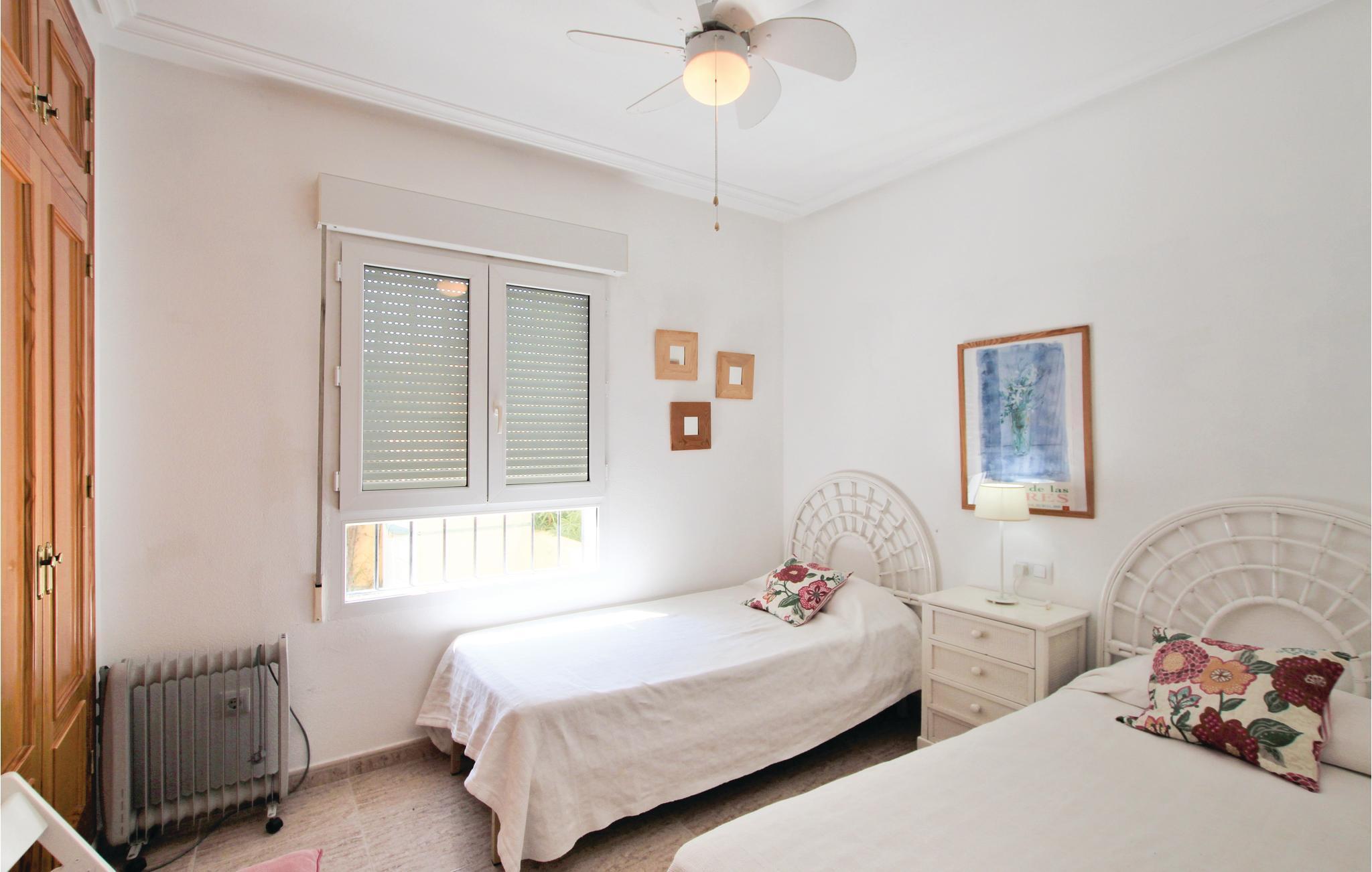 Diese helle Ferienwohnung bietet eine schöne Terrasse mit gemütlichen Sitzmöbeln und Zugang zum Gemeinschaftspool. Die Wohnung befindet sich im Erdgeschoss eines hübschen Reihenhauses in einer privaten Urbanisation in Orihuela Costa. Von hier aus erreichen Sie in nur 250 m den herrlichen Sandstrand „Cala Capitán“. Die Wohnung verteilt sich auf 72 m² und verfügt über 3 Schlafzimmer für 6 Erwachsene und 1 Kind. Auch Ihr Haustier ist hier herzlich Willkommen! Im gemeinschaftlichen Gartenbereich können Sie in Ruhe ein Buch lesen, die Sonne genießen oder an lauen Sommerabenden mit der Familie grillen.