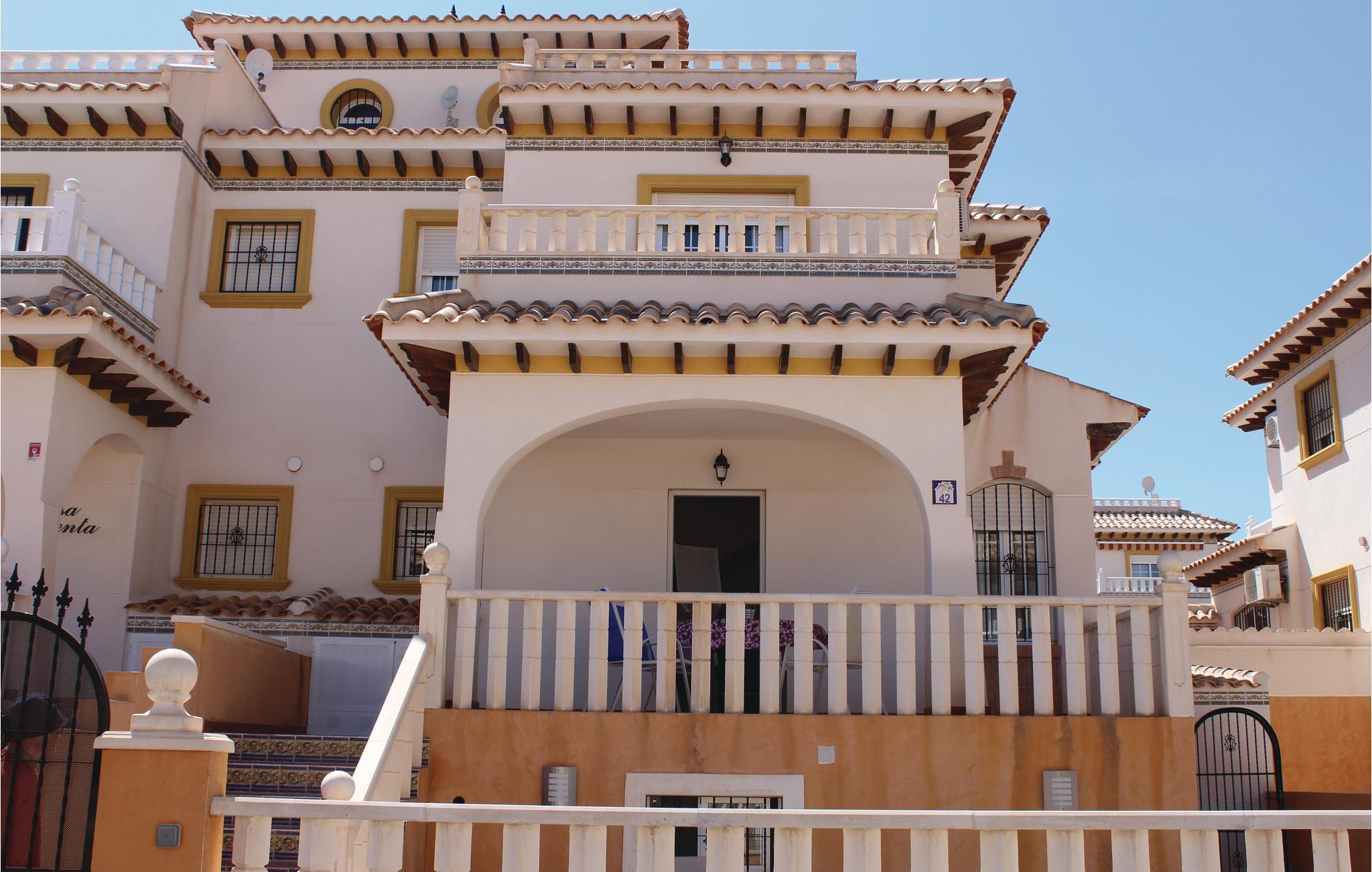 Dieses großzügig geschnittene Ferienhaus befindet sich auf einem Hügel in der Umgebung von "Lomas de Cabo Roig". Die obere Terrasse bietet Sicht auf das Meer. Mit eigenem Gartenanteil und Stellplatz. In ruhiger Wohngegend gelegen und in fußläufiger Nähe zu allen Annehmlichkeiten. Ausflugsmöglichkeiten nach Cartagena, Murcia, Torrevieja oder Elche liegen in einem Radius von ca. 30 km. Auch Golfspieler können zwischen 3 verschiedenen Golfplätzen wählen. Mit gem. Poolbereich - ideal für Familien mit Kindern.