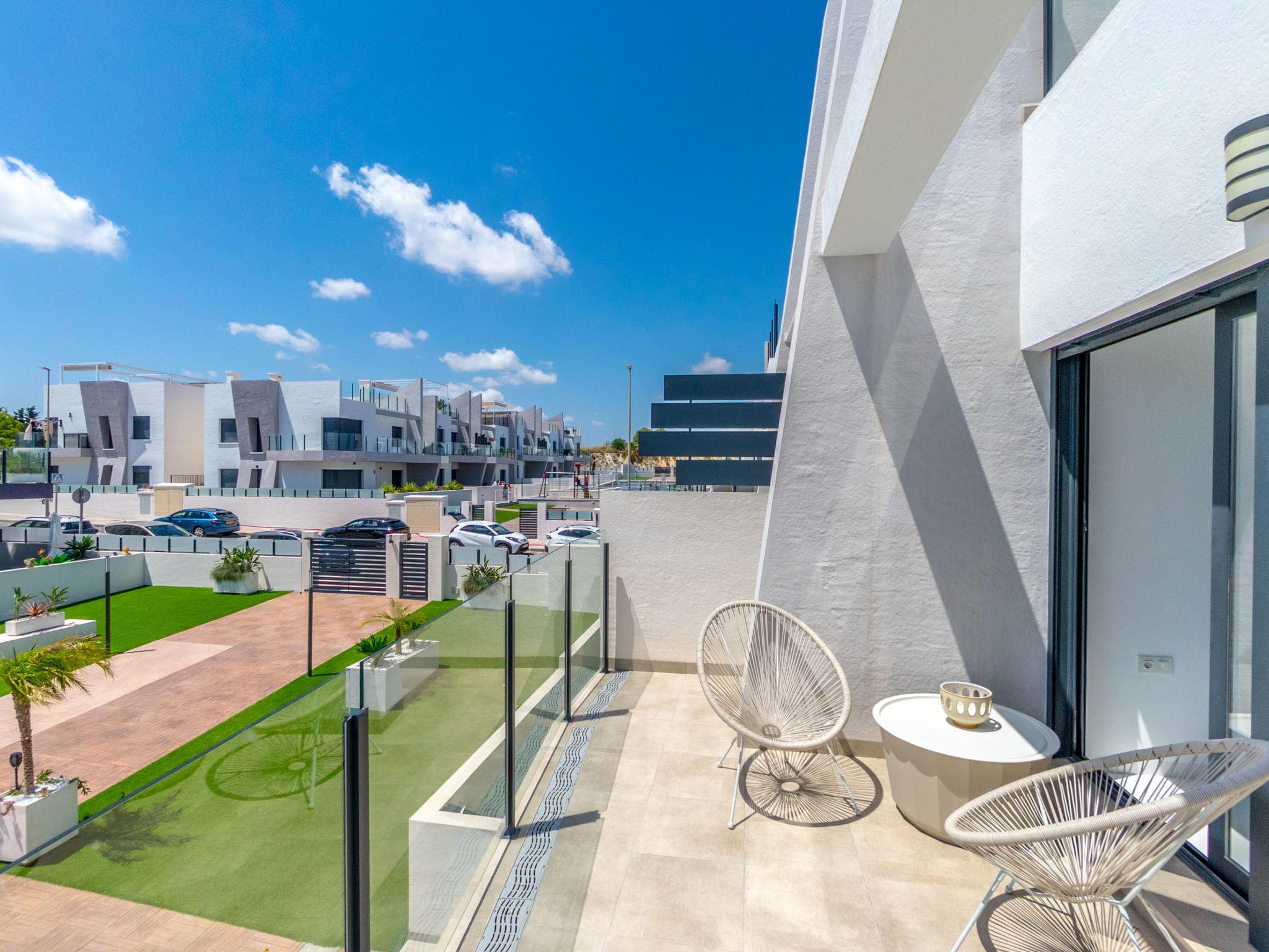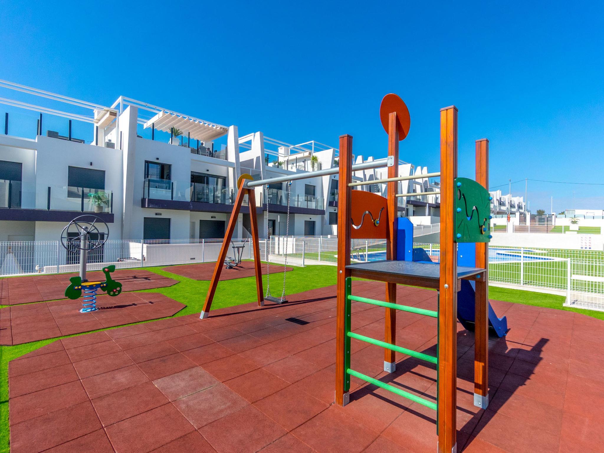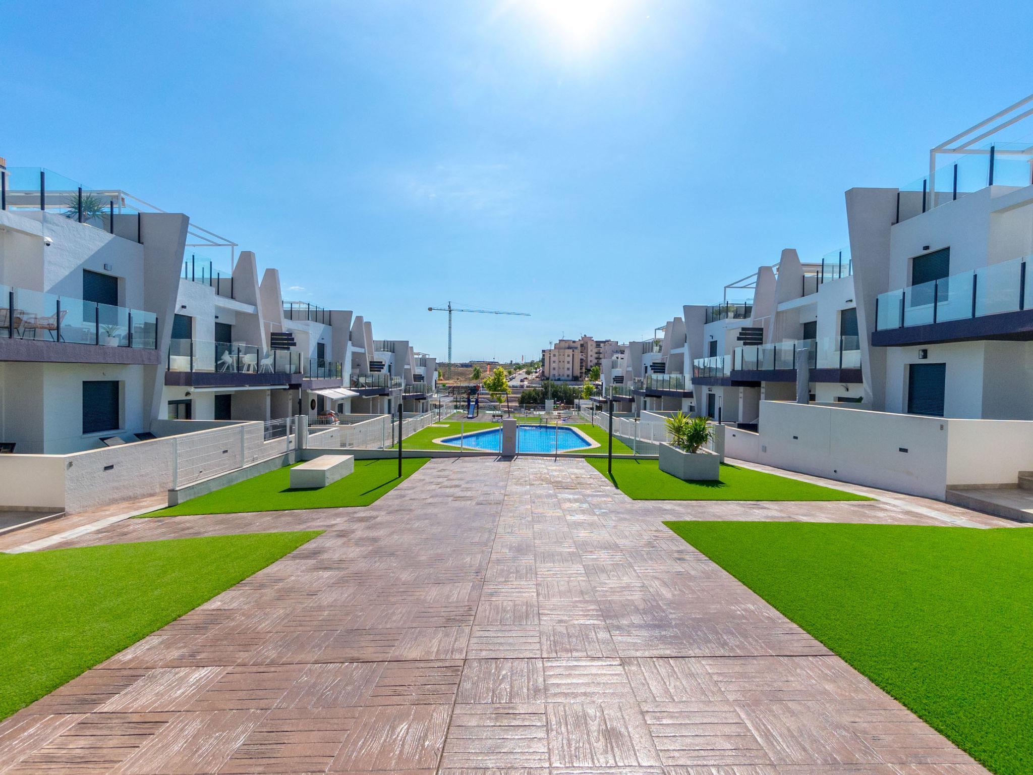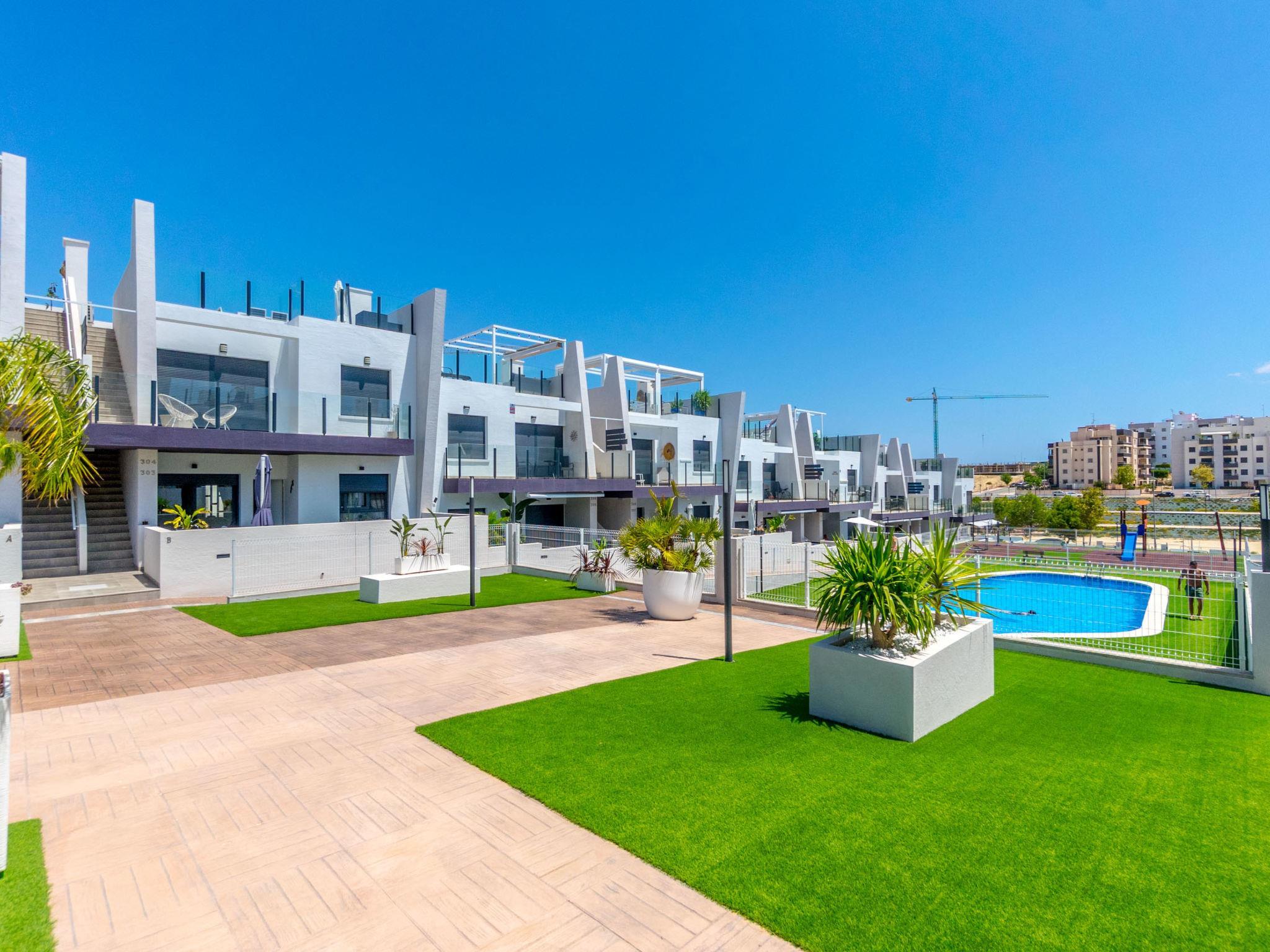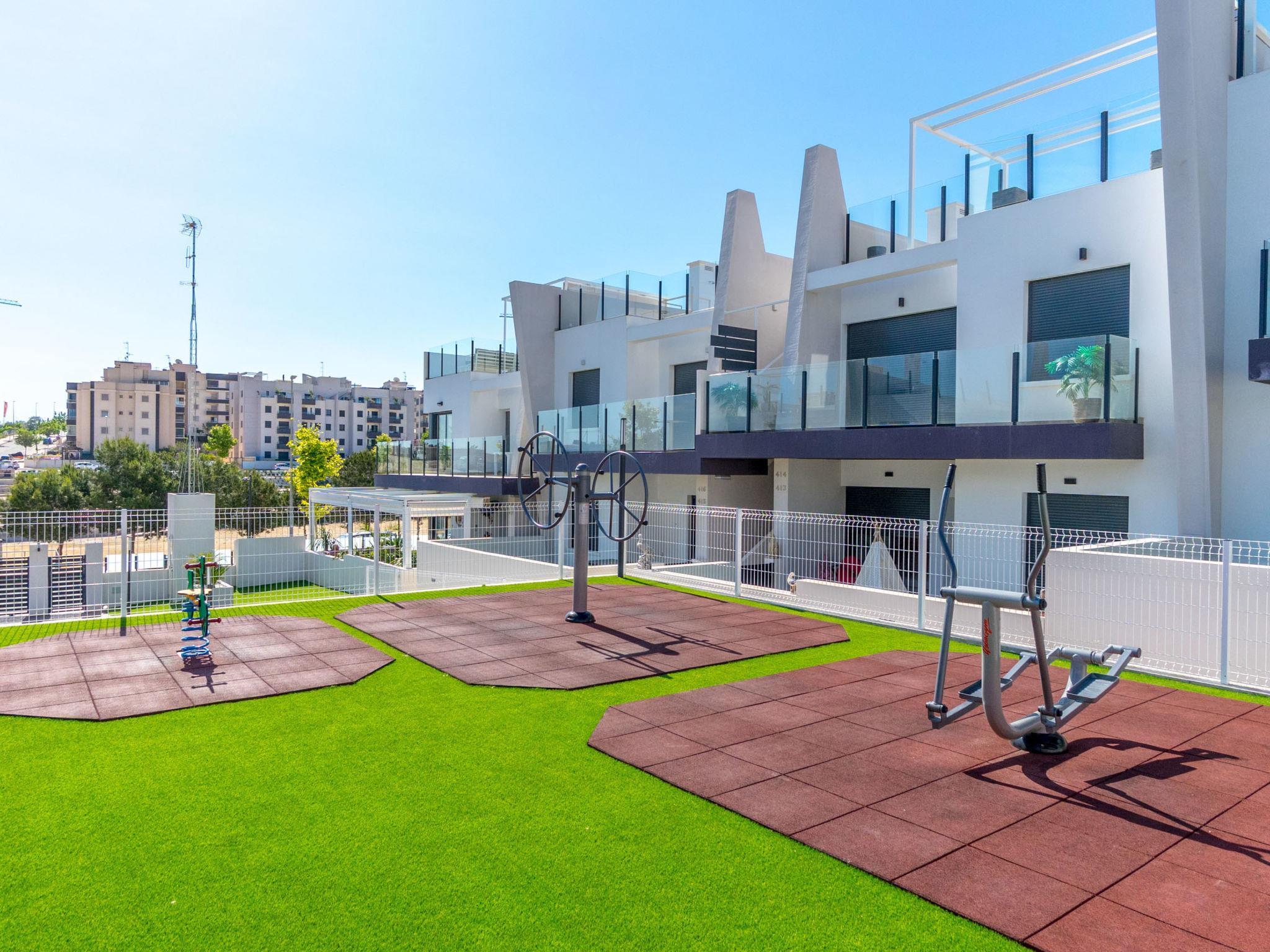 Modernes, schönes Appartementhaus "Residencial Saoco", auf 2 Stockwerken. 1.5 km vom Zentrum von San Miguel de Salinas, 11 km vom Zentrum von La Zenia, ruhige, sonnige Lage, verkehrsberuhigte Zone, 11 km vom Meer, 11 km vom Strand. Zur Mitbenutzung: Grundstück (eingezäunt), Schwimmbad (saisonale Verfügbarkeit: 01.Jan. - 31.Dez.). Kinderbecken, Aussendusche, Kinderspielplatz (Rutschbahn, Schaukel). Im Hause: Dachterrasse. Lebensmittelgeschäft 1.7 km, Supermarkt 1.7 km, Restaurant 2 km, Bushaltestelle 1.9 km, Sandstrand "Playa de La Zenia" 11 km. Golfplatz (18 Loch) 9 km.