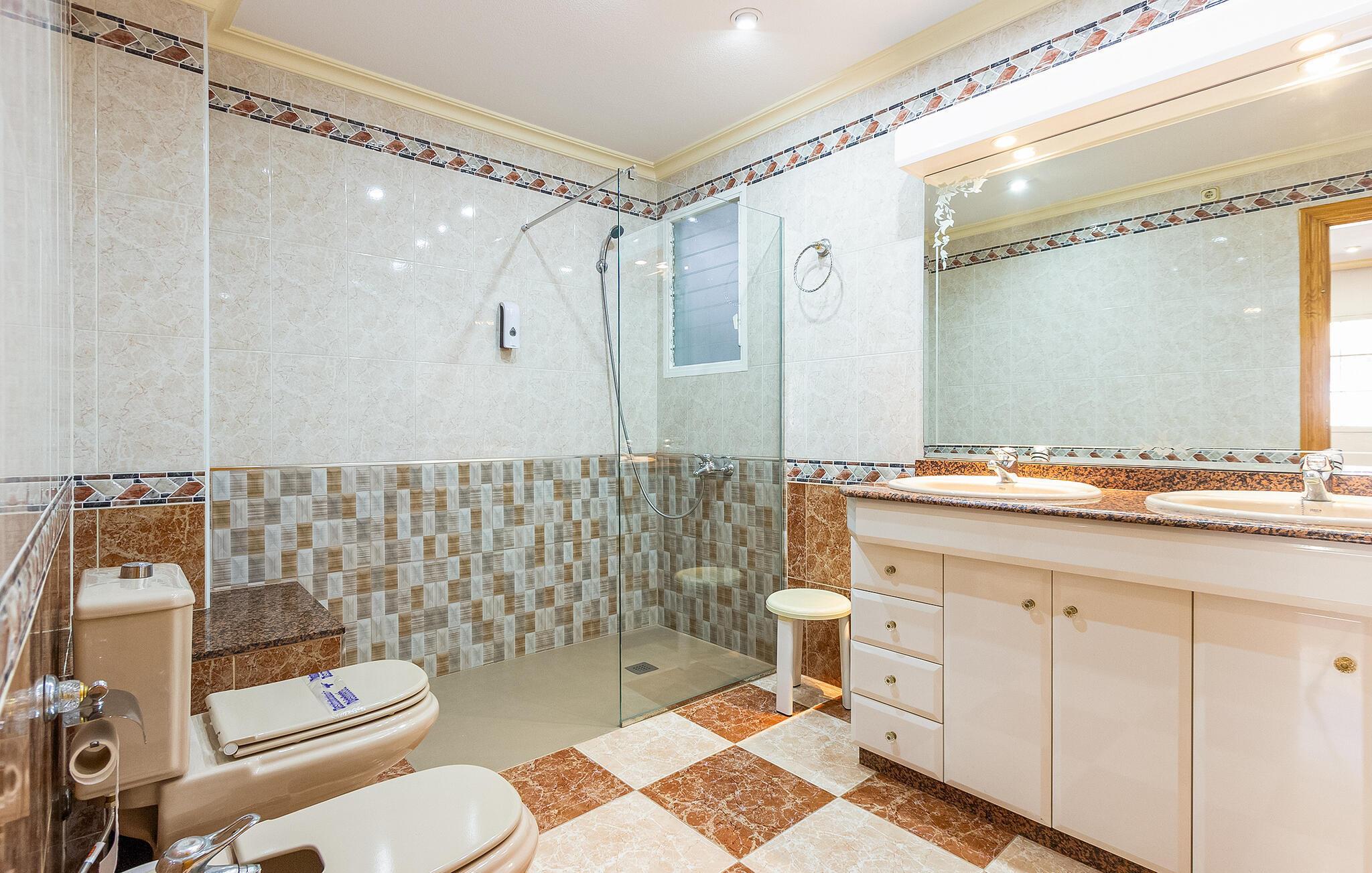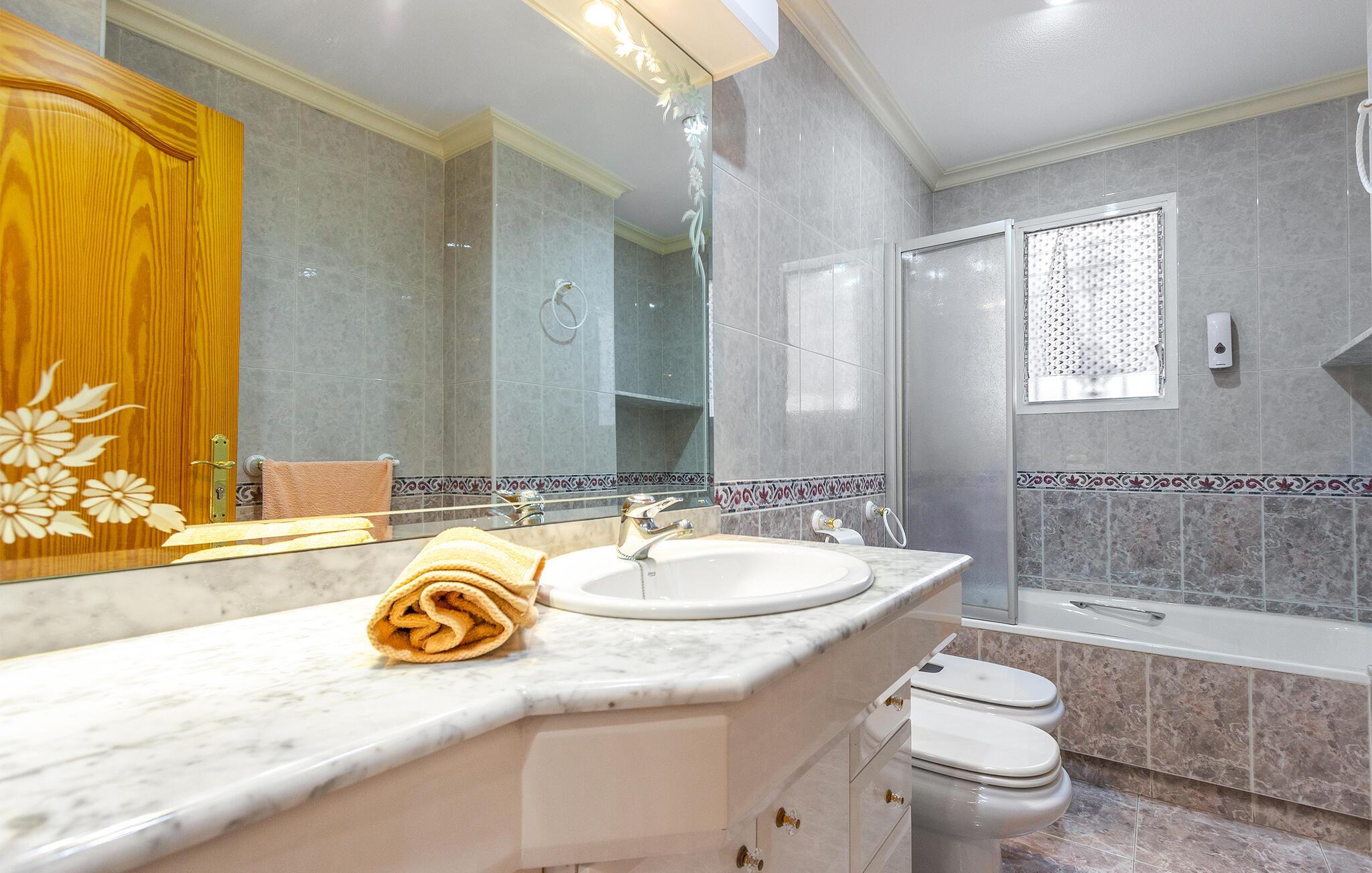 Die geräumige Wohnung empfängt Sie mit einer praktischen und klassischen Einrichtung und findet seinen Charme durch unterschiedliche Wand- und Bodenfliesen. Hier finden Sie alles vor, was Sie zum Wohlfühlen und Genießen Ihren Ferienalltags brauchen. Kochen Sie mit mehreren Personen in der Küche und kommen zu Kartenspielen am Esstisch zusammen.