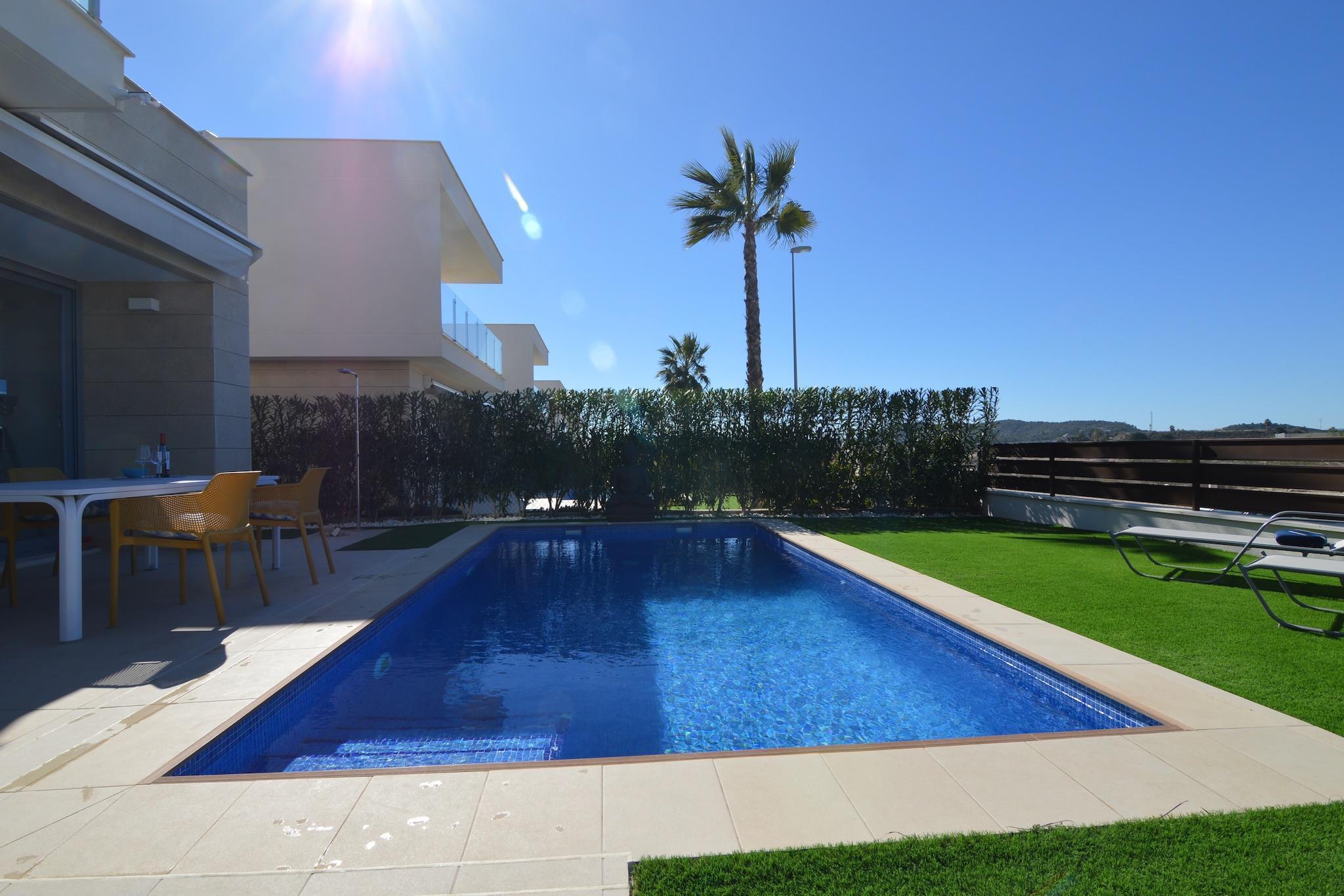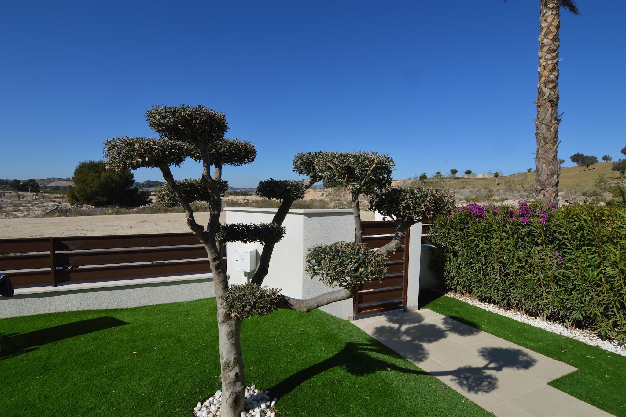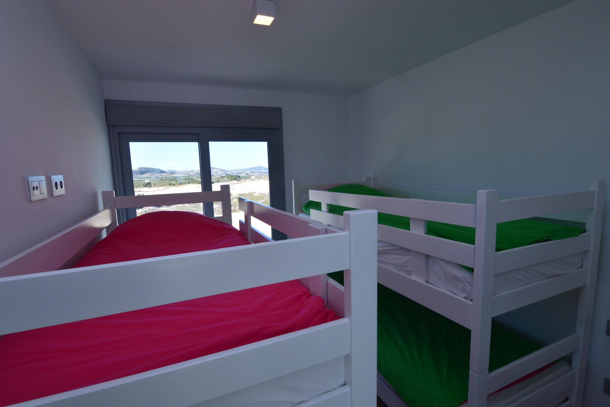 Moderne spanische Villa Diese moderne Villa mit 3 Schlafzimmern in Orihuela bietet bequem Platz für bis zu 8 Gäste und verfügt über einen privaten, beheizbaren Pool und einen komplett eingezäunten Garten. Der offene Wohnbereich verfügt über Klimaanlage, Fernseher und eine gut ausgestattete Küche mit Kaffeemaschine, Backofen und Geschirrspüler – ideal zum Kochen und Entspannen mit Familie oder Freunden. Die Terrasse und der Garten der Villa laden zum Entspannen, Grillen oder Sonnenbaden ein. Ideale Lage Nur 1 km vom Golfplatz Vistabella entfernt, ist diese Villa ideal für Golfbegeisterte. Die Strände von Guardamar und Torrelamata sind 25 km entfernt, Cabo Roig nur 20 km. Die historischen Sehenswürdigkeiten von Orihuela, darunter das Casa-Museo de Miguel Hernandez und die Kathedrale Santa Iglesia Catedral, laden zu kulturellen Entdeckungen ein. Die nahegelegenen Orte Elche und Torrevieja bieten weitere Restaurants und Einkaufsmöglichkeiten. Alle wichtigen Dinge des täglichen Bedarfs sind nur 500 Meter von der Villa entfernt. Familienfreundlicher Komfort Die Villa ist familienfreundlich konzipiert und verfügt über drei geräumige Schlafzimmer und zwei Badezimmer mit Doppel- und Hochbetten für mehr Flexibilität. Eine Klimaanlage sorgt in den warmen Monaten für Komfort. Zu den Sicherheitseinrichtungen gehören ein eingezäunter Garten und Überwachungskameras. Ob Sie am Pool entspannen, die Strände erkunden oder die regionale Küche in den nahegelegenen Restaurants genießen – diese Villa bietet die perfekte Balance aus Komfort, Bequemlichkeit und Charme für Ihren Urlaub an der Costa Blanca.