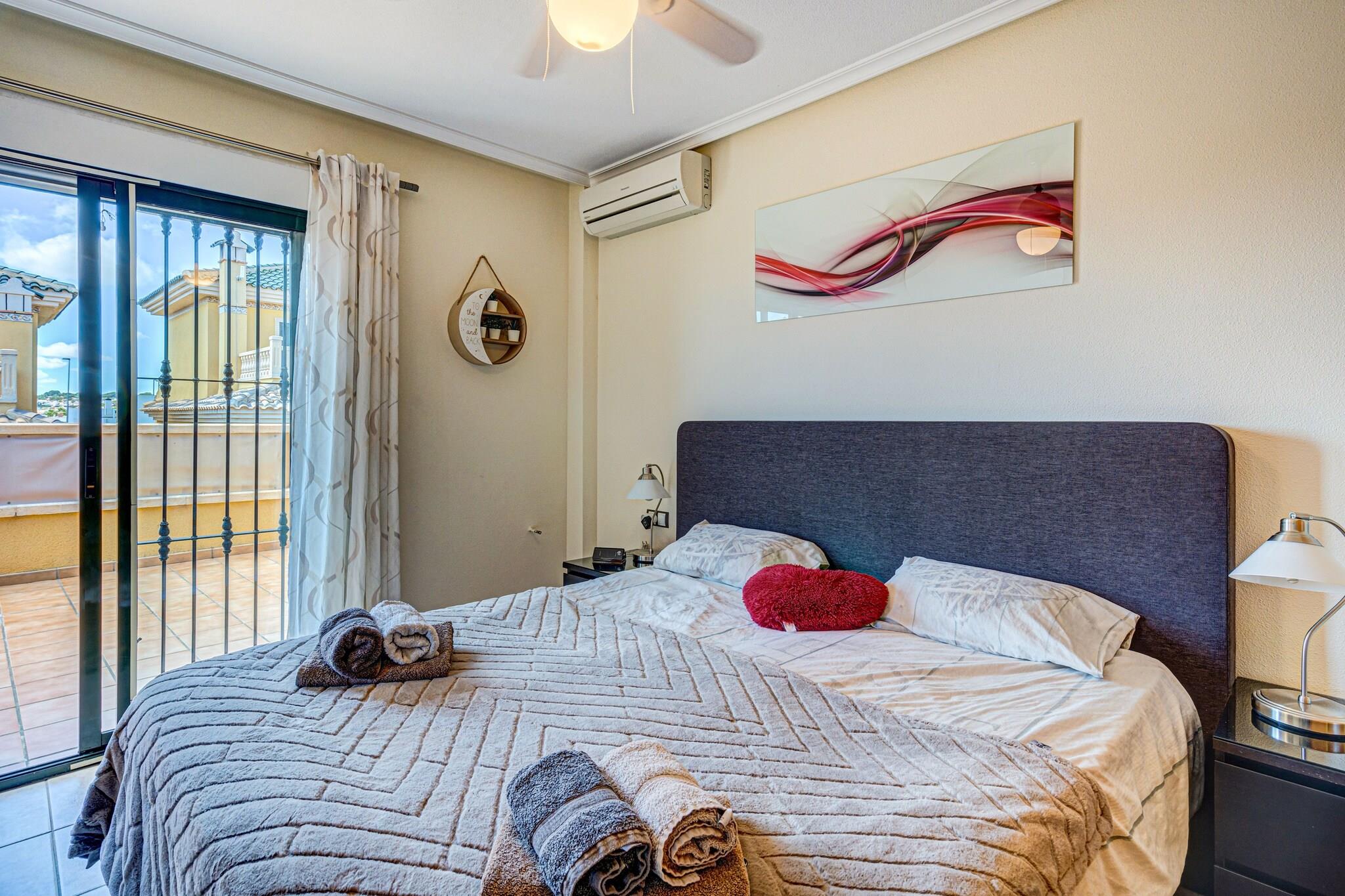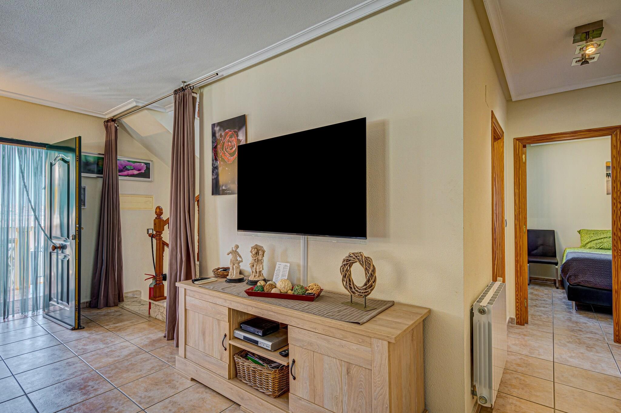 Dieses charmante Ferienhaus in Orihuela Costa bietet die perfekte Mischung aus Privatsphäre, Komfort und Küstenvergnügen – ideal für Familien oder Freunde. Umgeben von einem üppigen Garten und hohen Mauern garantiert das Anwesen einen ruhigen und privaten Aufenthalt nur wenige Minuten vom Strand entfernt. Im Innenbereich bieten das geräumige Wohnzimmer und die gut ausgestattete Küche (mit Dolce Gusto- und Senseo-Maschinen) allen Komfort eines Zuhauses. Genießen Sie auf der sonnendurchfluteten Terrasse Ihre Mahlzeiten oder Getränke an der frischen Luft. In der Garage finden Sie Fitnessgeräte und drei Fahrräder, darunter eines mit Elektroantrieb, sodass Sie die Gegend in Ihrem eigenen Tempo erkunden können. Sie sind nur einen Katzensprung von den Sandstränden von Punta Prima, Playa Flamenca, La Zenia und Cabo Roig entfernt, wo Live-Musik den Wochenend-Charme unterstreicht. Das renommierte Einkaufszentrum La Zenia ist nur 2 km entfernt und bietet eine lebendige Mischung aus Geschäften und Restaurants. Entspannen Sie nach einem Küstenspaziergang in einem der vielen gemütlichen Restaurants in der Nähe. Gäste haben außerdem Zugang zu einem Gemeinschaftspool und einem Petanque-Platz, was das Freizeitangebot erweitert. Egal, ob Sie ein Sonnenbad nehmen, Rad fahren oder einfach im Garten entspannen, dieses Haus ist ein wunderbarer Ausgangspunkt für Ihren Ausflug an die Costa Blanca.