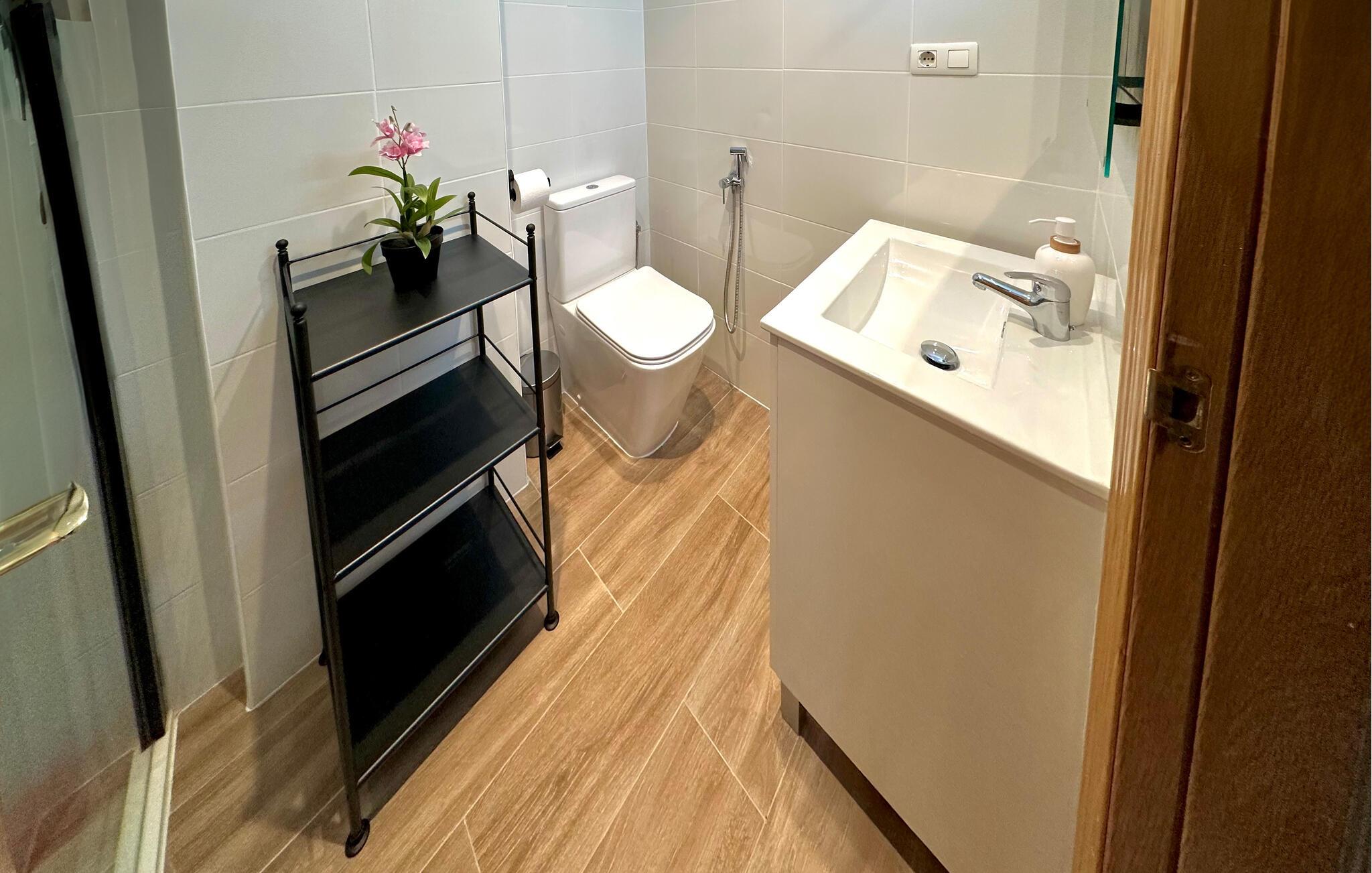 Badezimmer 7m2 (nr. 1) - WC. Warmes und kaltes Wasser. Handdusche und Badewanne