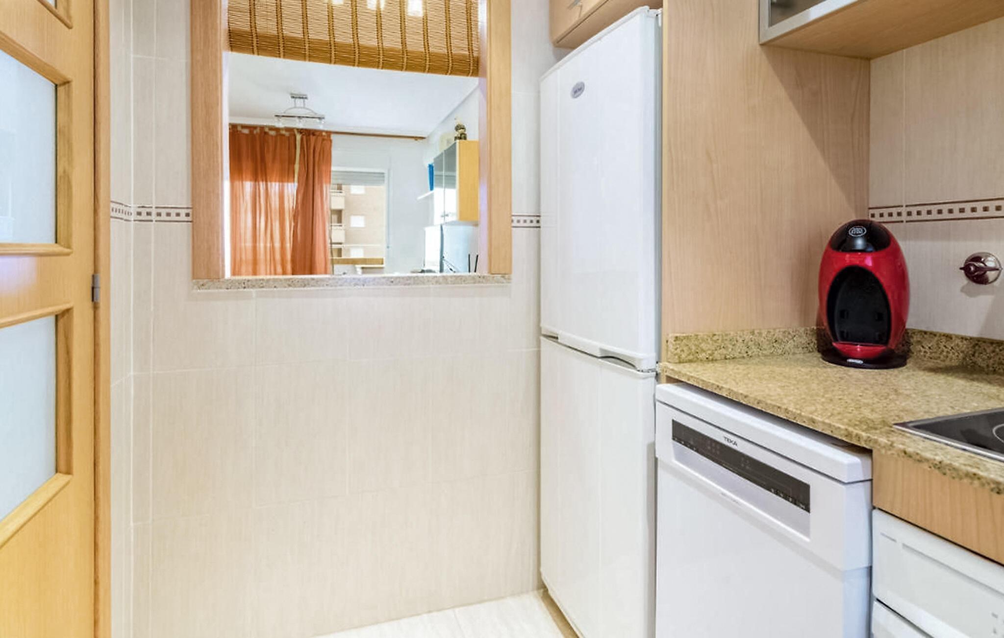 Die Wohnung heißt Sie mit praktisch möblierten Räumen nur wenige Schritte vom Strand willkommen. Ob gutes gemeinsames Essen oder ein gemütlicher Abend auf dem Sofa, hier finden Sie nach Ihren Unternehmungen den richtigen Rahmen für eine schöne gemeinsame Zeit.